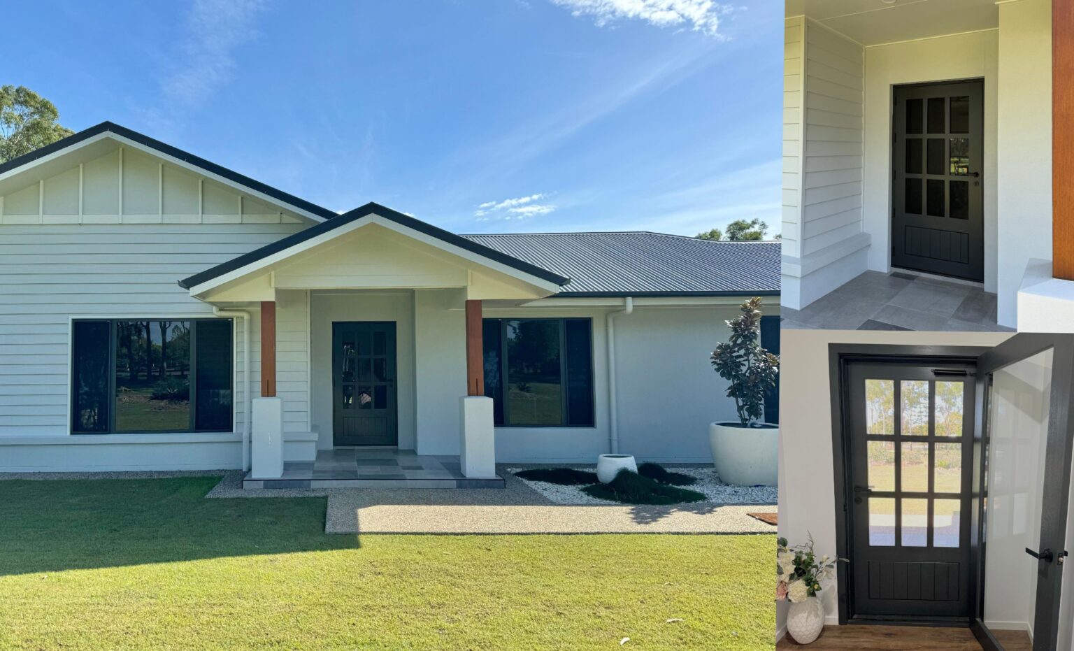 The Bimberi with its four large panels allow for generous airflow in a modern and stylish door, coupled here with the Aretisan and matt black door furniture to complete an impeccable entry.