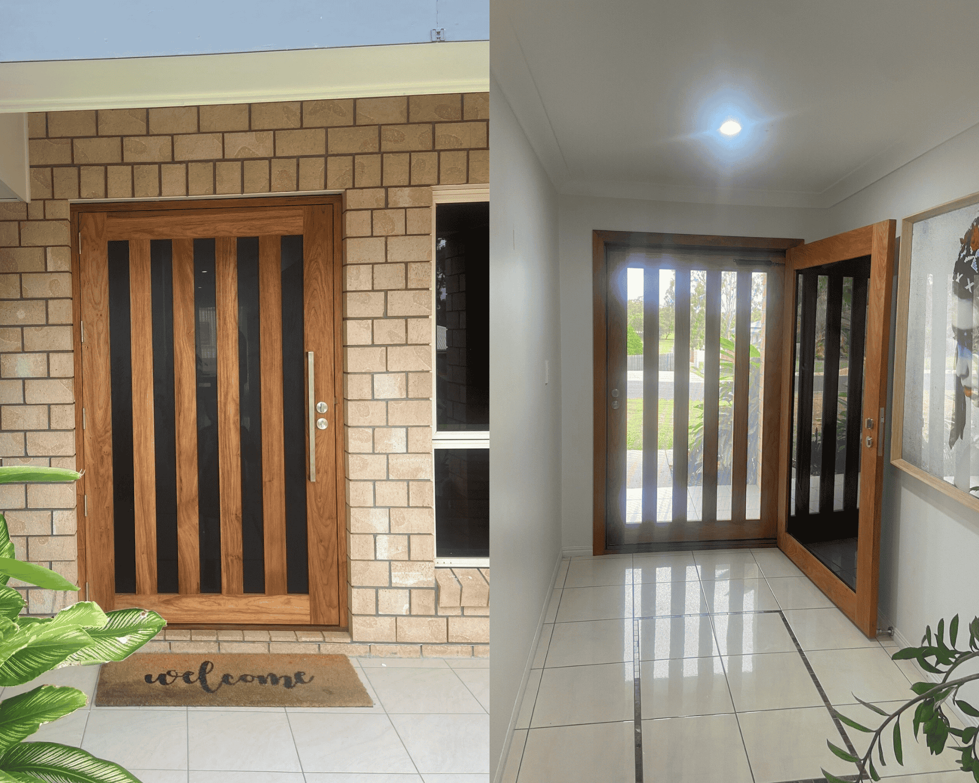 Before and after of a 2124mm x 1250mm Wide Solid Screen Kosciuszko Design (door size is 2050 x 1166)