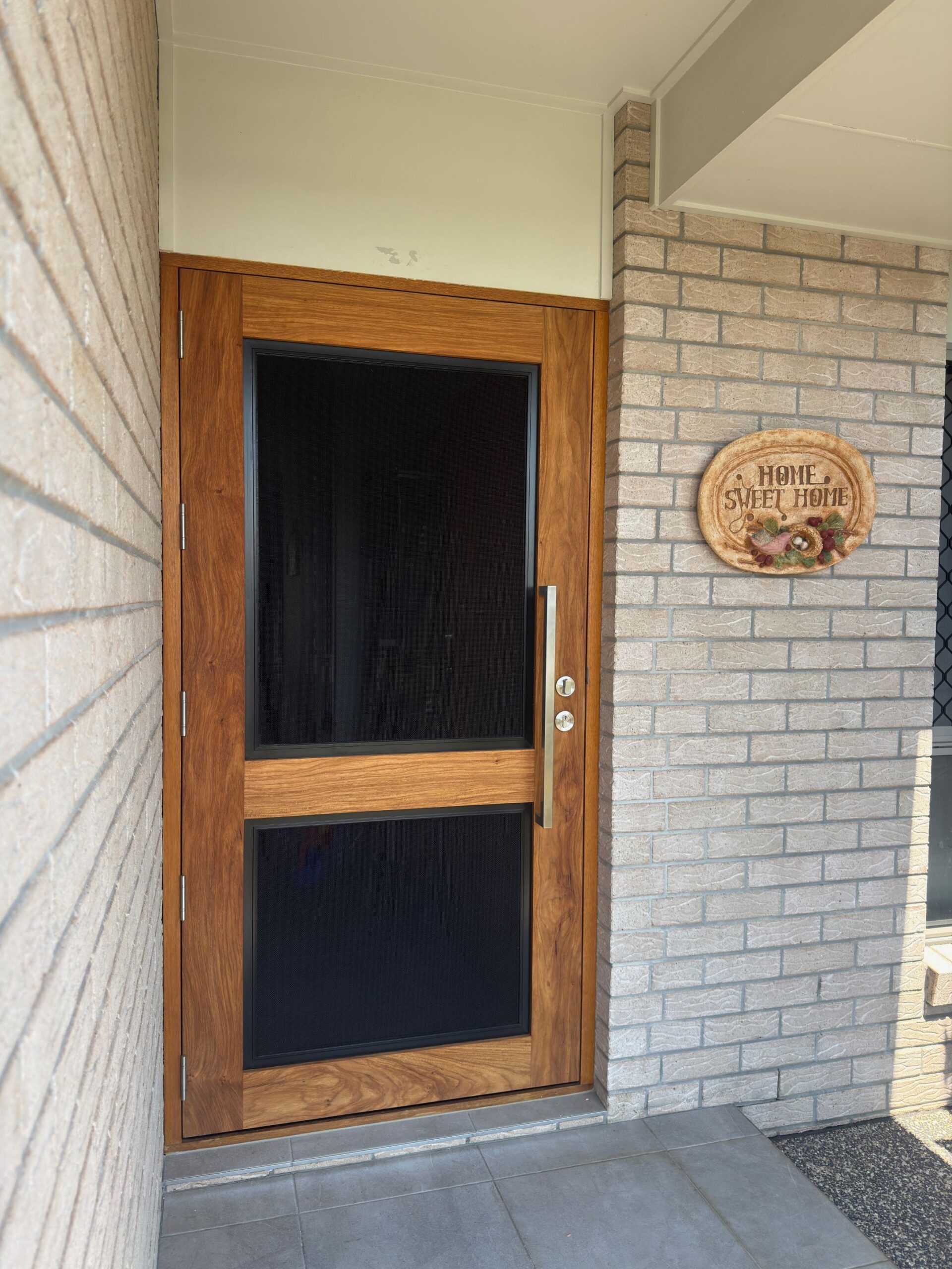 Delivering a light-filled entry with ample airflow the Mackenzie traditional feel via it’s top large barrier screen section and VJ solid timber bottom panel.
