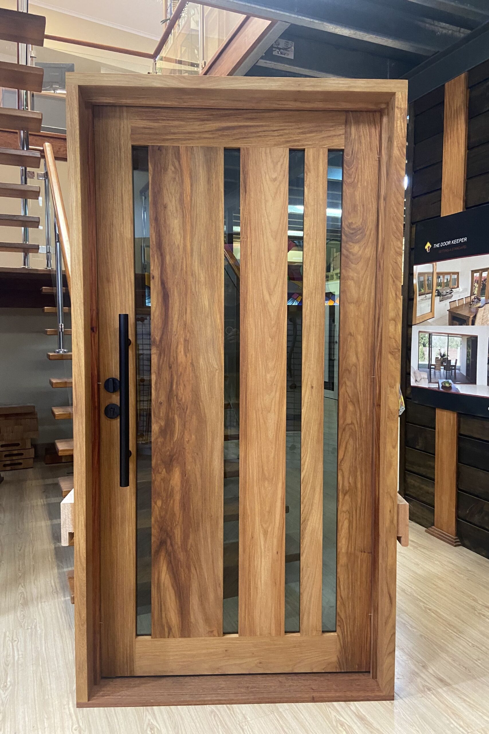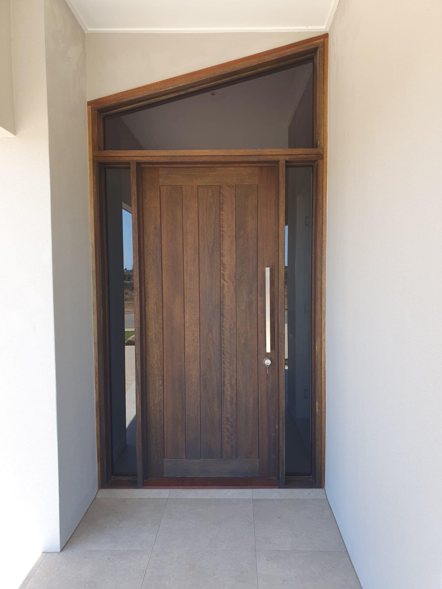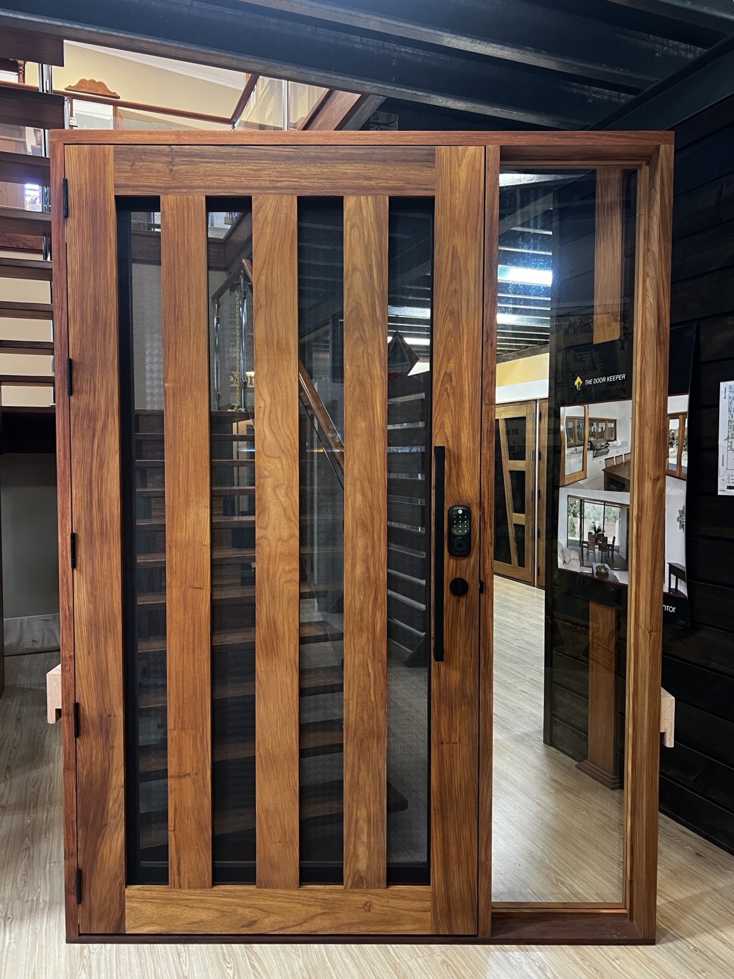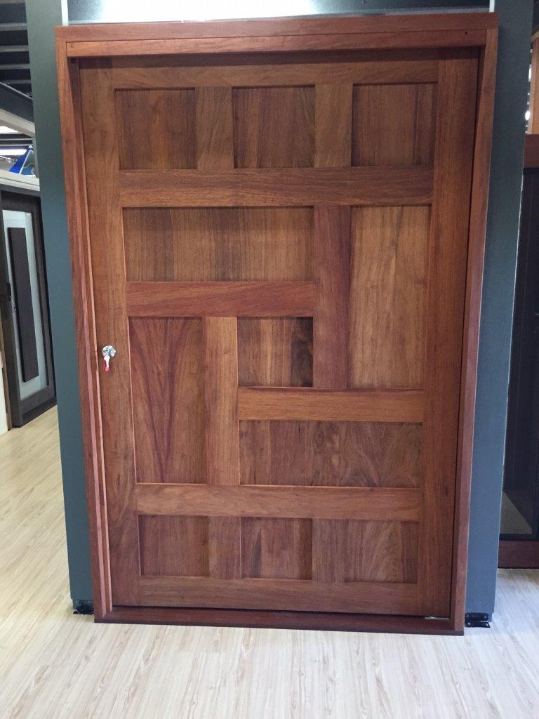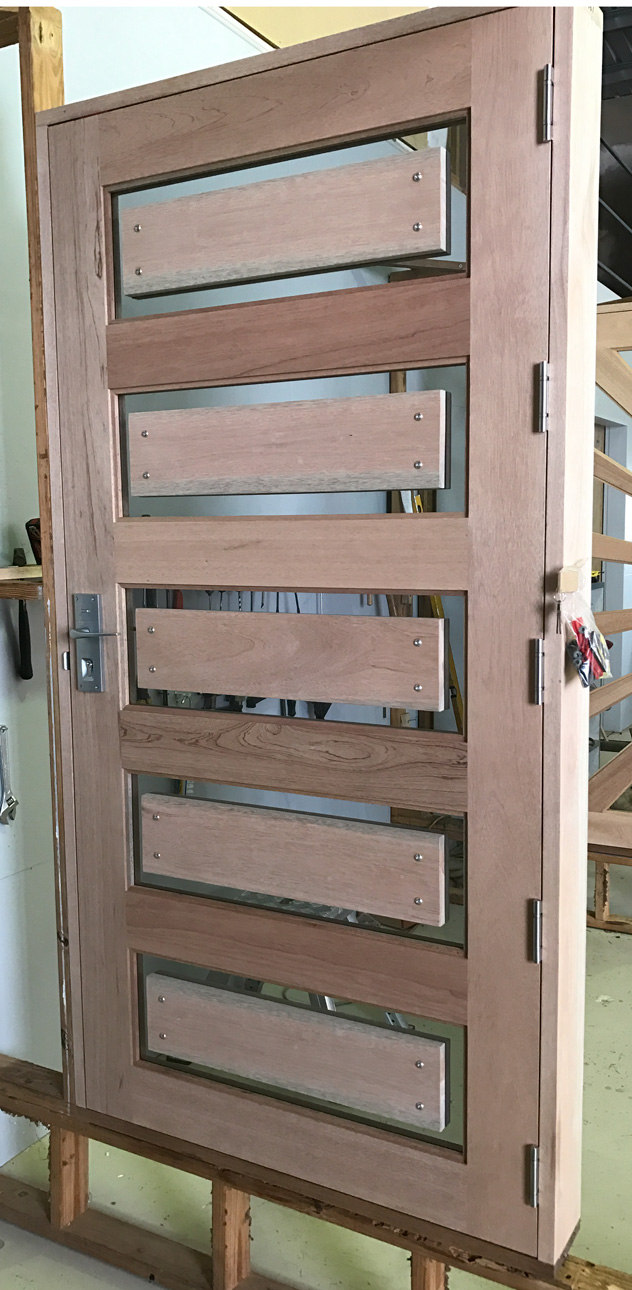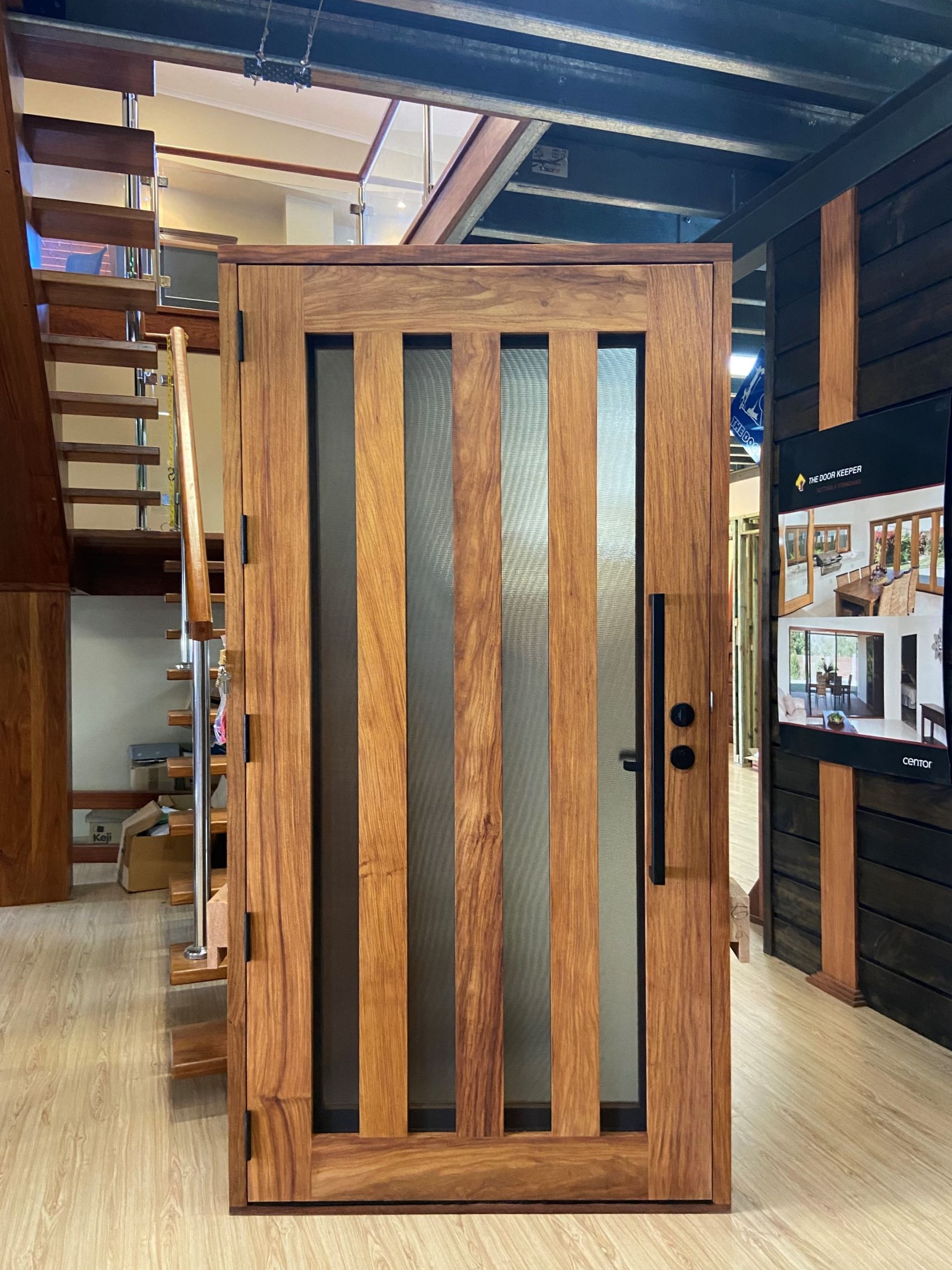 For those who prefer a full timber door, Tirari’s alternating broad and narrow horizontal panels present a contemporary appeal.