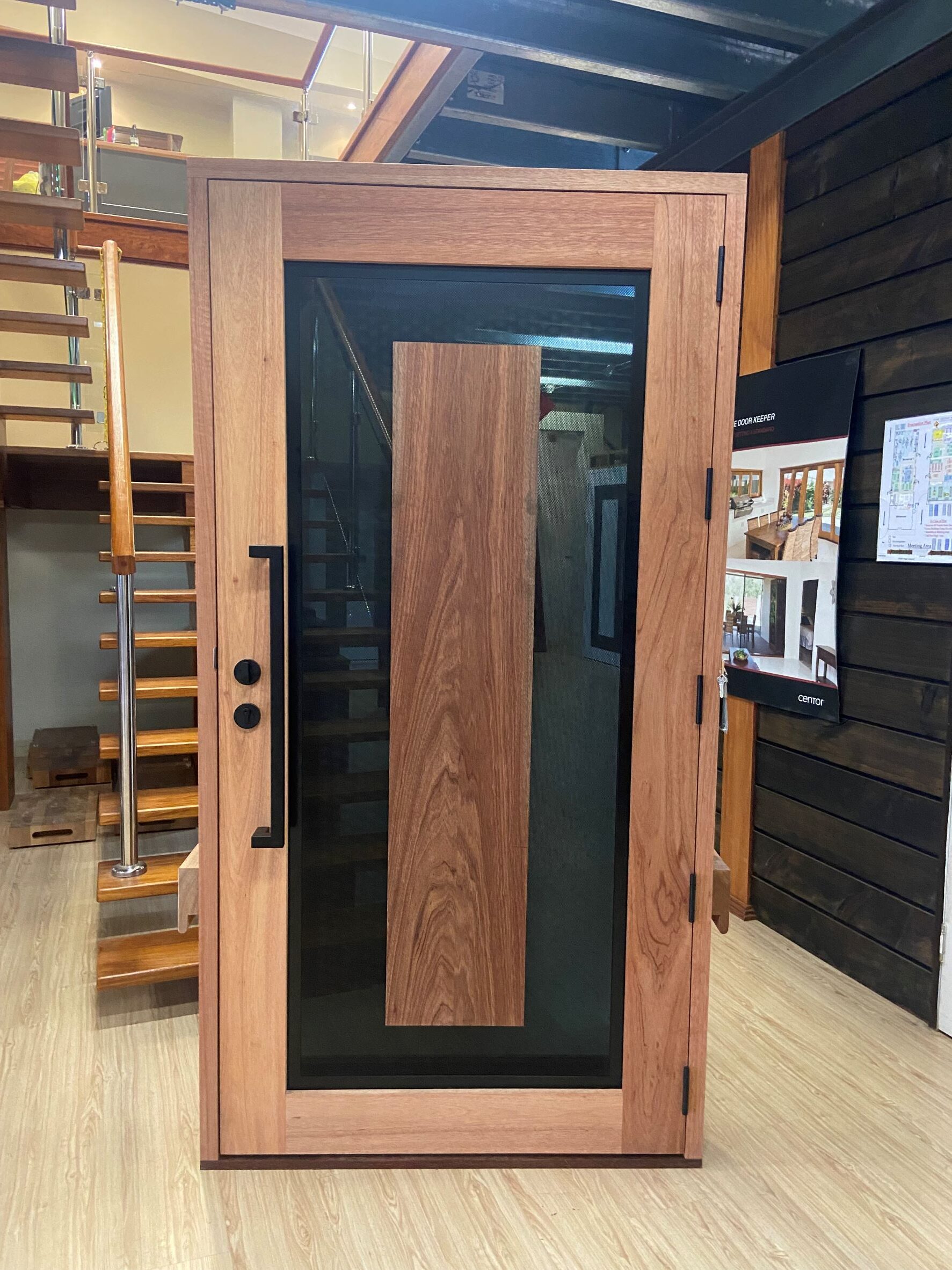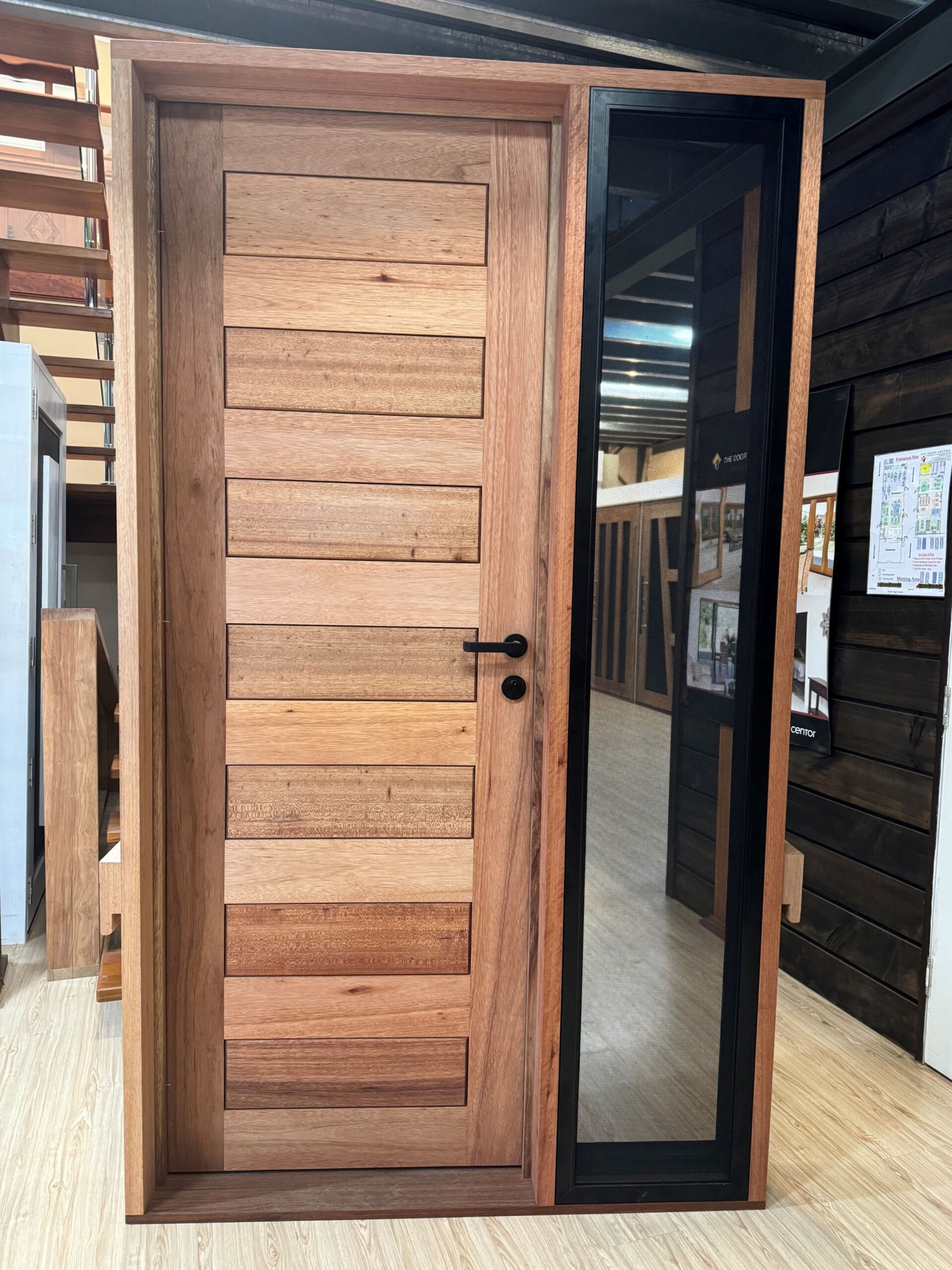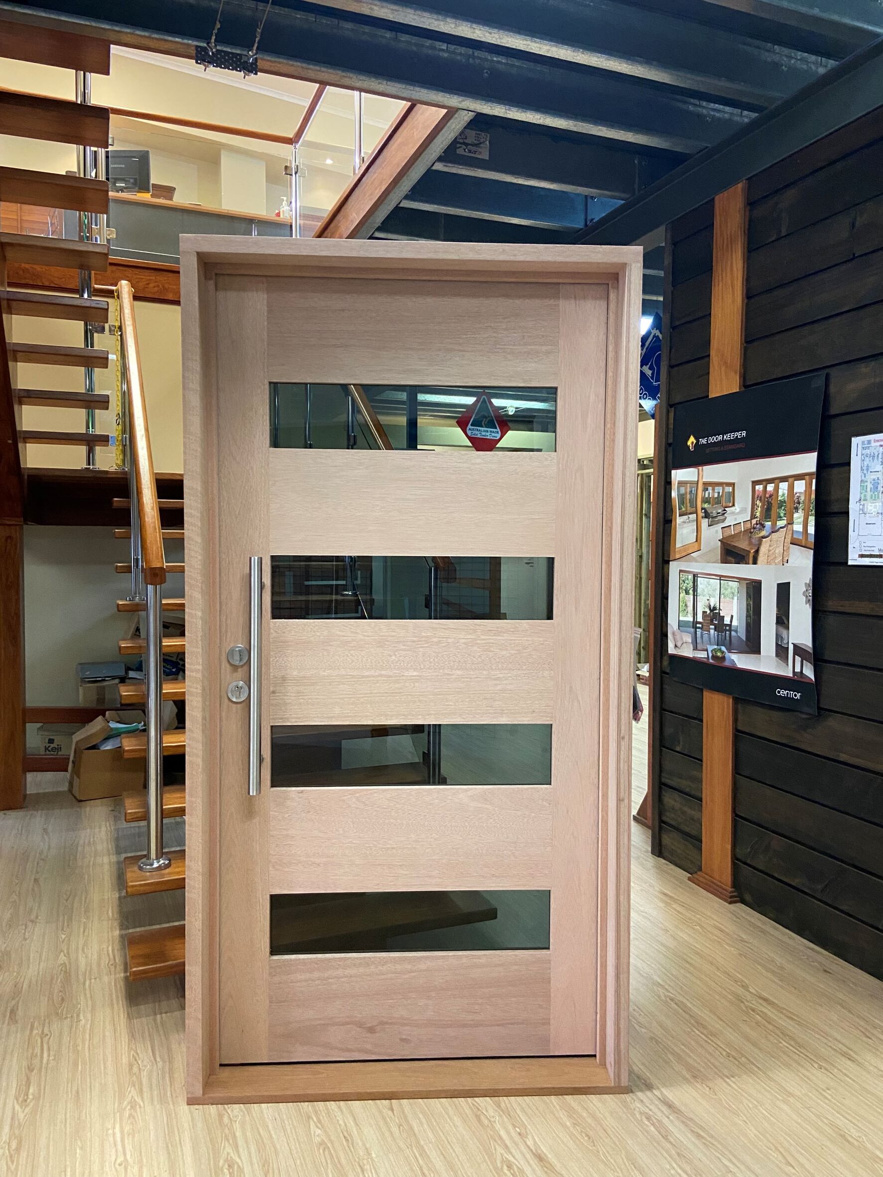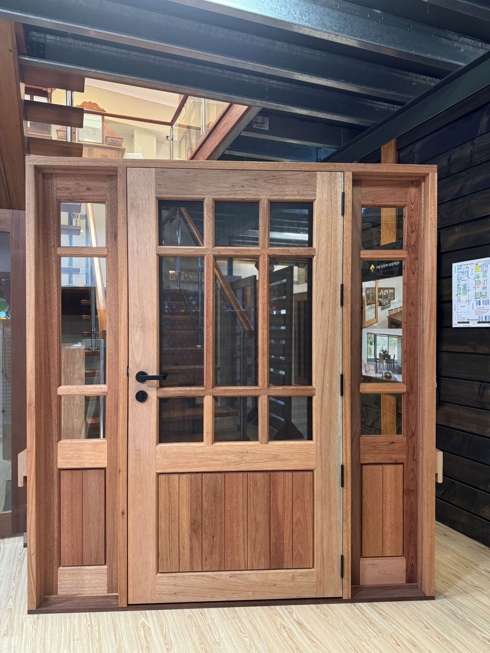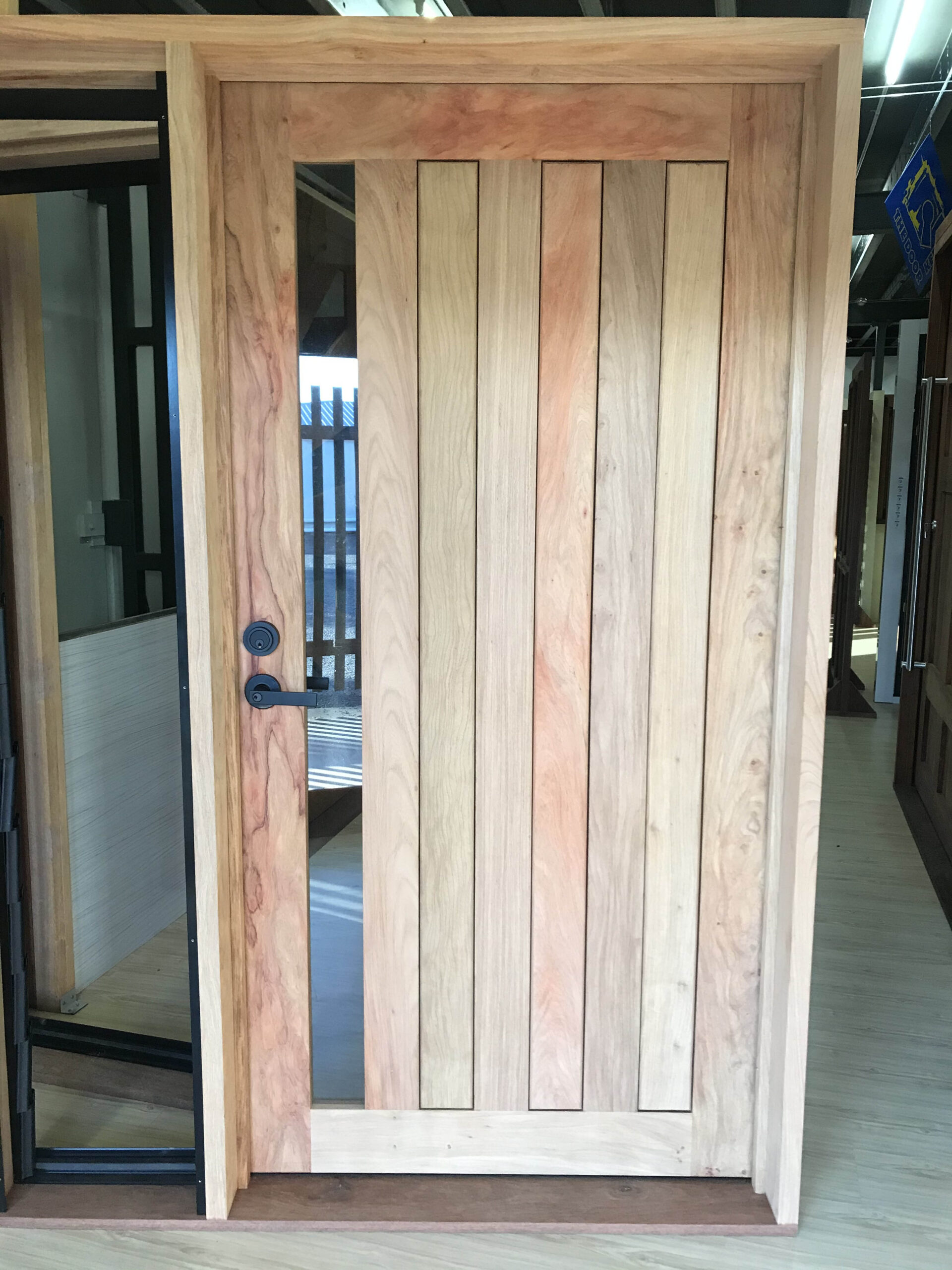 For those who prefer a full timber door, Tirari’s alternating broad and narrow horizontal panels present a contemporary appeal.