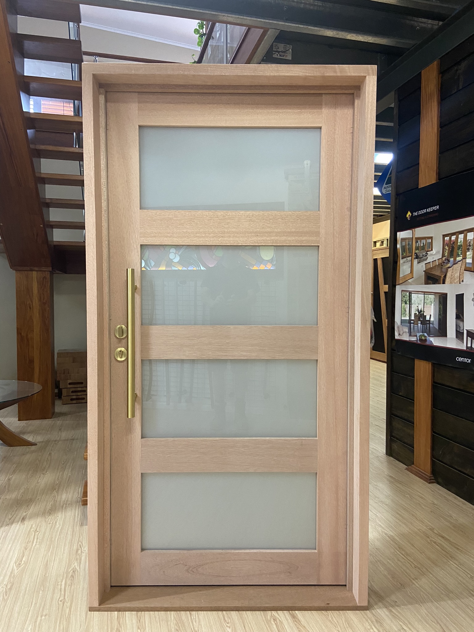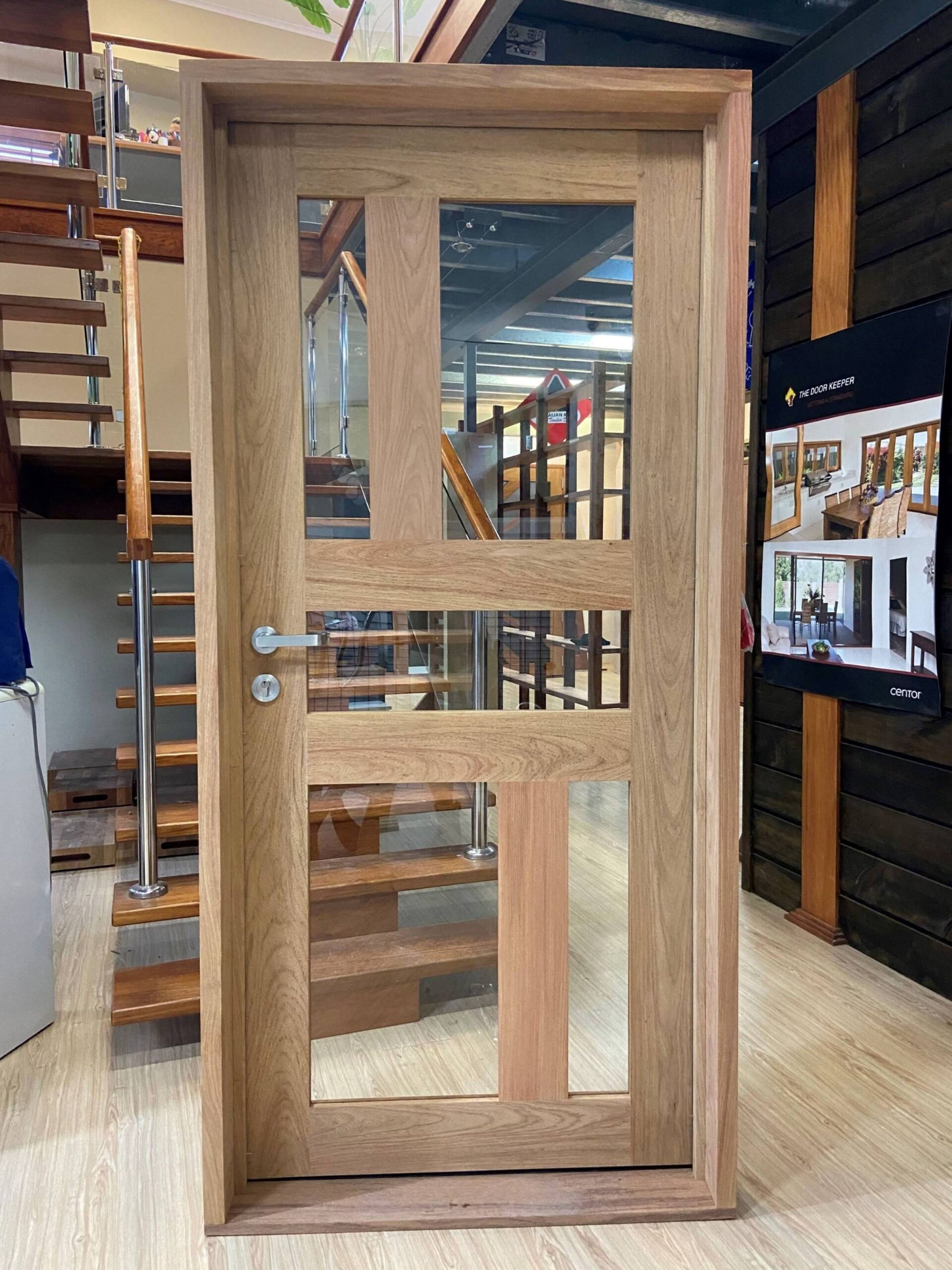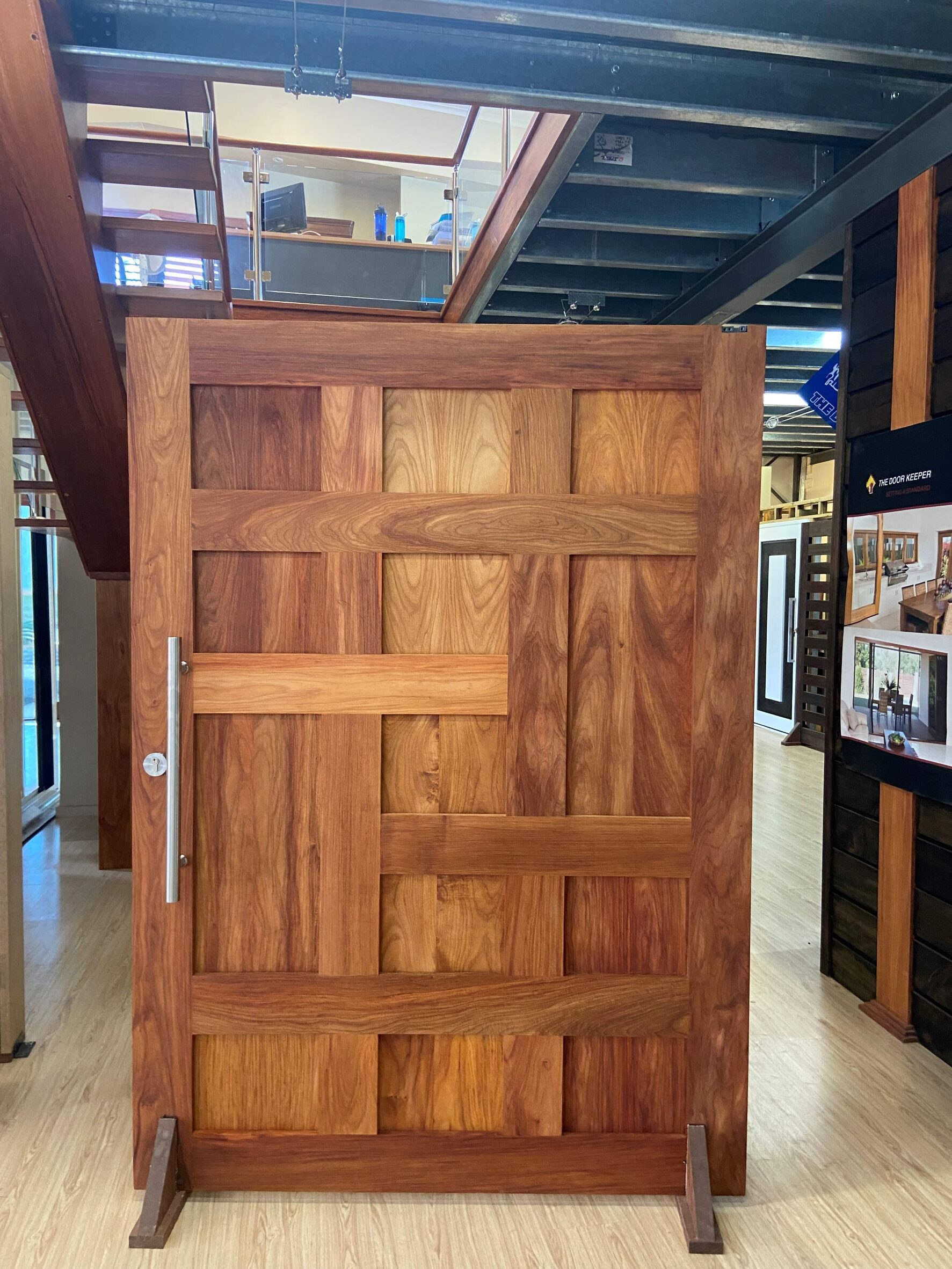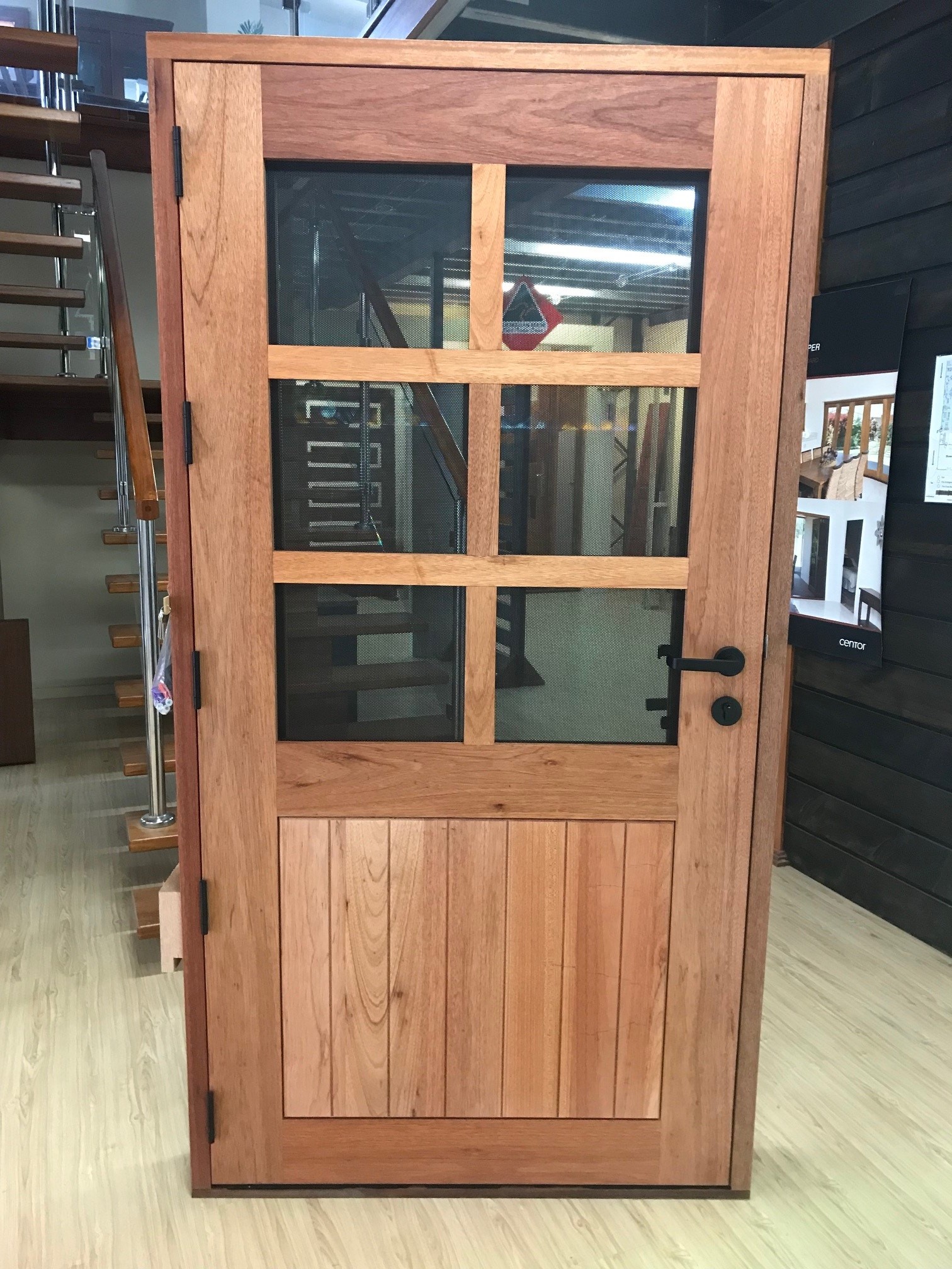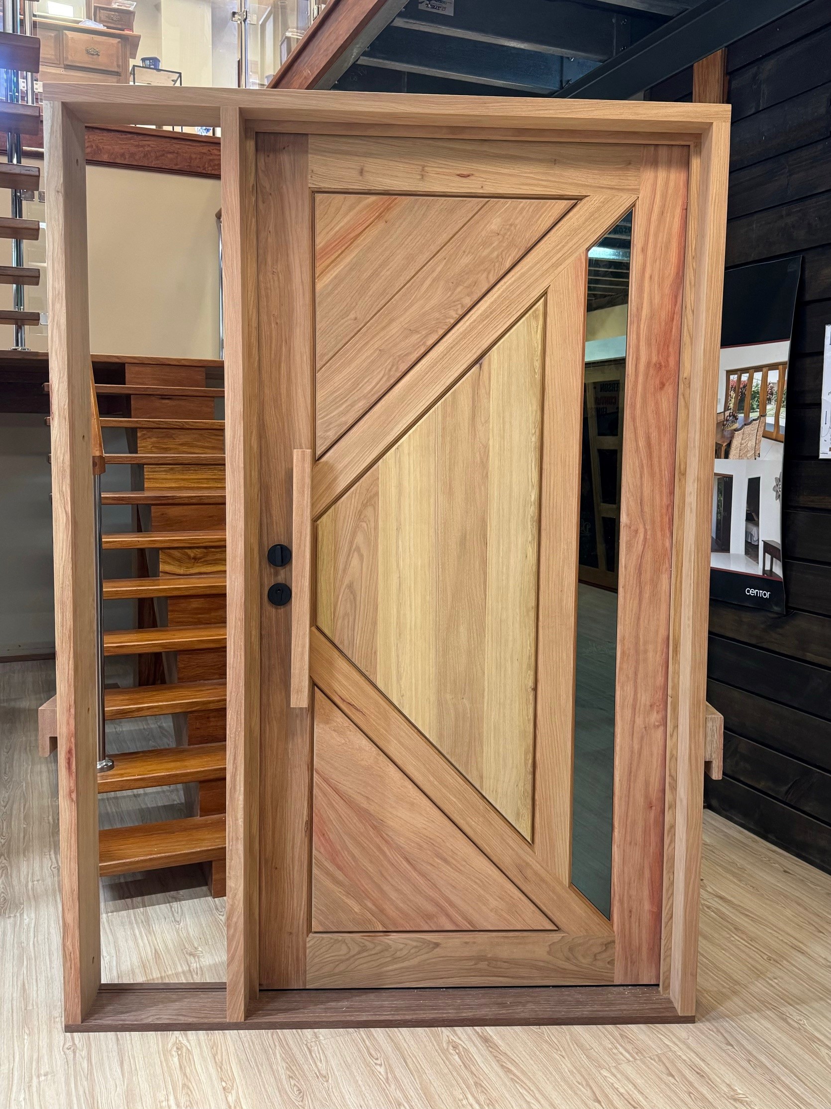 For those who prefer a full timber door, Tirari’s alternating broad and narrow horizontal panels present a contemporary appeal.