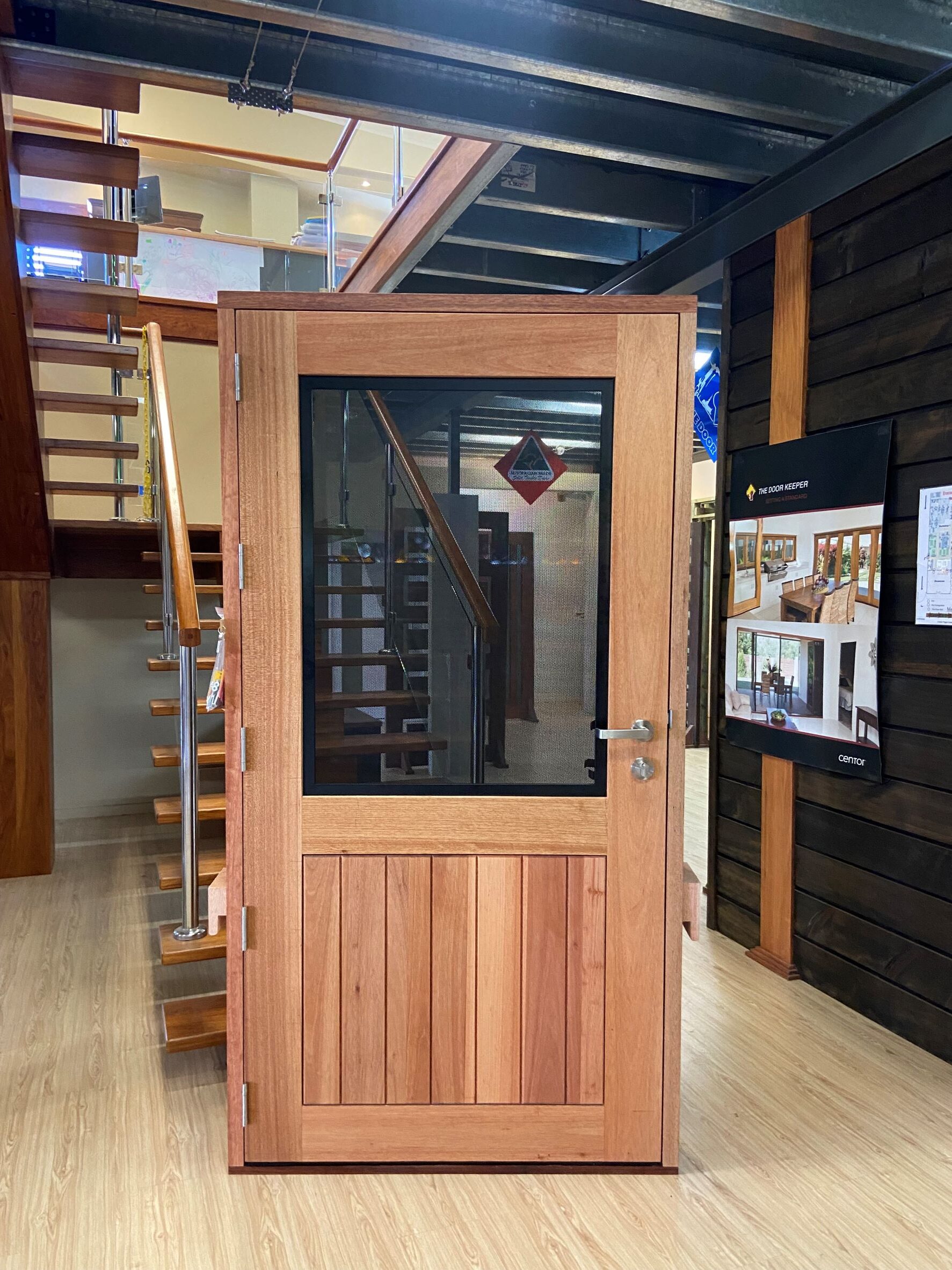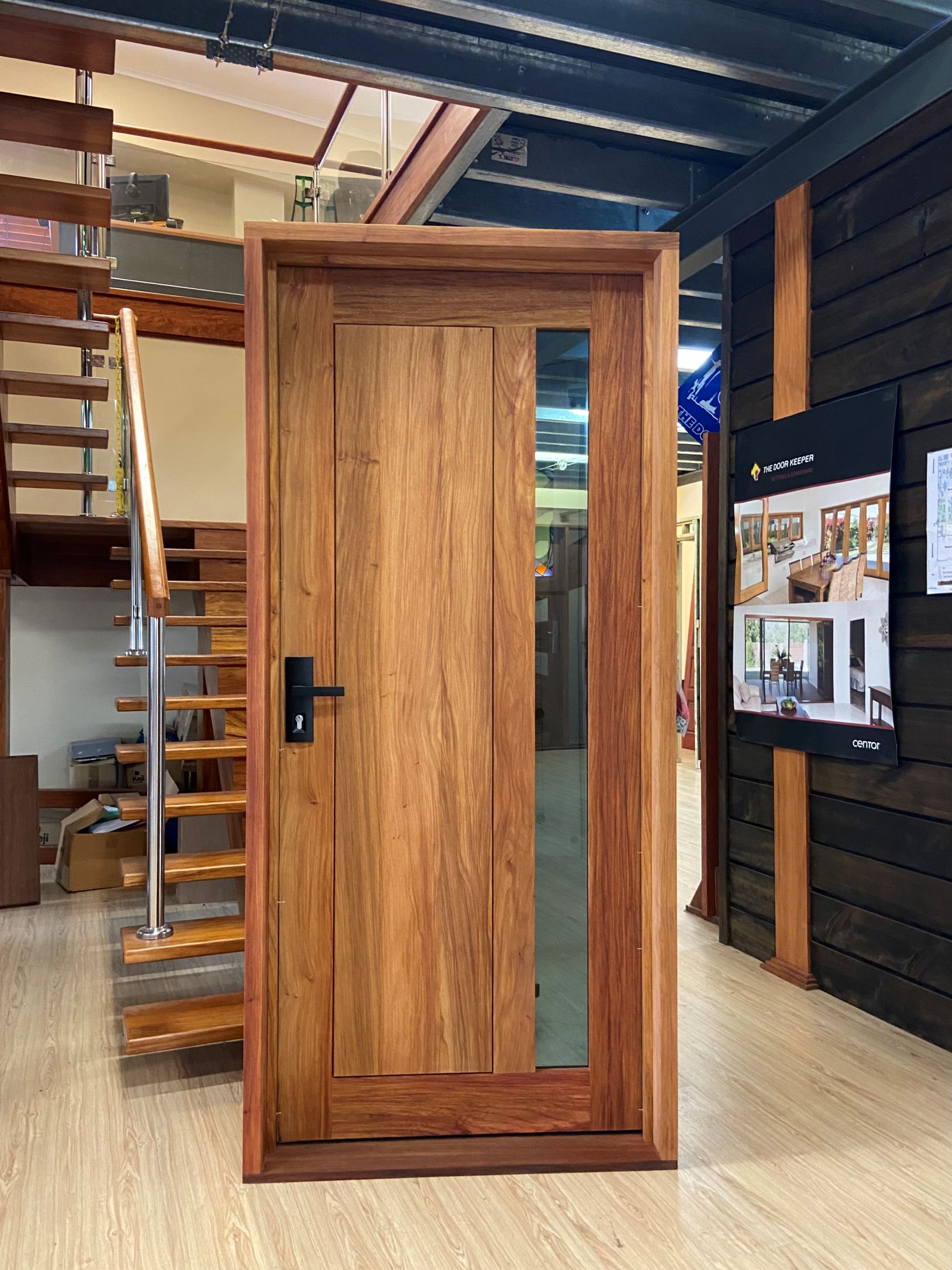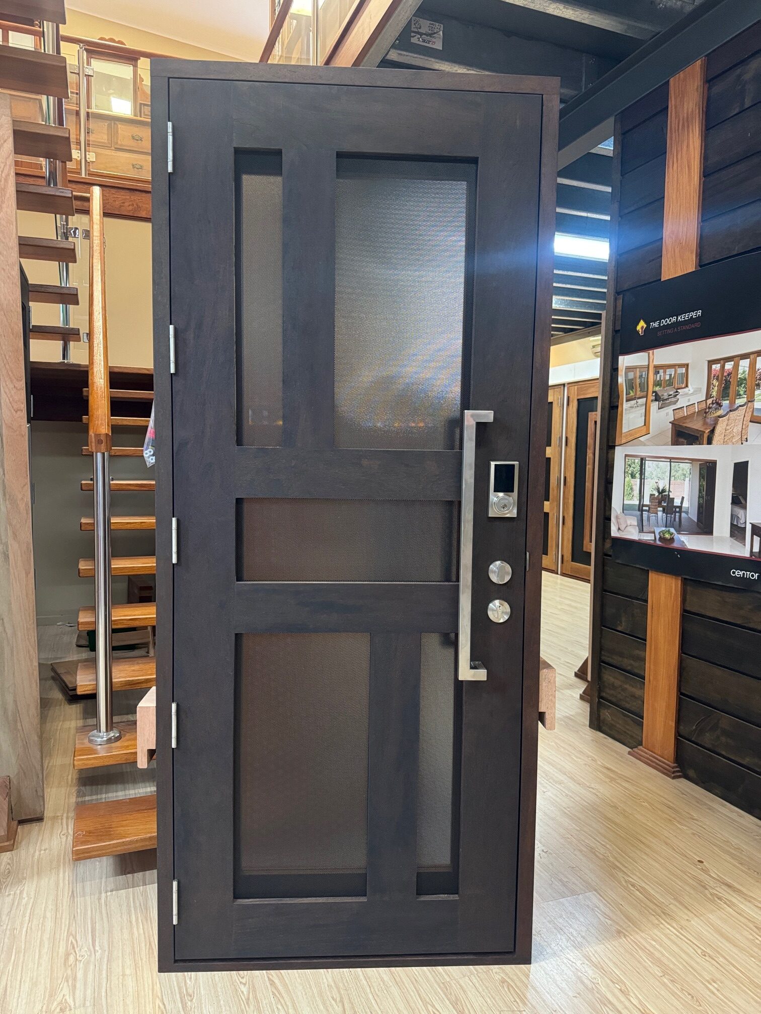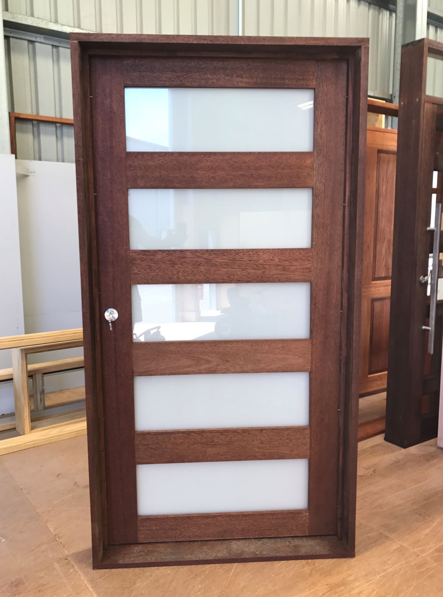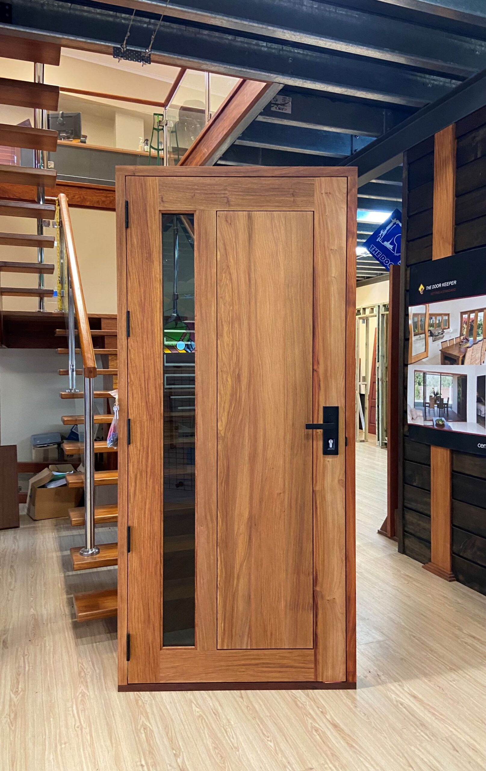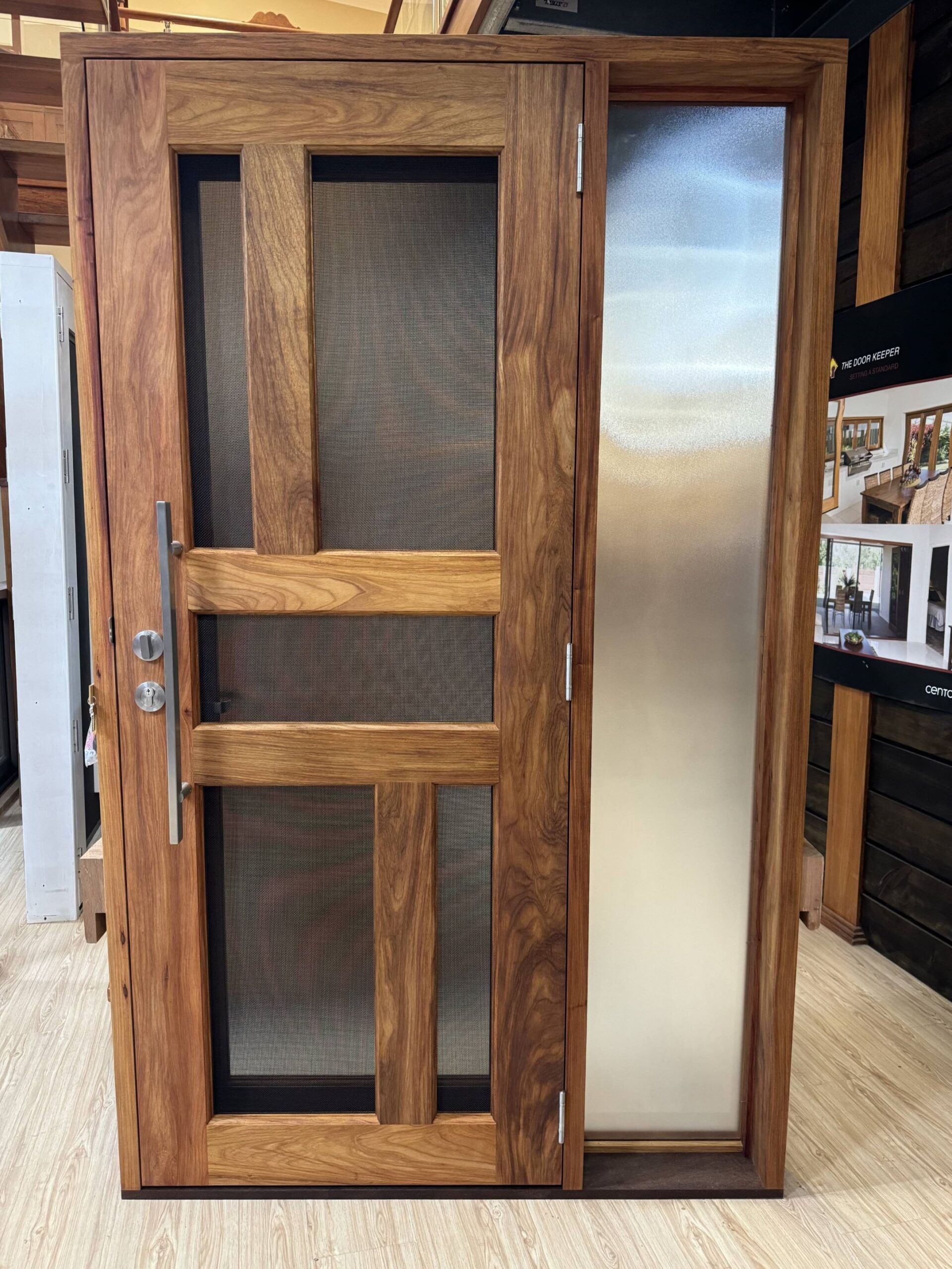For those who prefer a full timber door, Tirari’s alternating broad and narrow horizontal panels present a contemporary appeal.