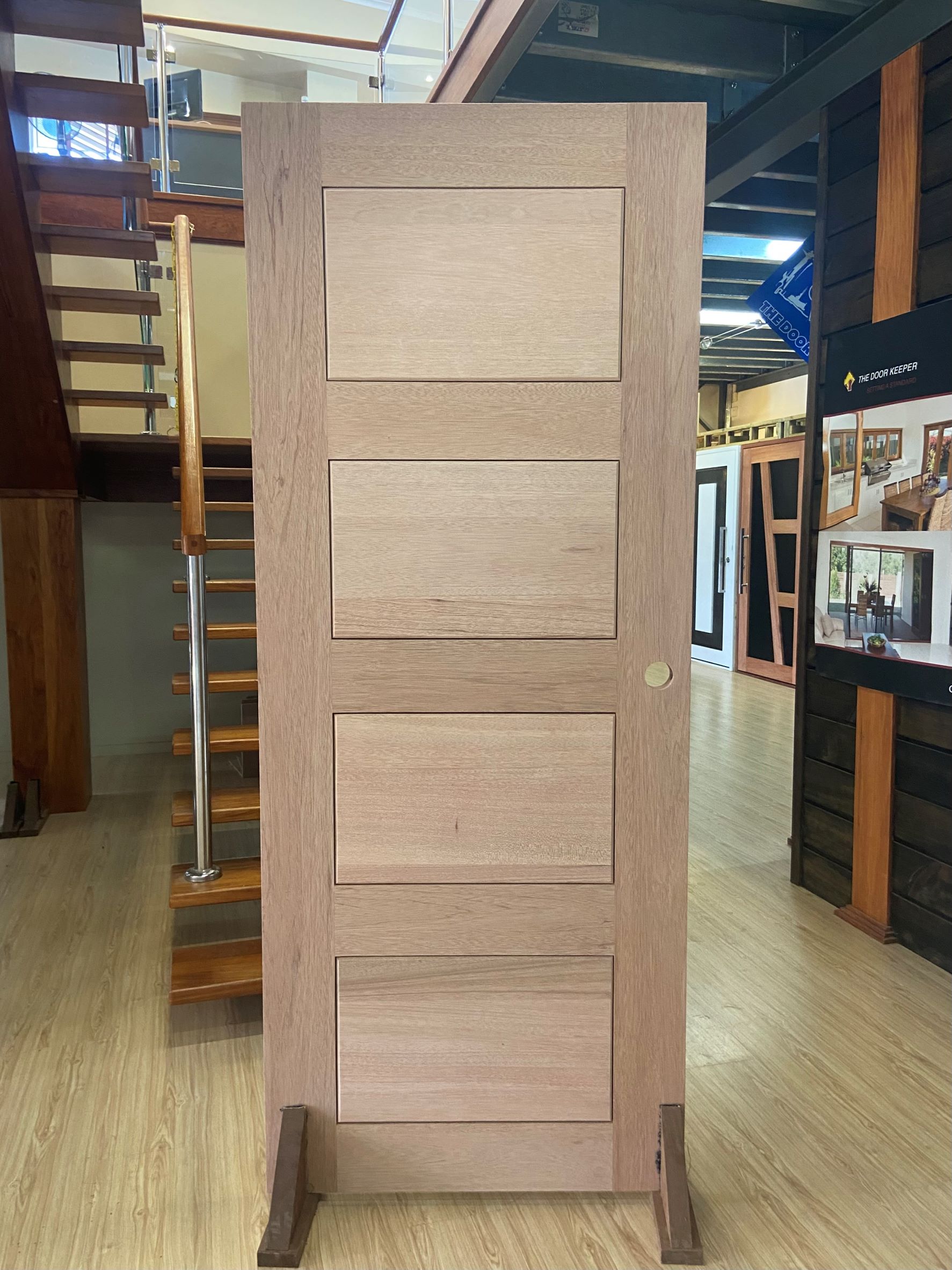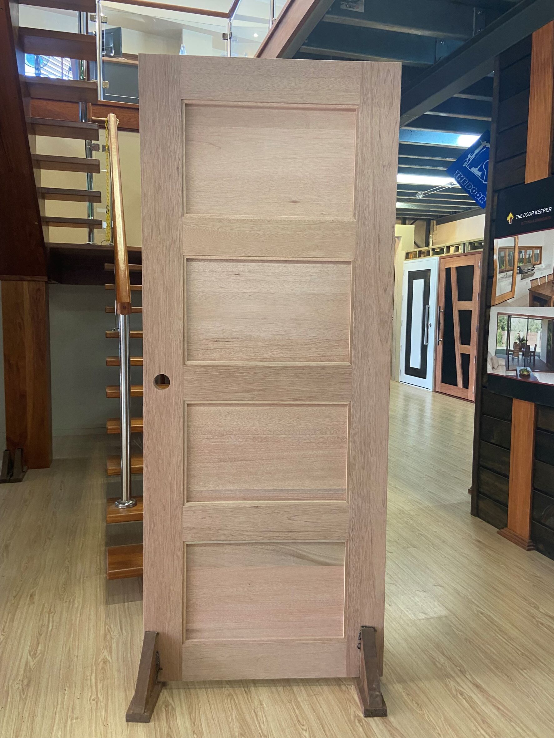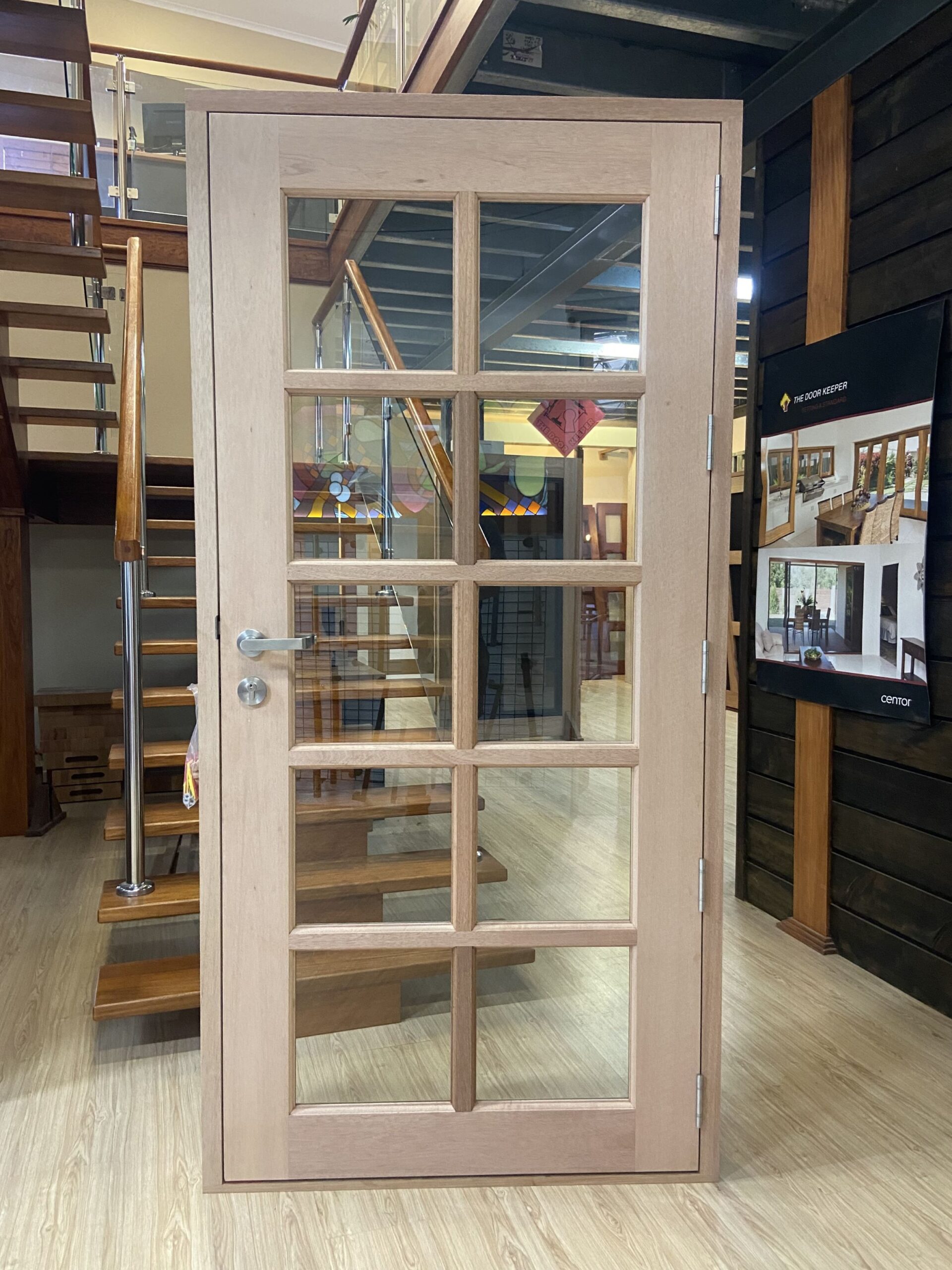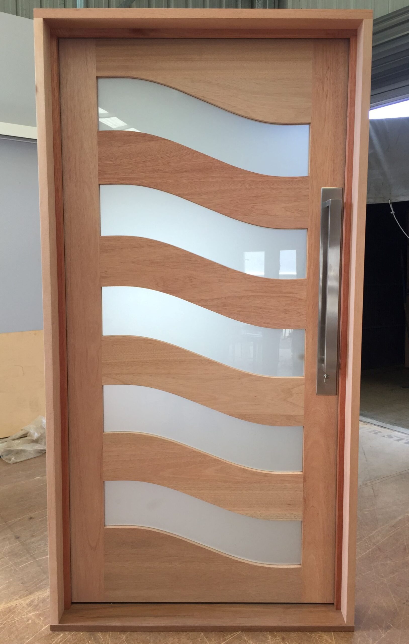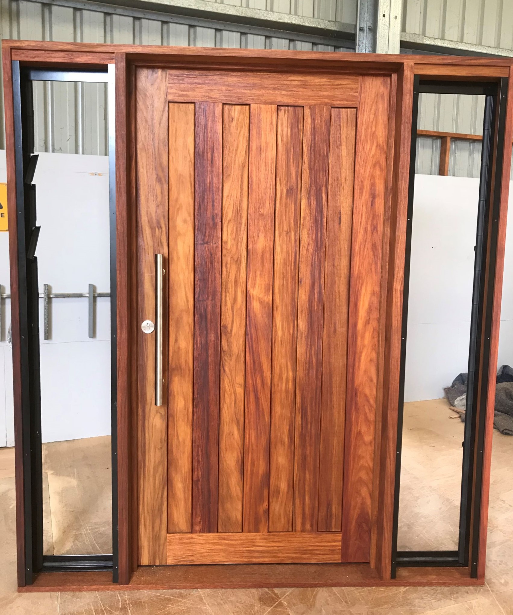For those who prefer a full timber door, Tirari’s alternating broad and narrow horizontal panels present a contemporary appeal.