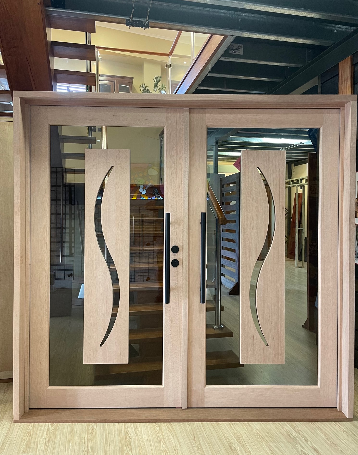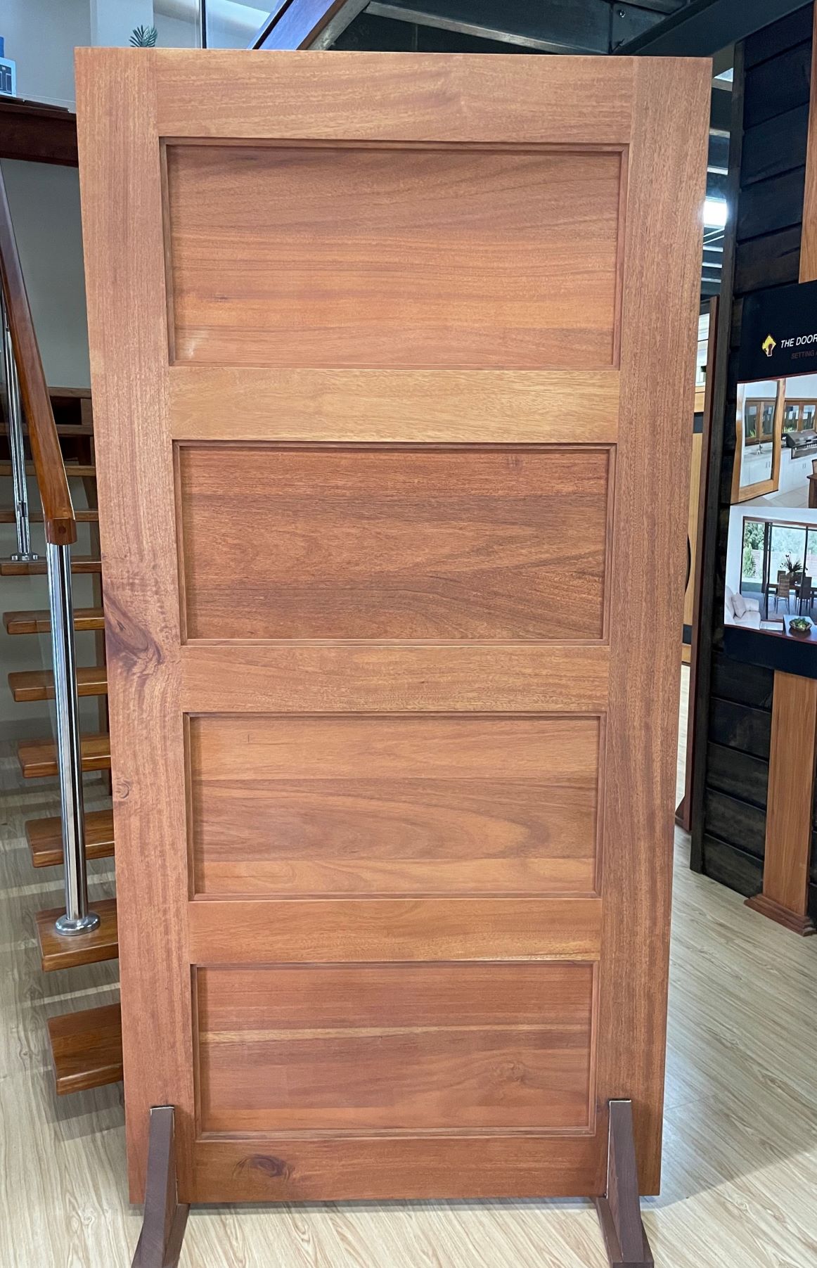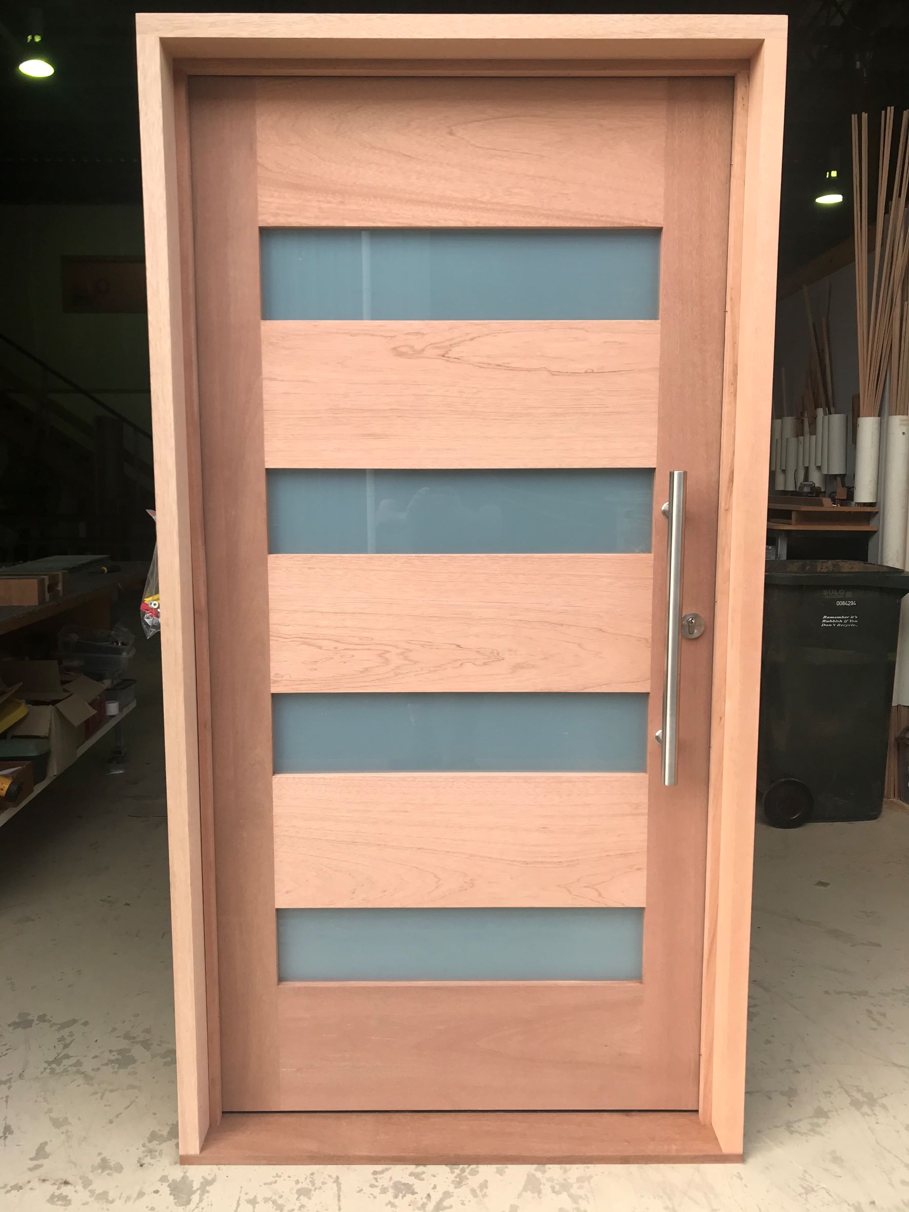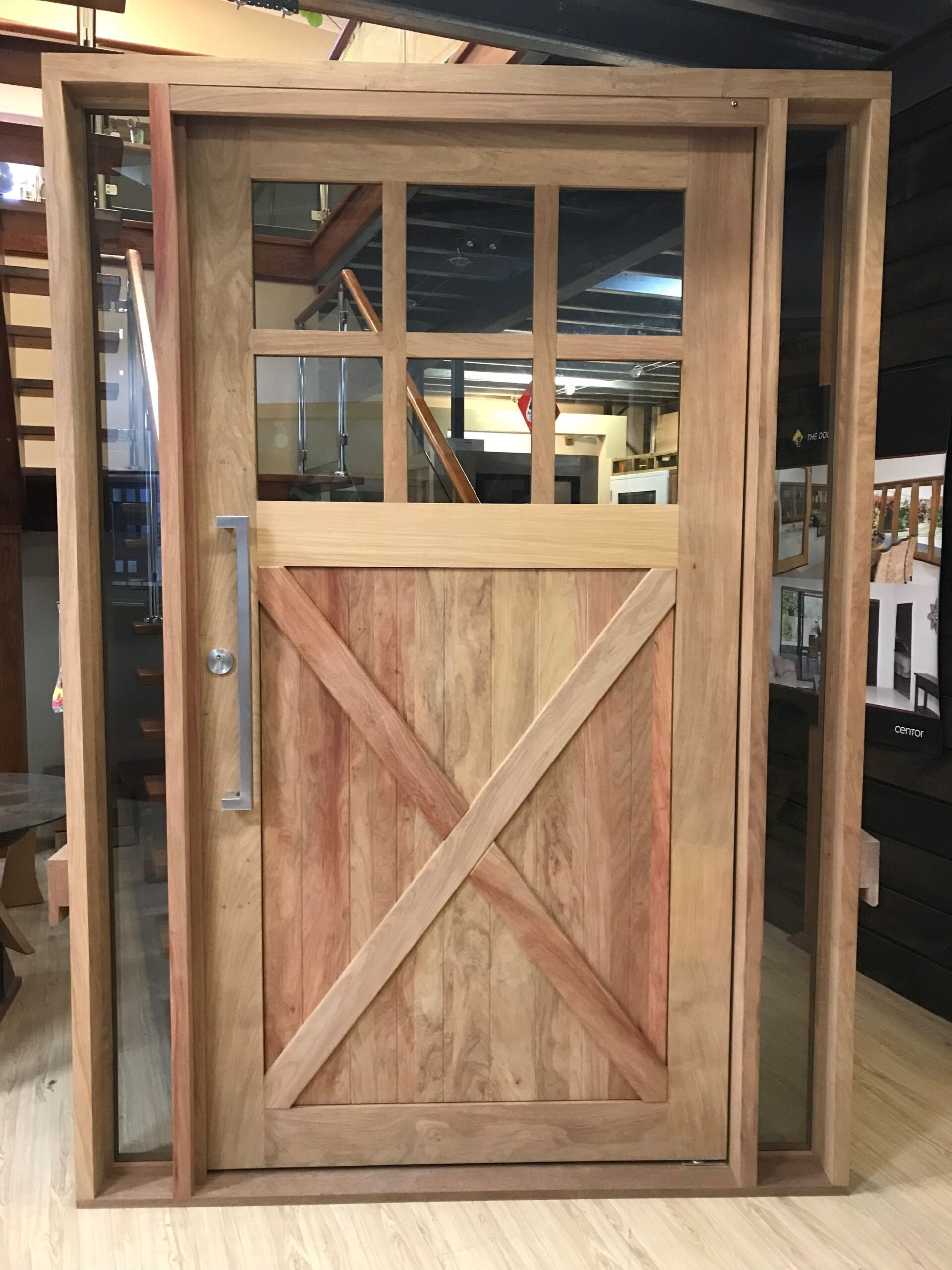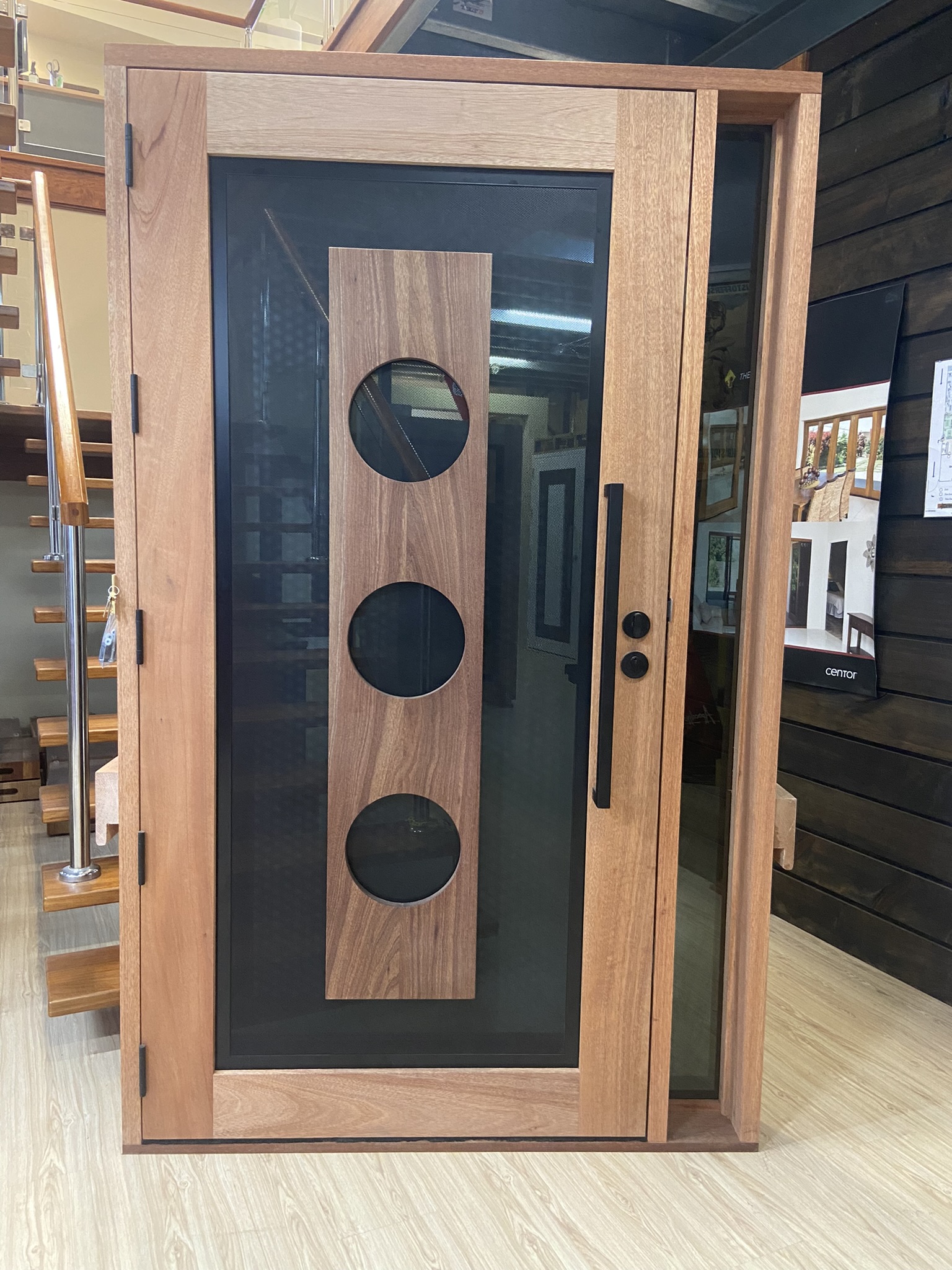 For those who prefer a full timber door, Tirari’s alternating broad and narrow horizontal panels present a contemporary appeal.