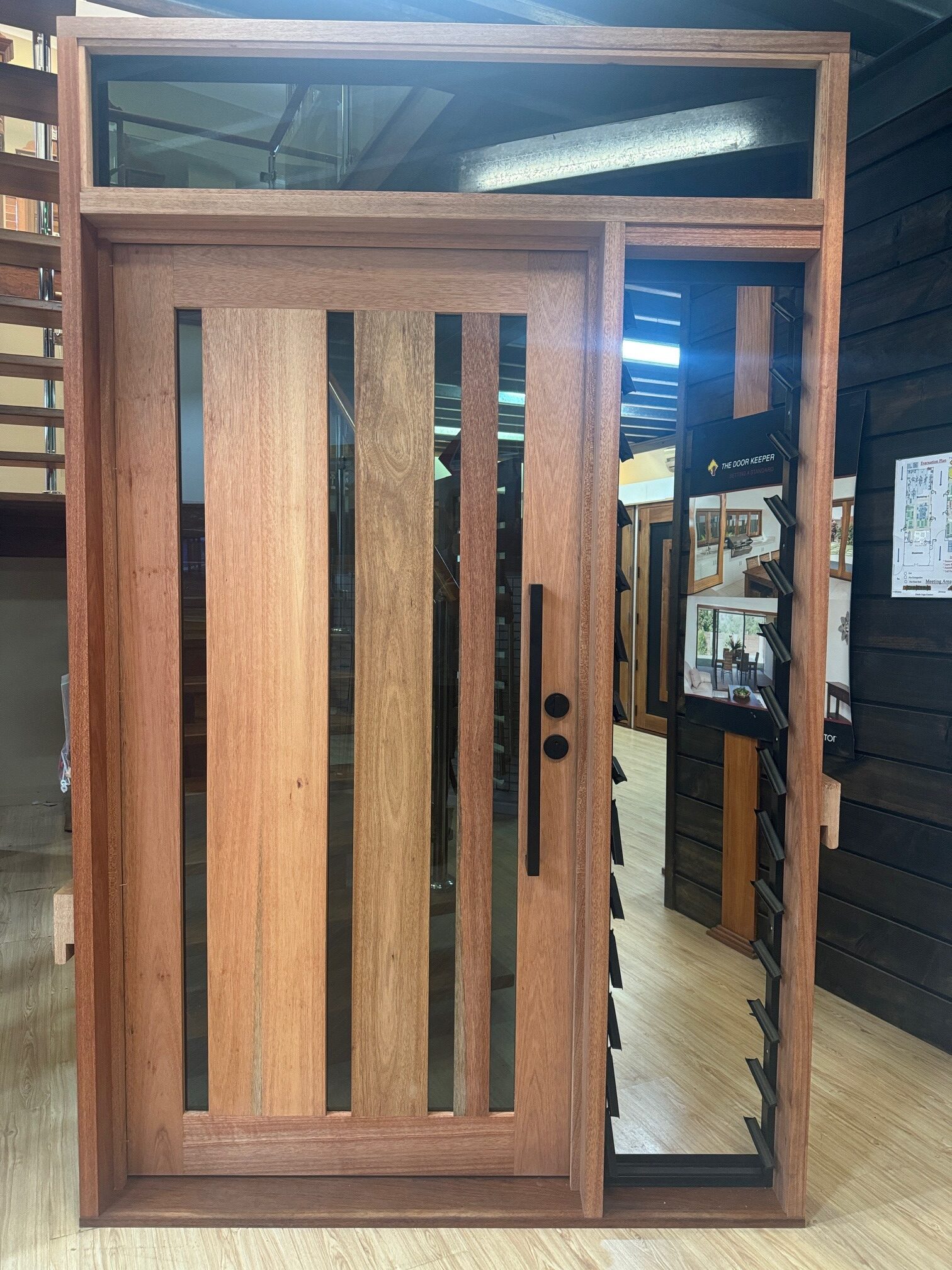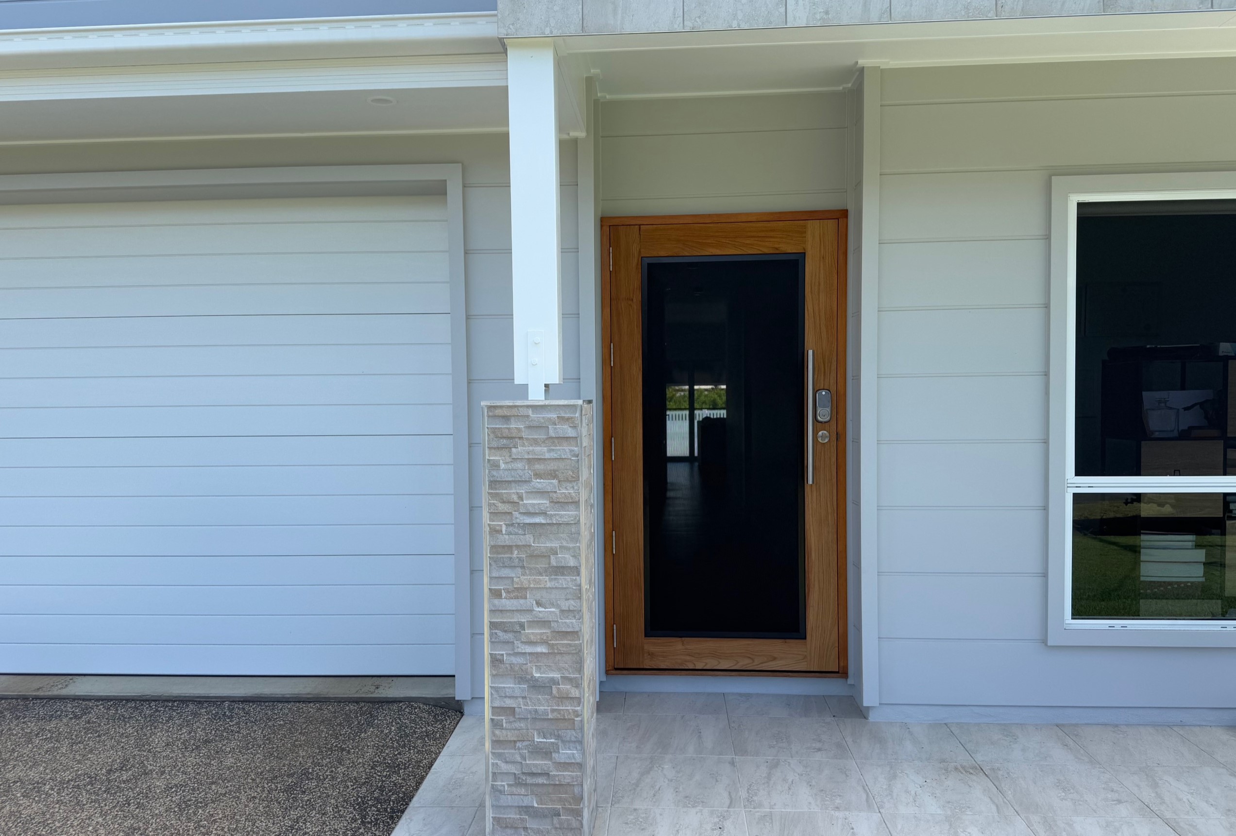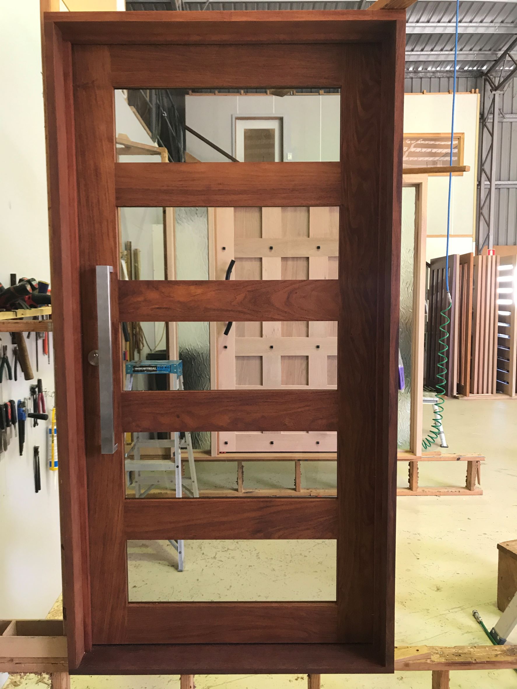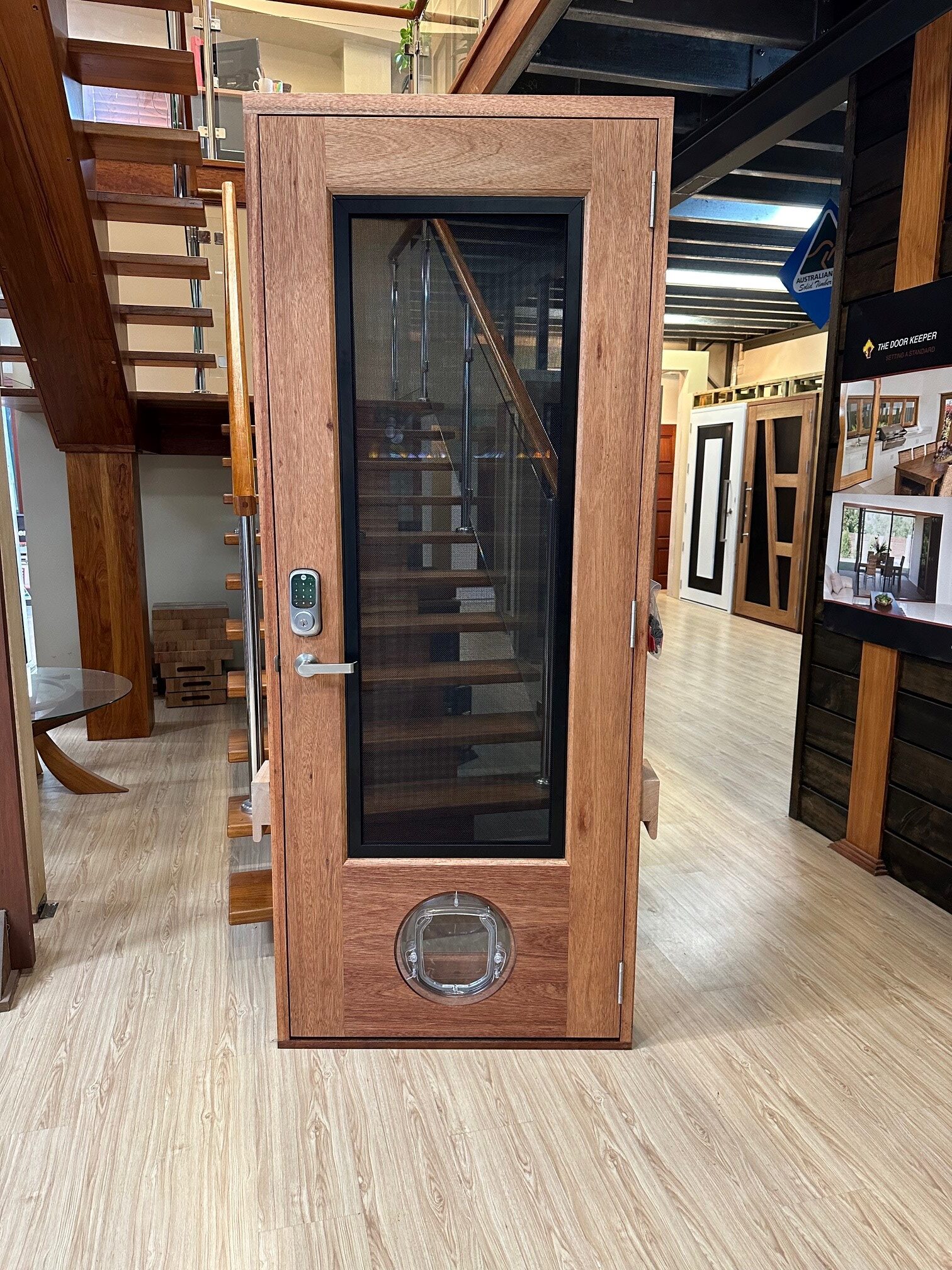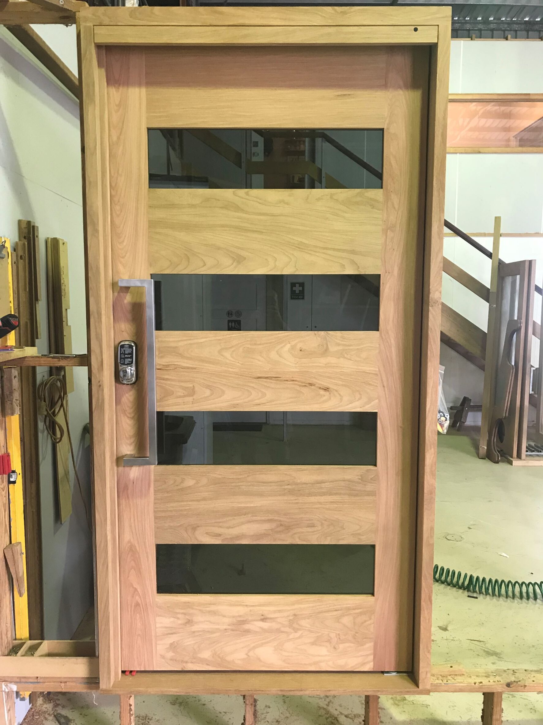 For those who prefer a full timber door, Tirari’s alternating broad and narrow horizontal panels present a contemporary appeal.