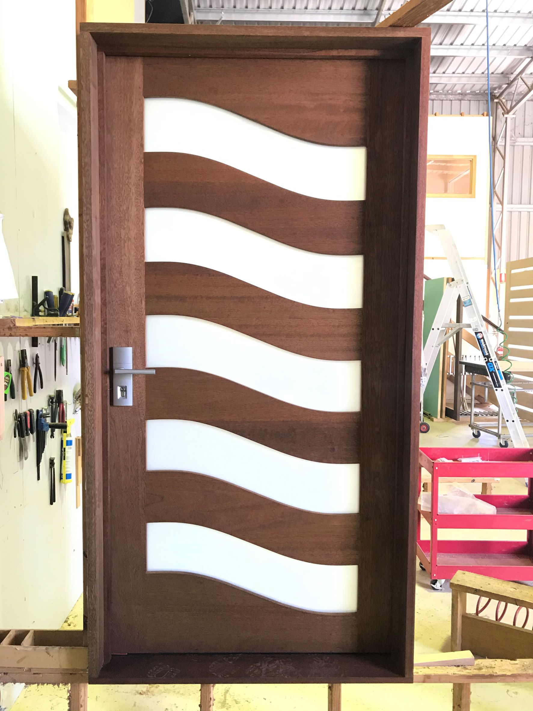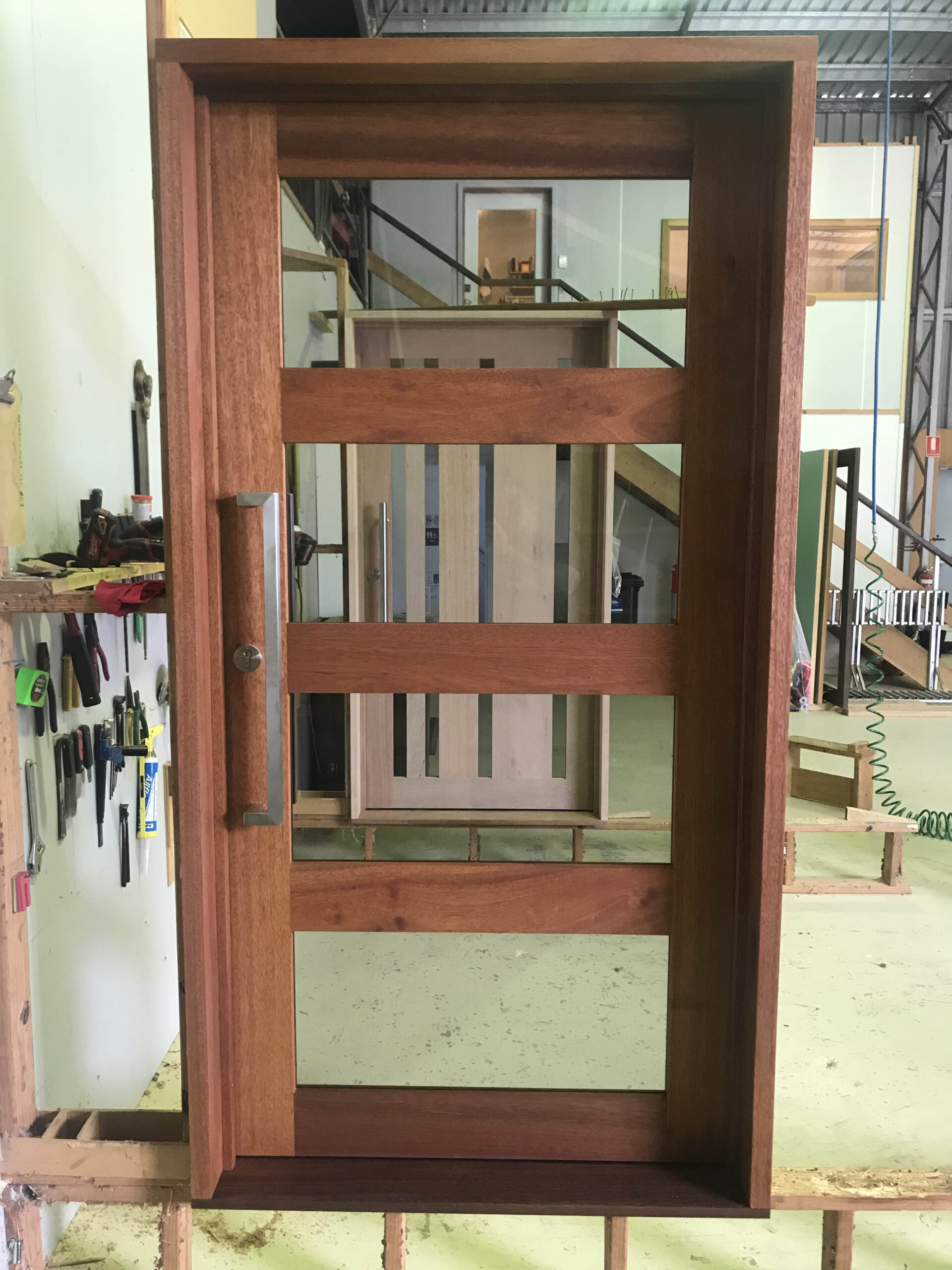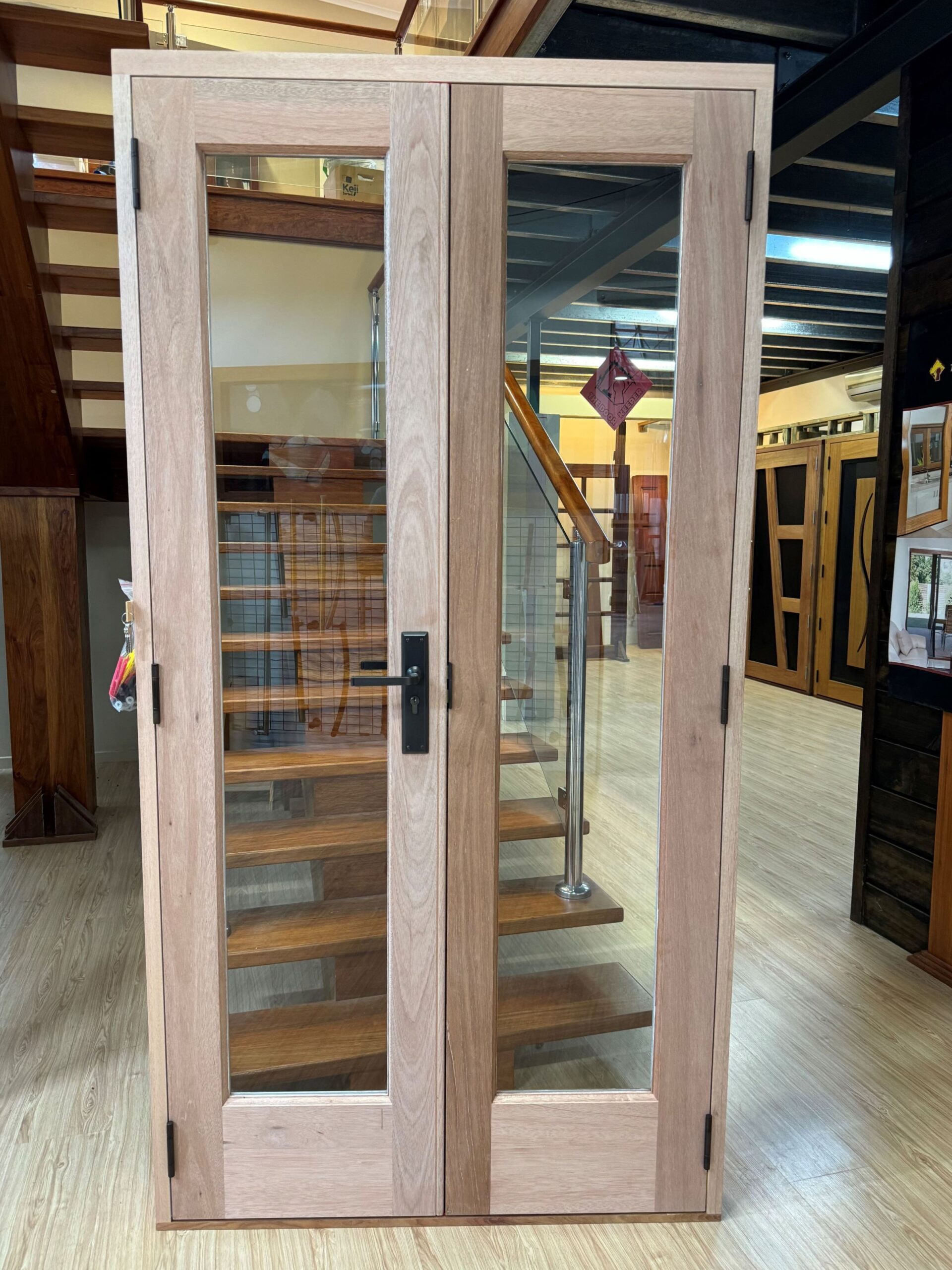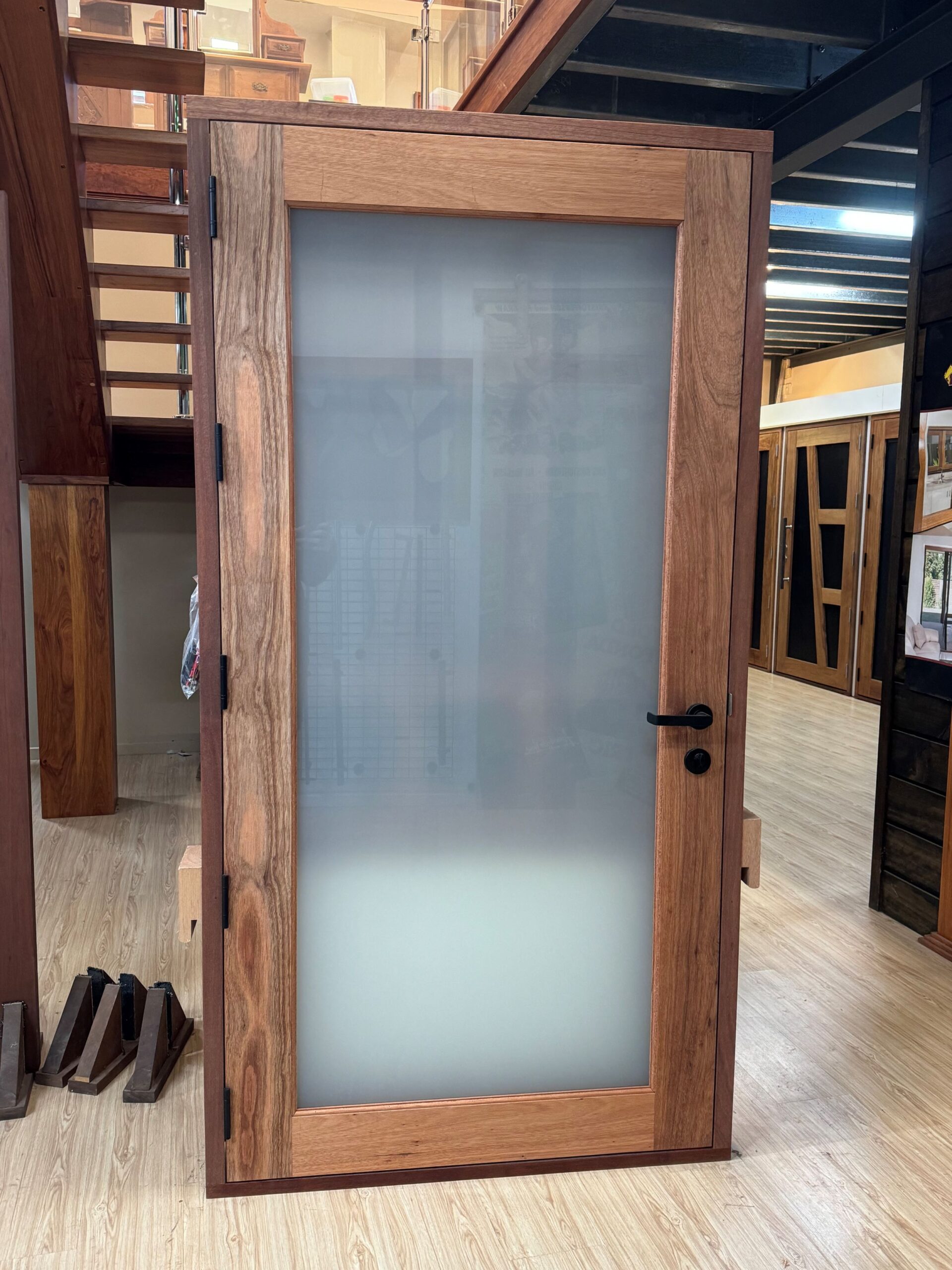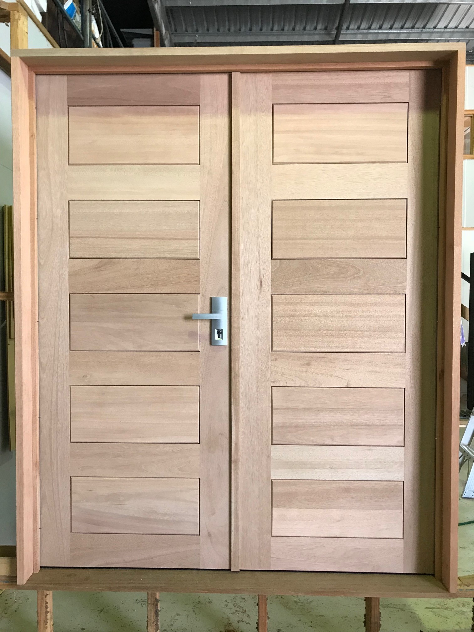 For those who prefer a full timber door, Tirari’s alternating broad and narrow horizontal panels present a contemporary appeal.