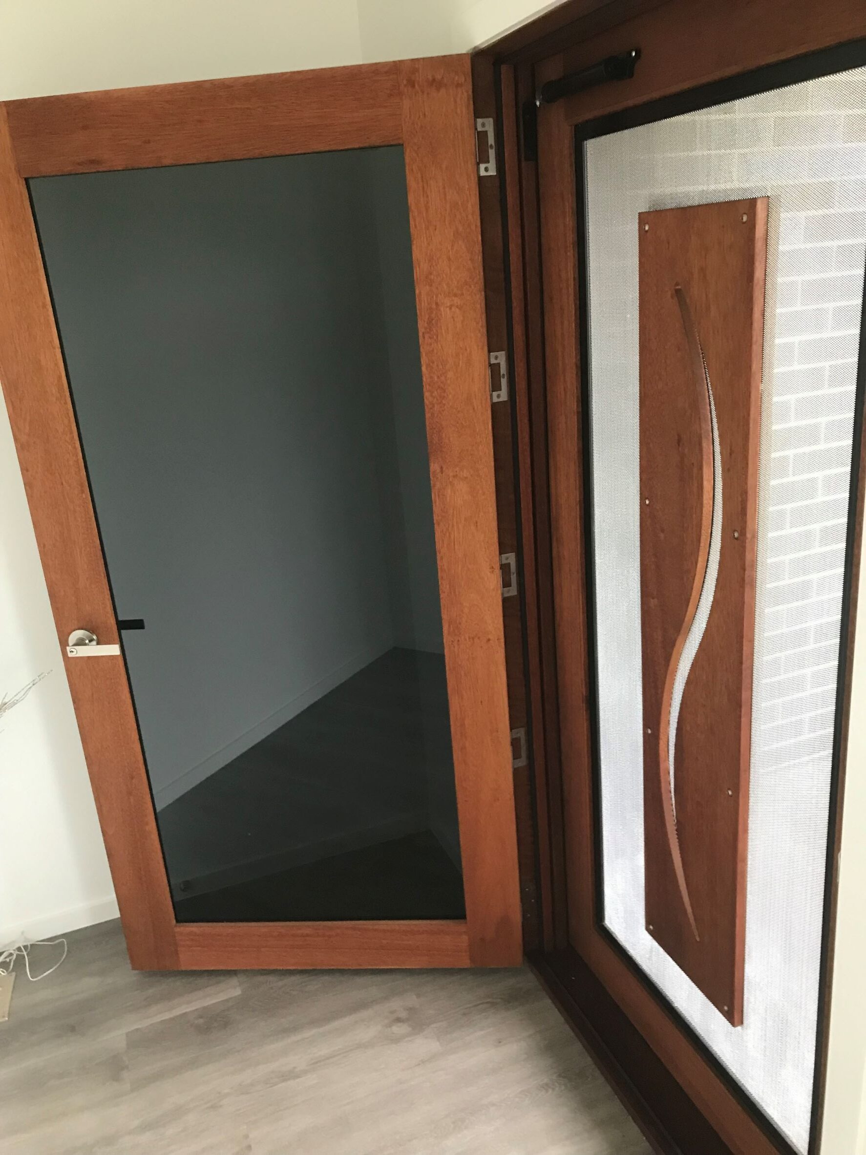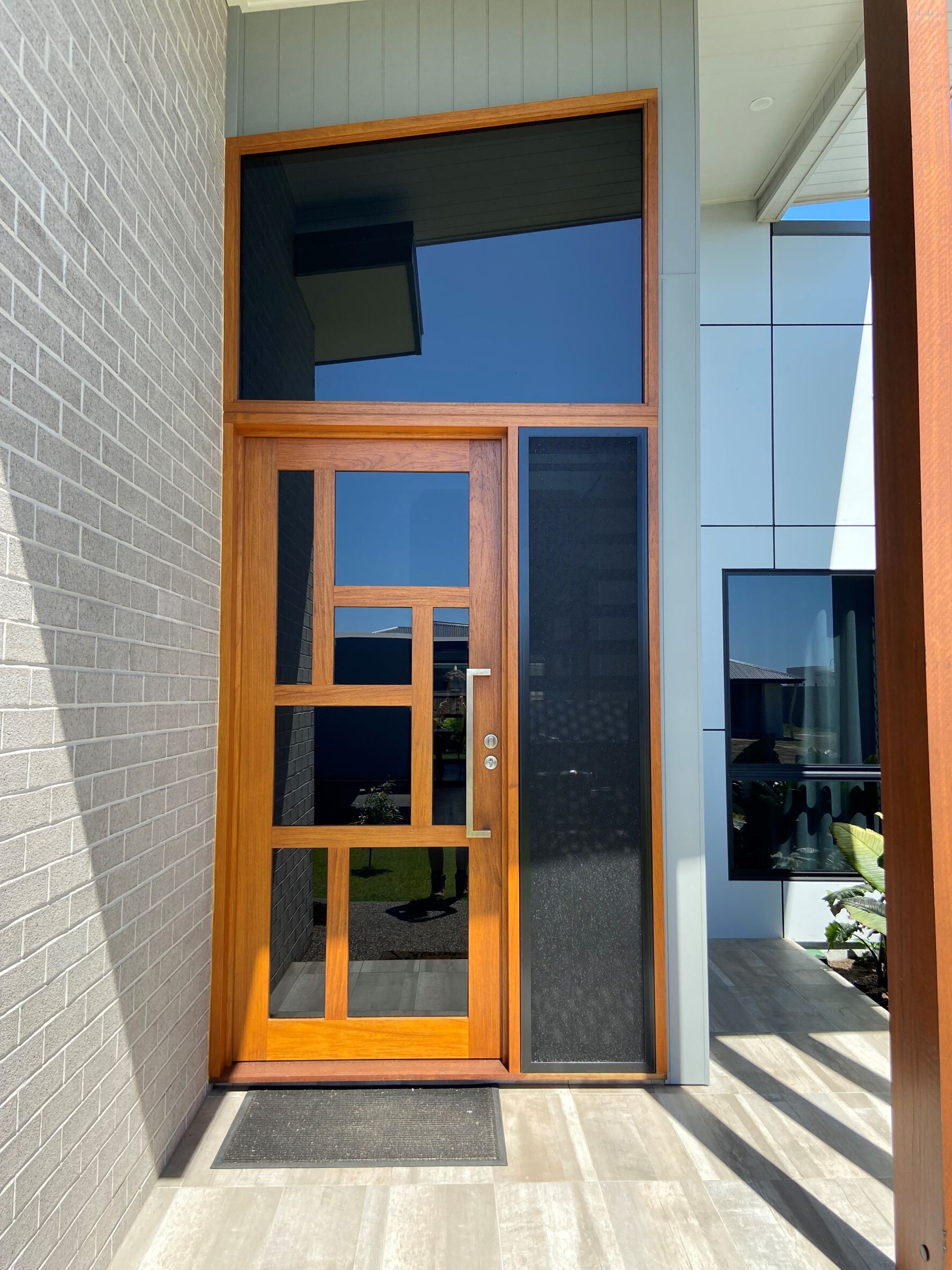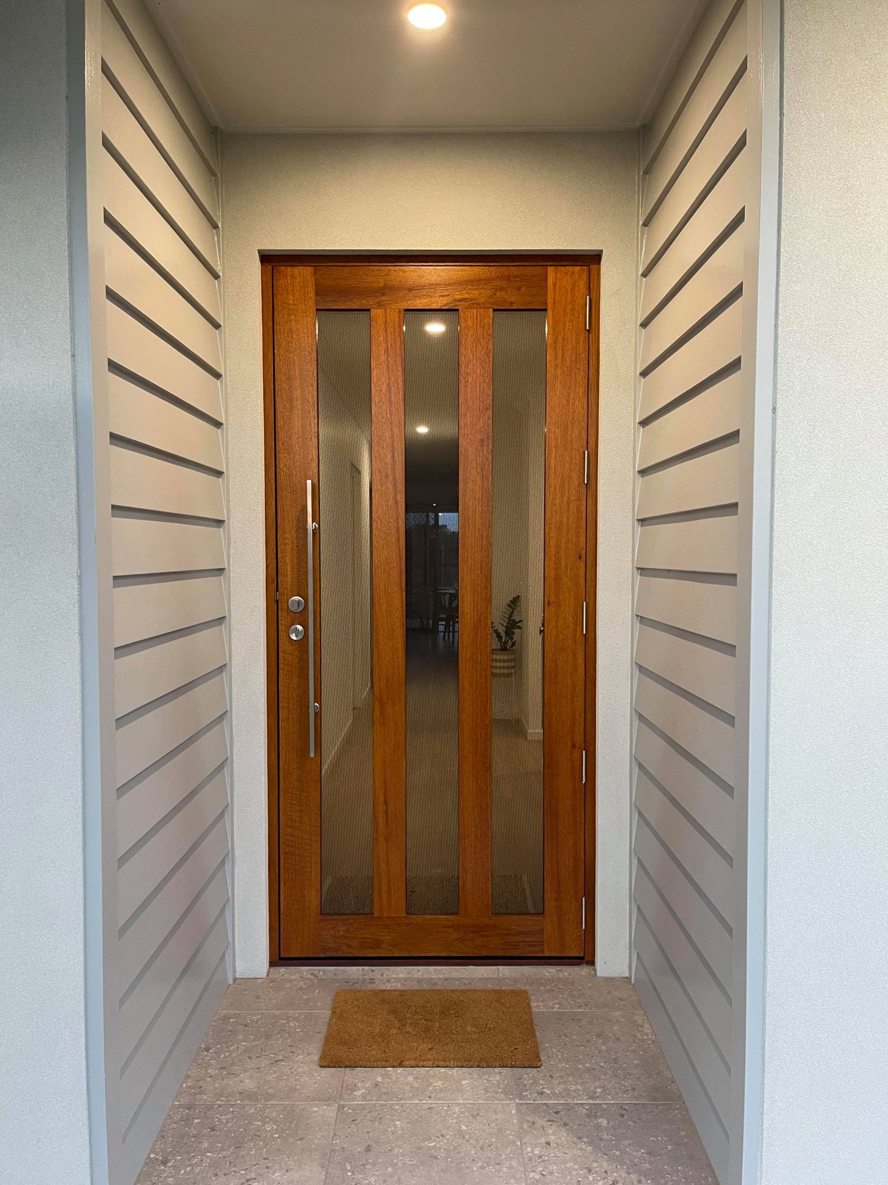 The Groote, another of our floating panel series; with it’s five floating panels of timber on glass is a show-stopping entrance.