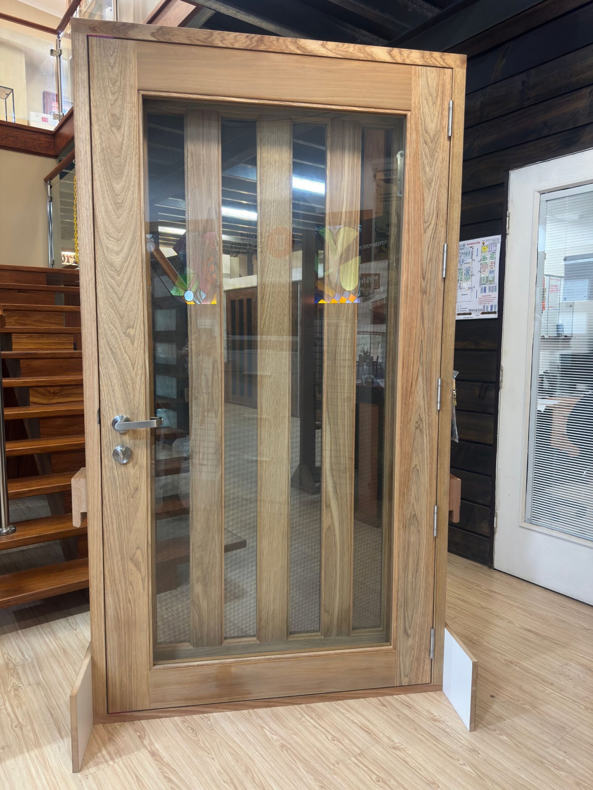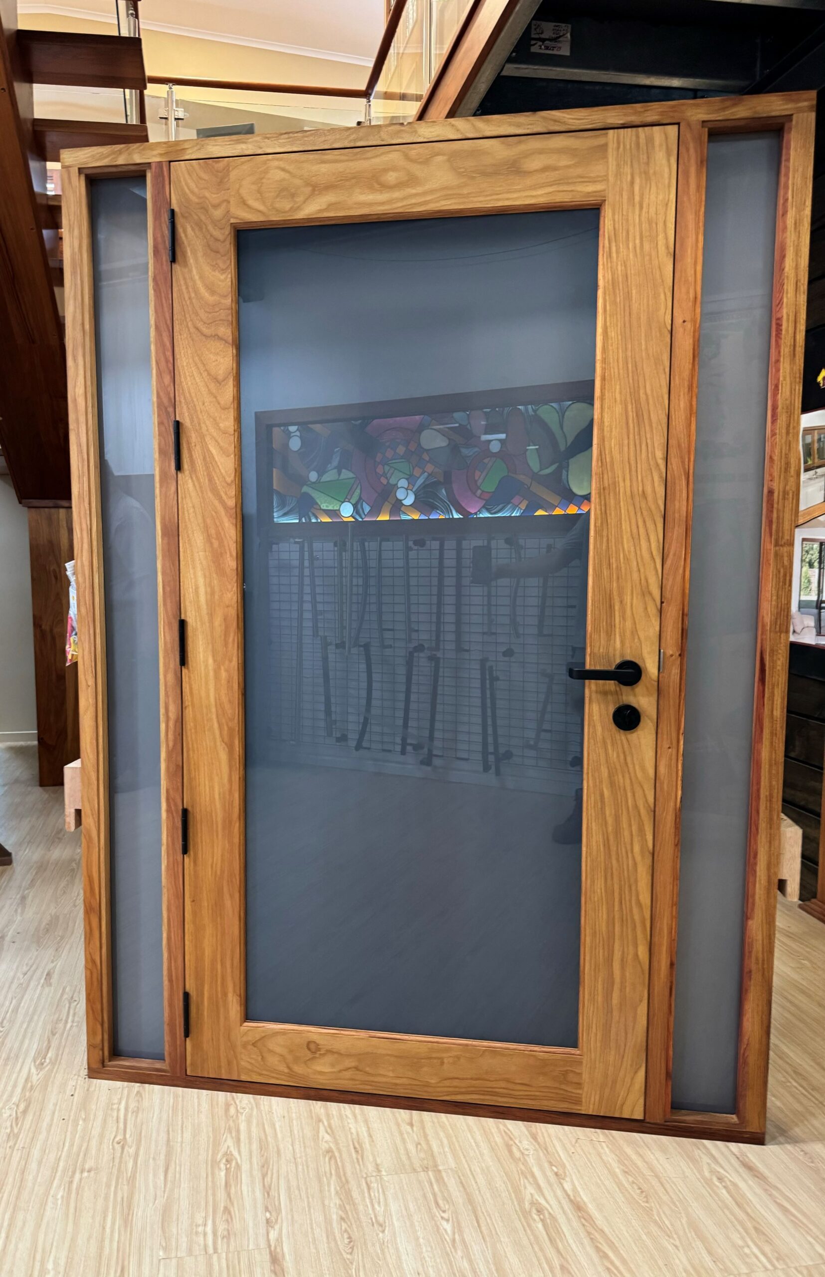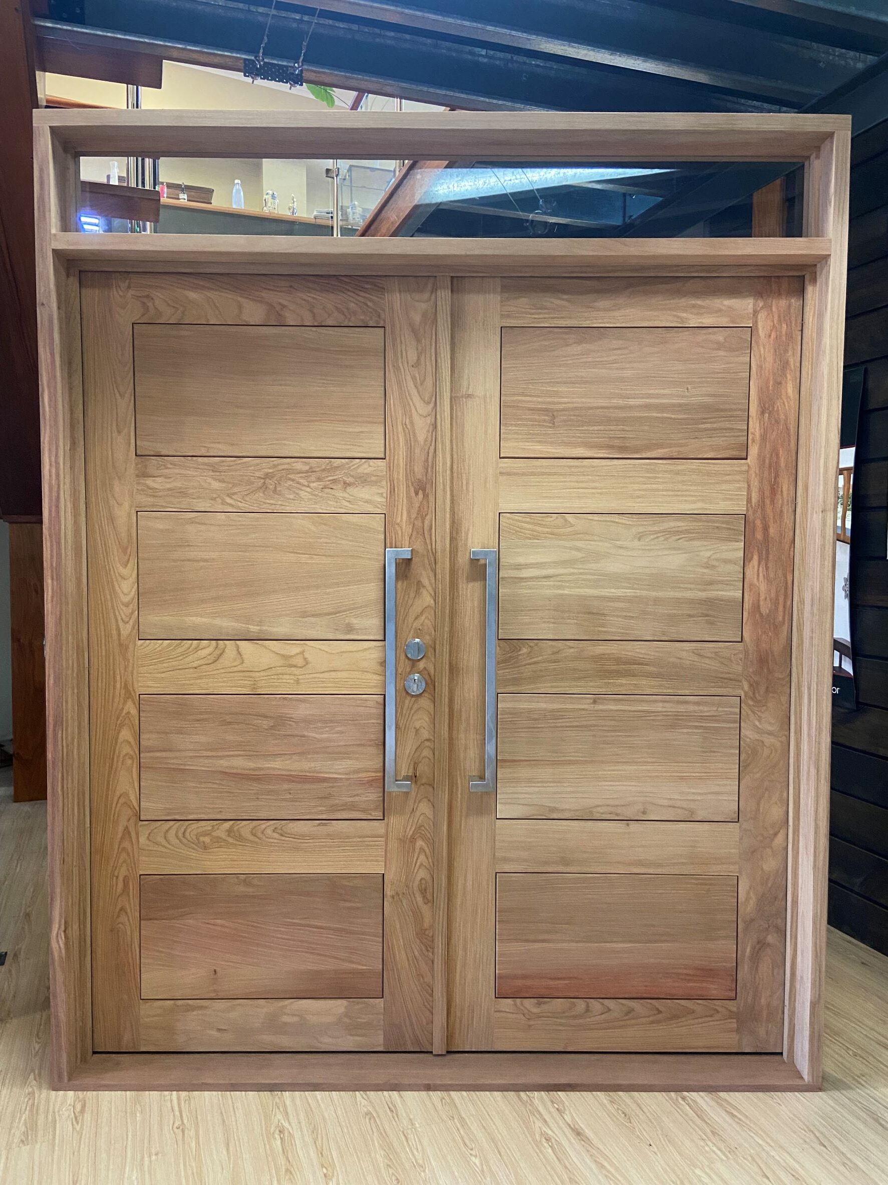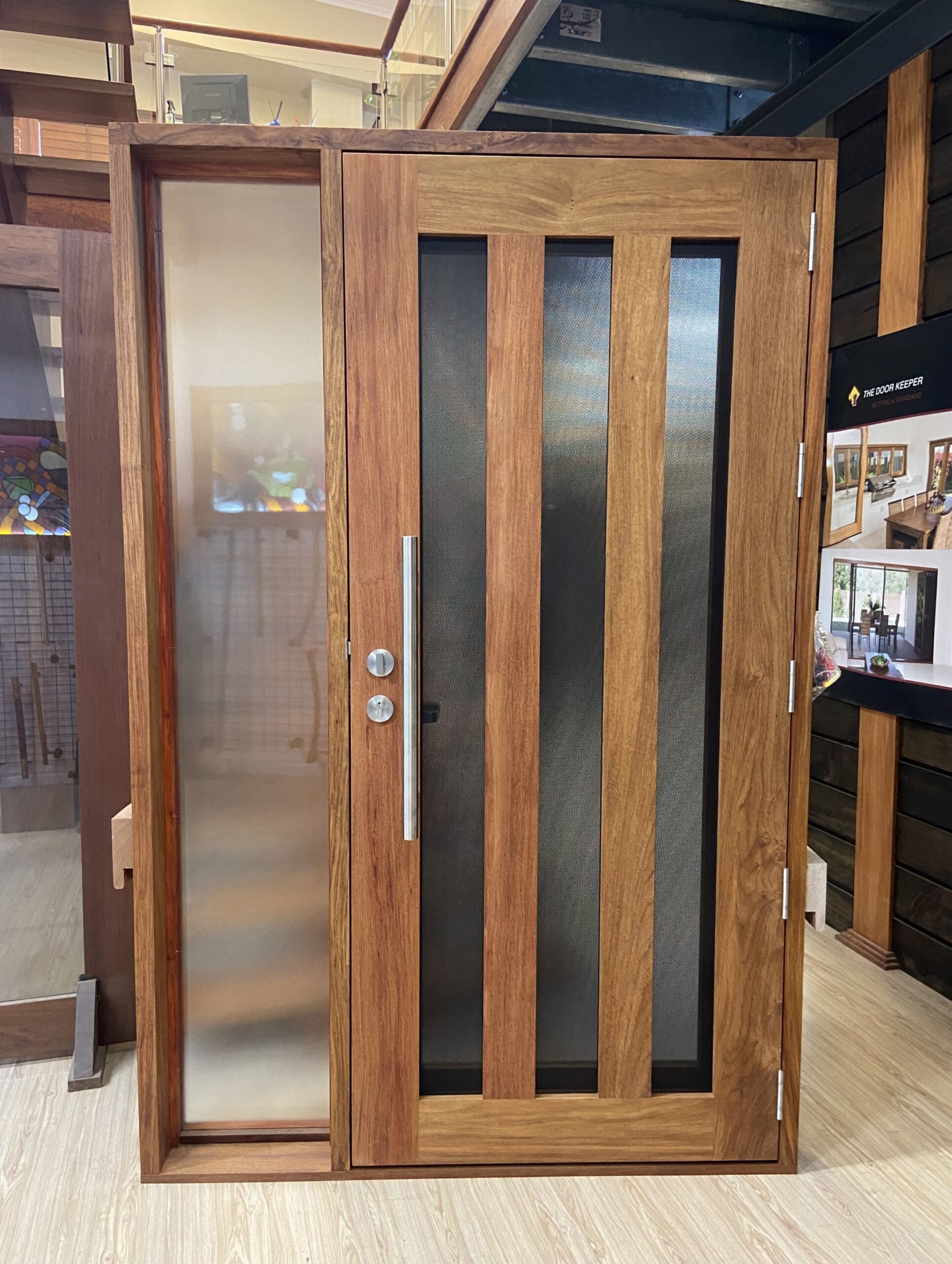 The Groote, another of our floating panel series; with it’s five floating panels of timber on glass is a show-stopping entrance.