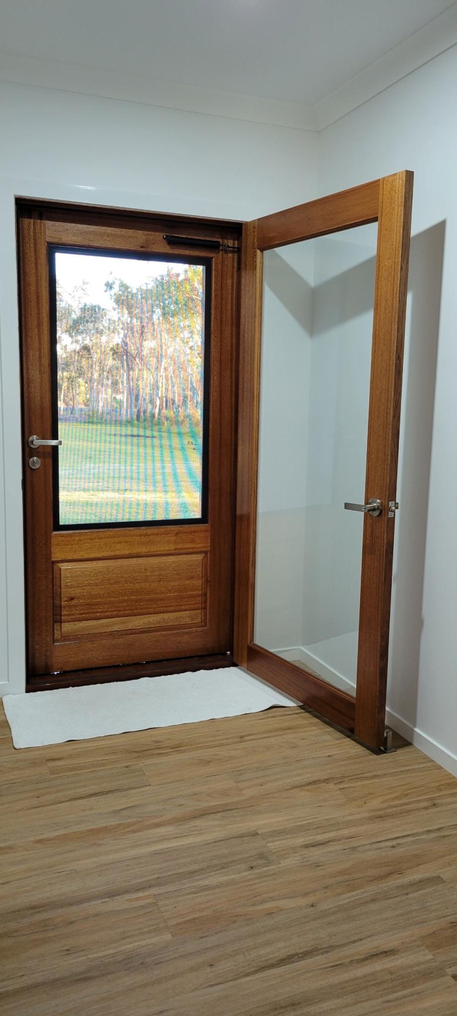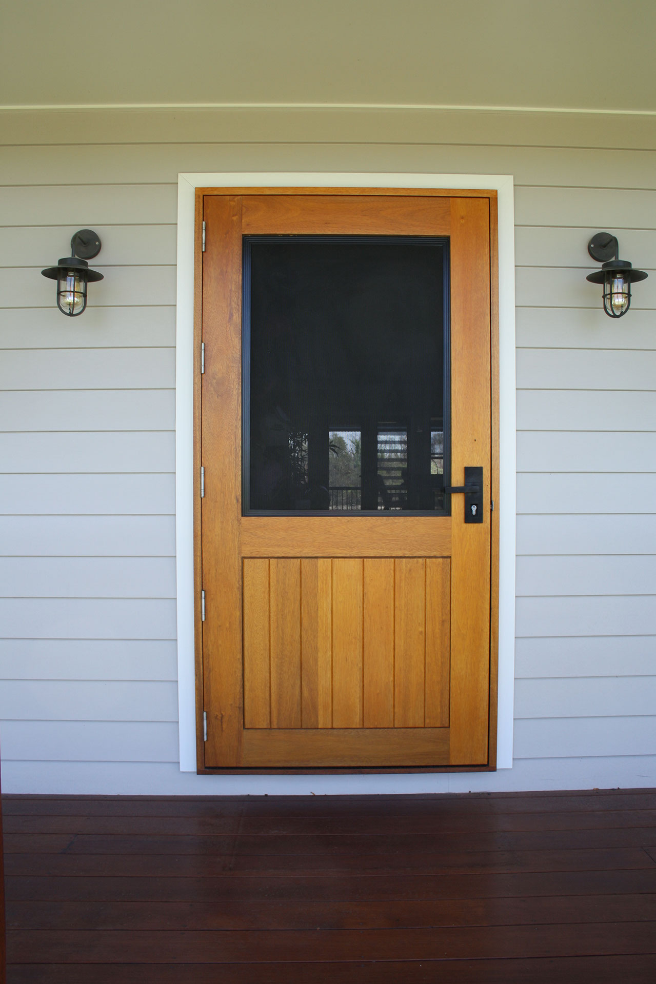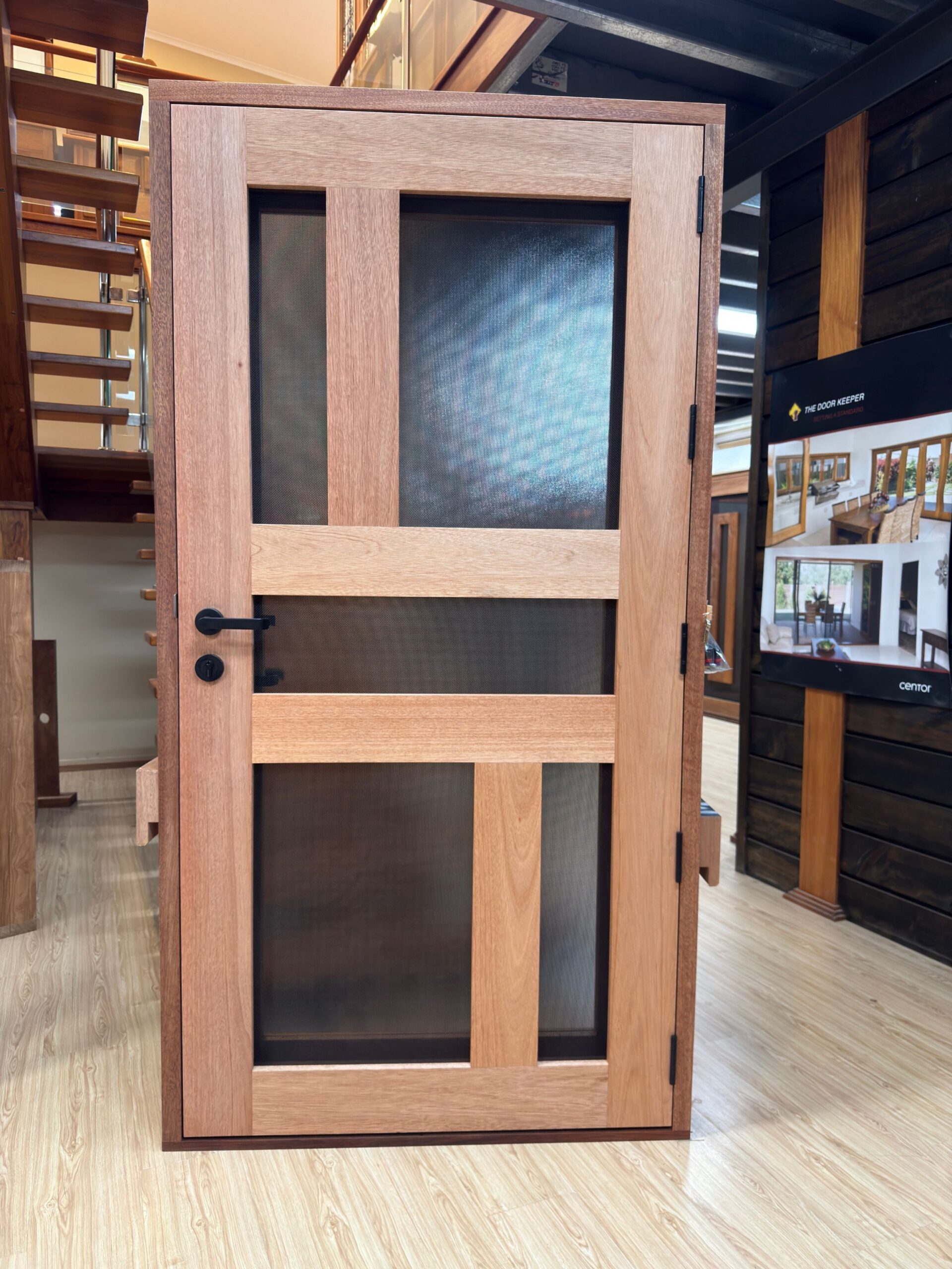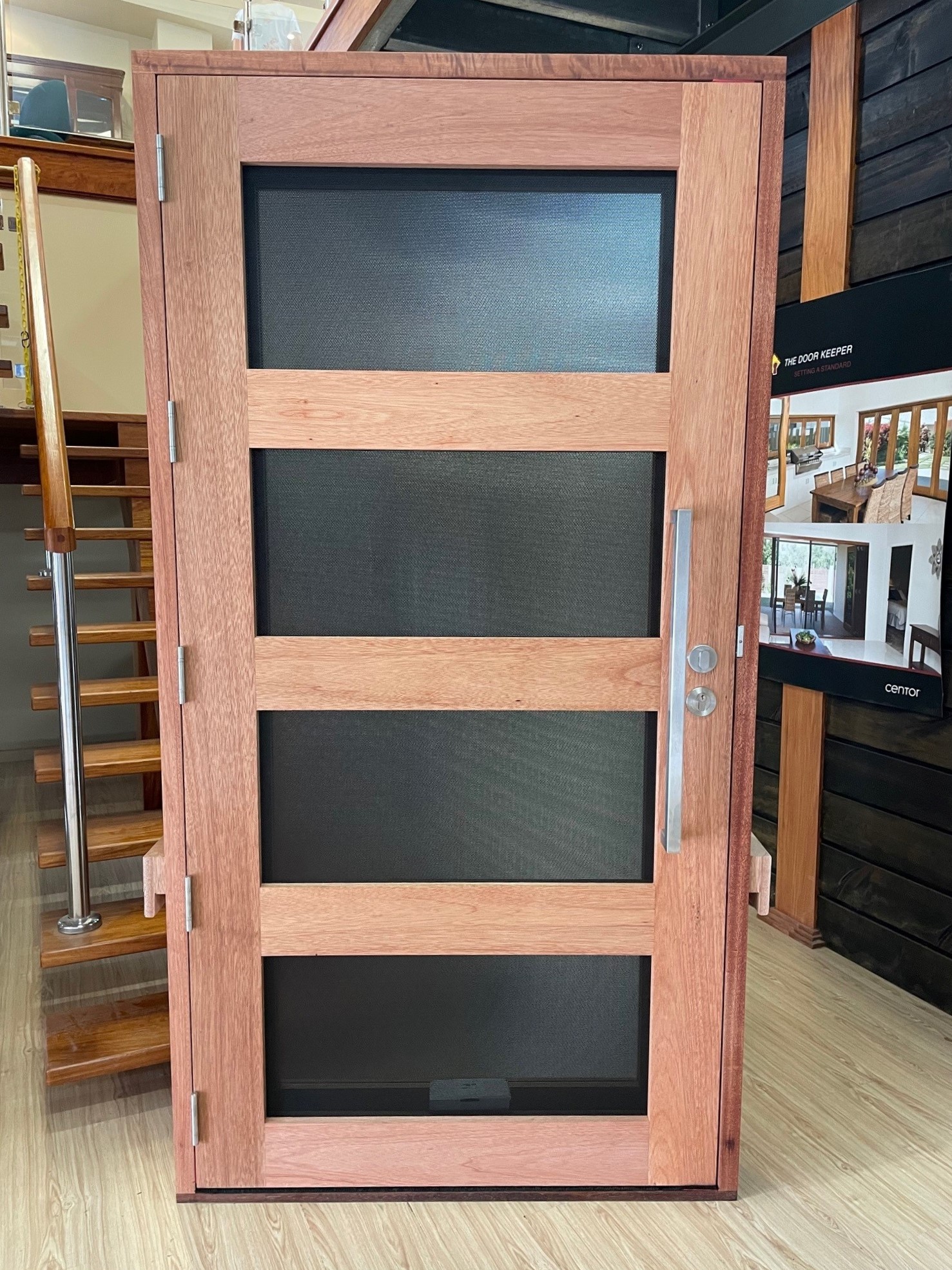 Delivering a light-filled entry with ample airflow the Mackenzie traditional feel via it’s top large barrier screen section and VJ solid timber bottom panel.