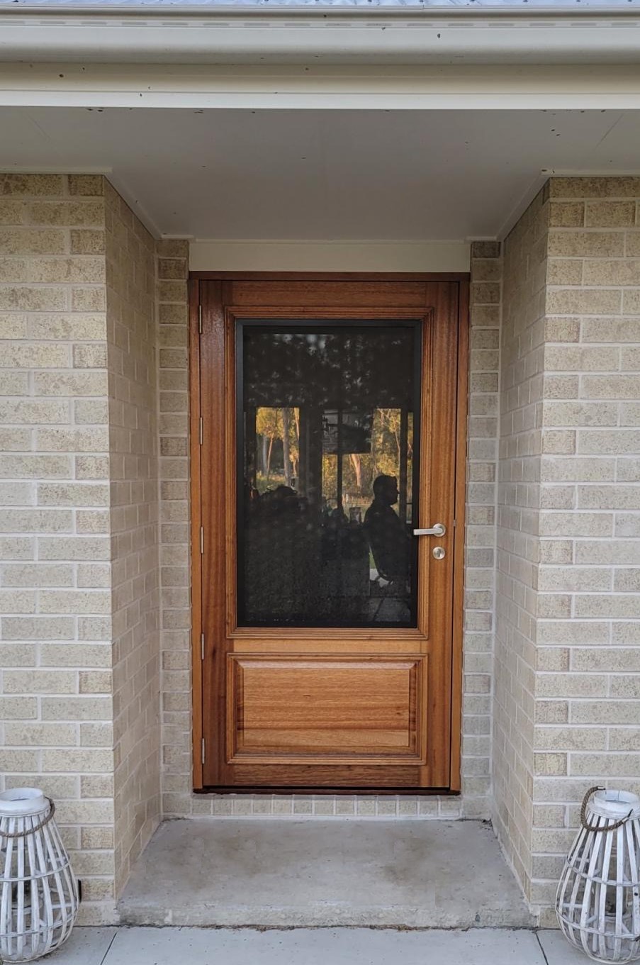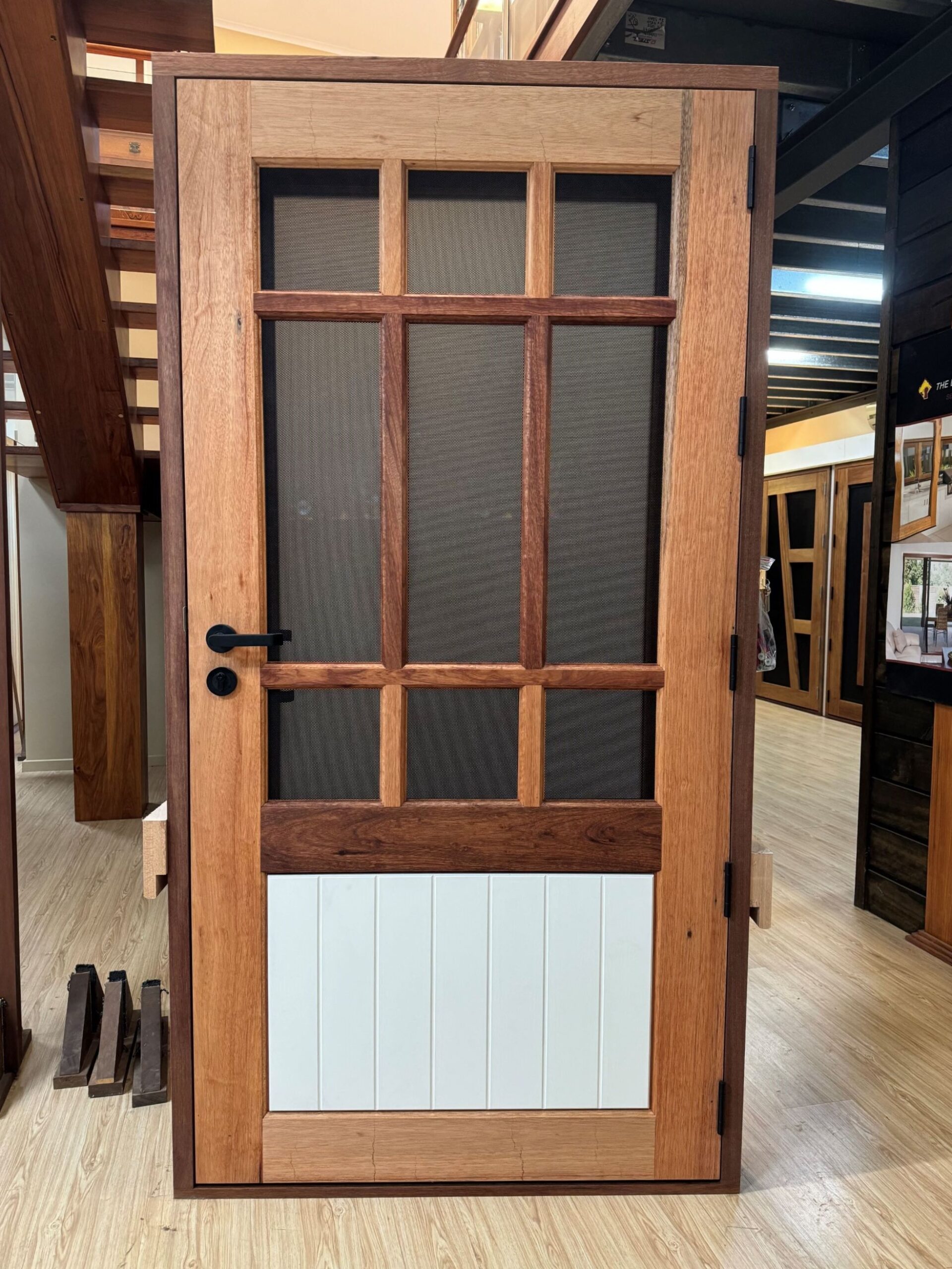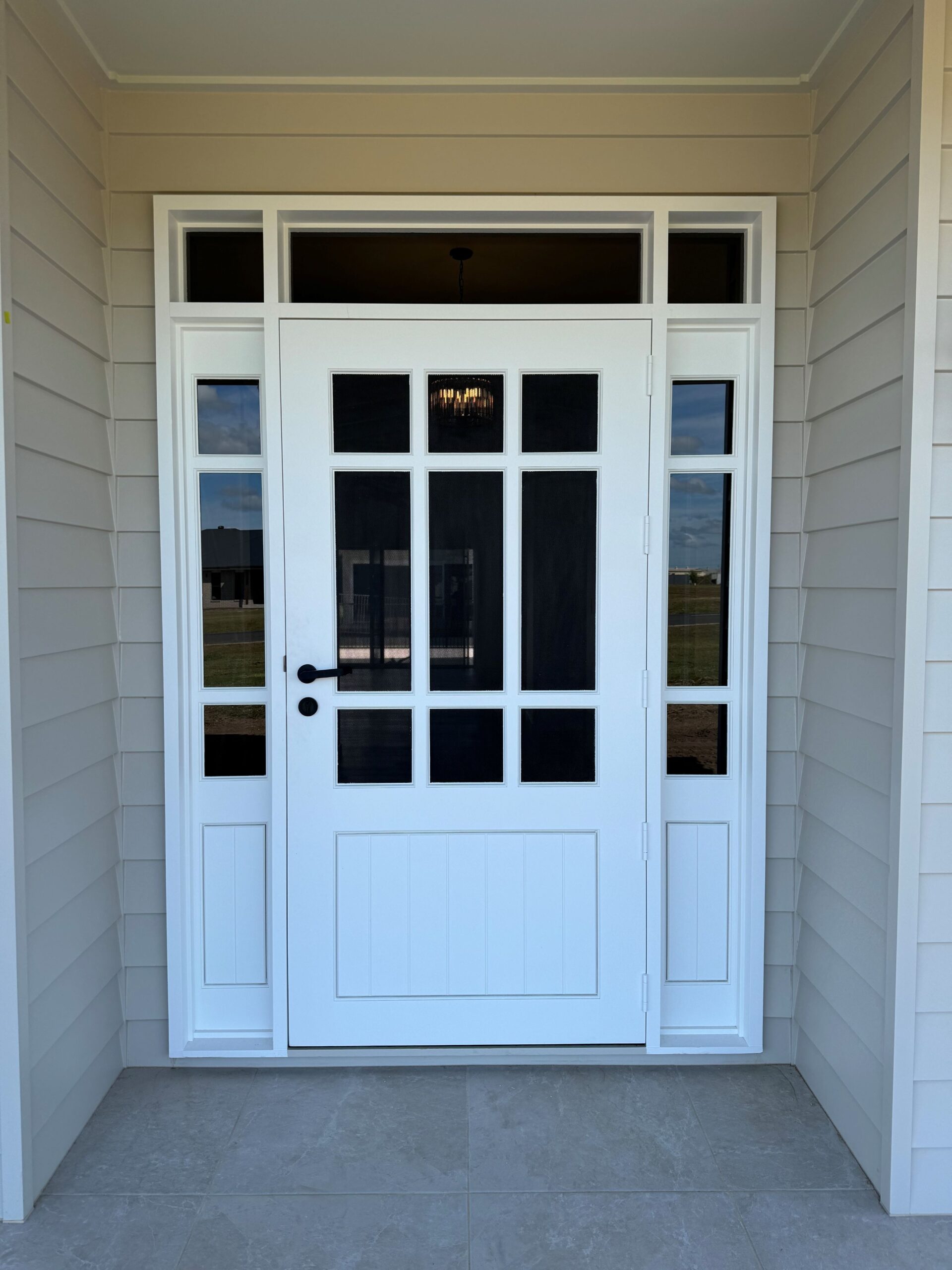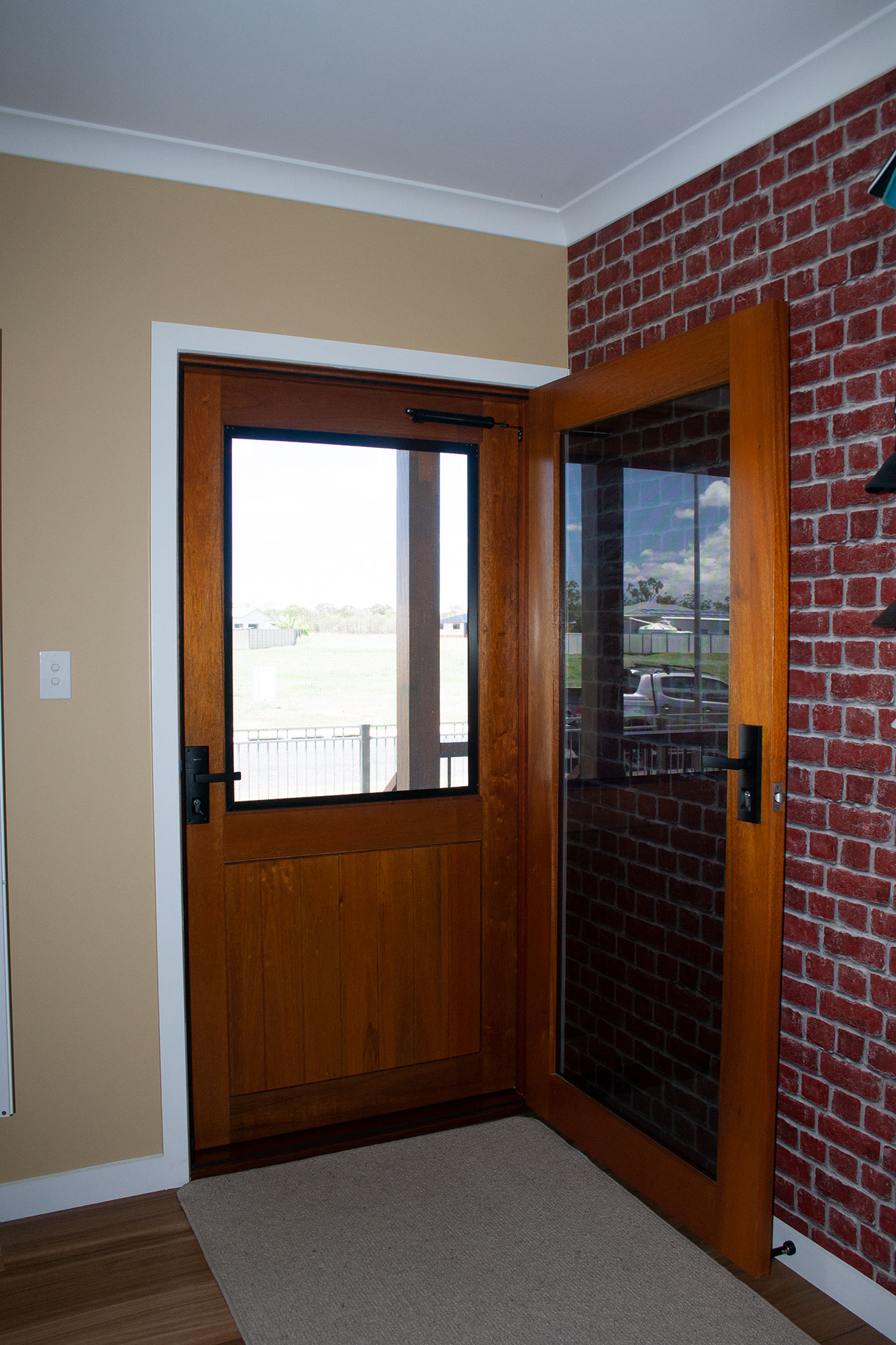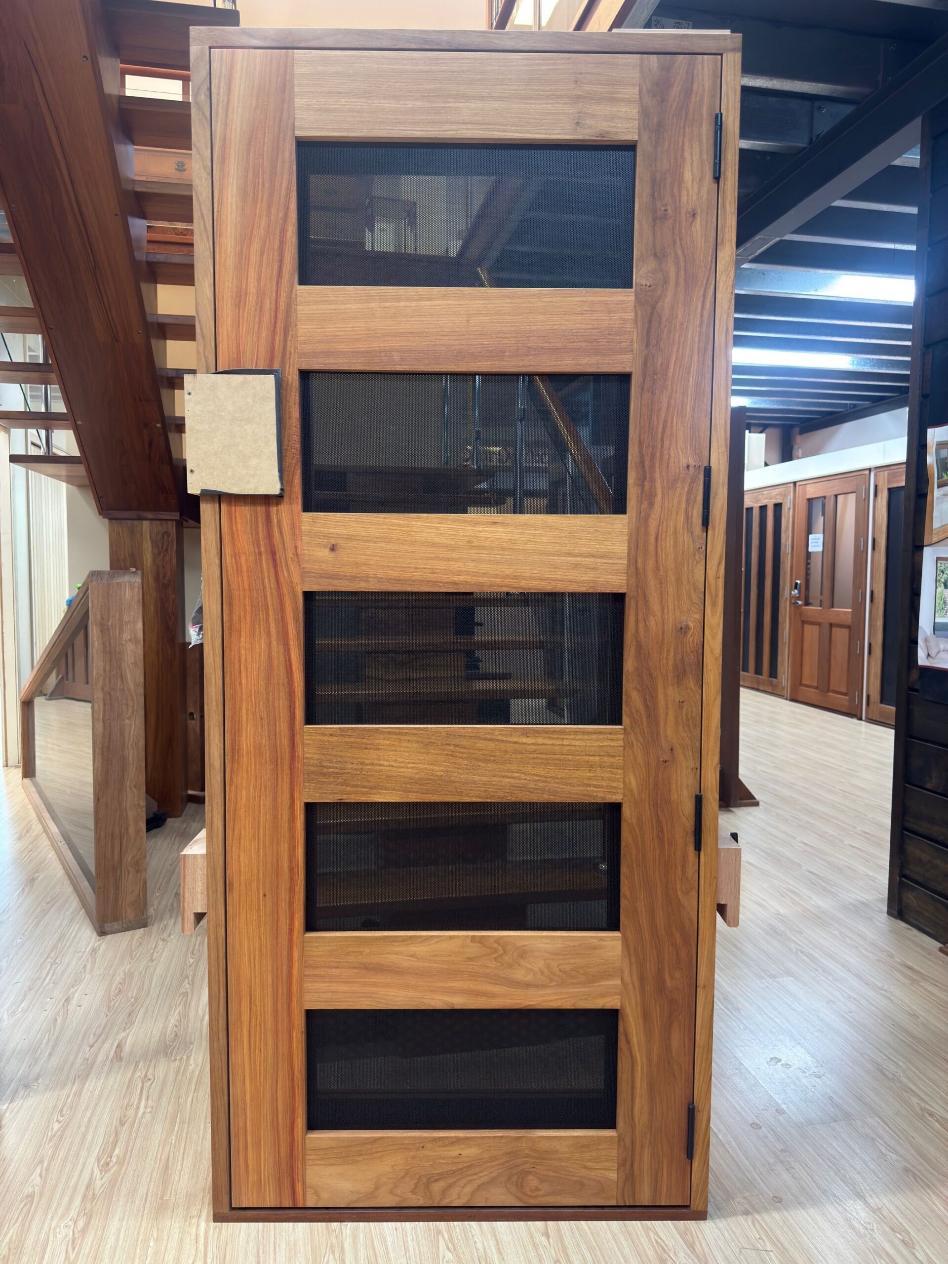 Delivering a light-filled entry with ample airflow the Mackenzie traditional feel via it’s top large barrier screen section and VJ solid timber bottom panel.