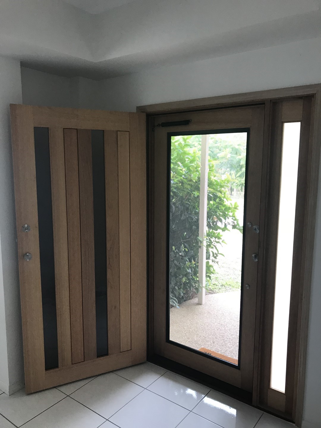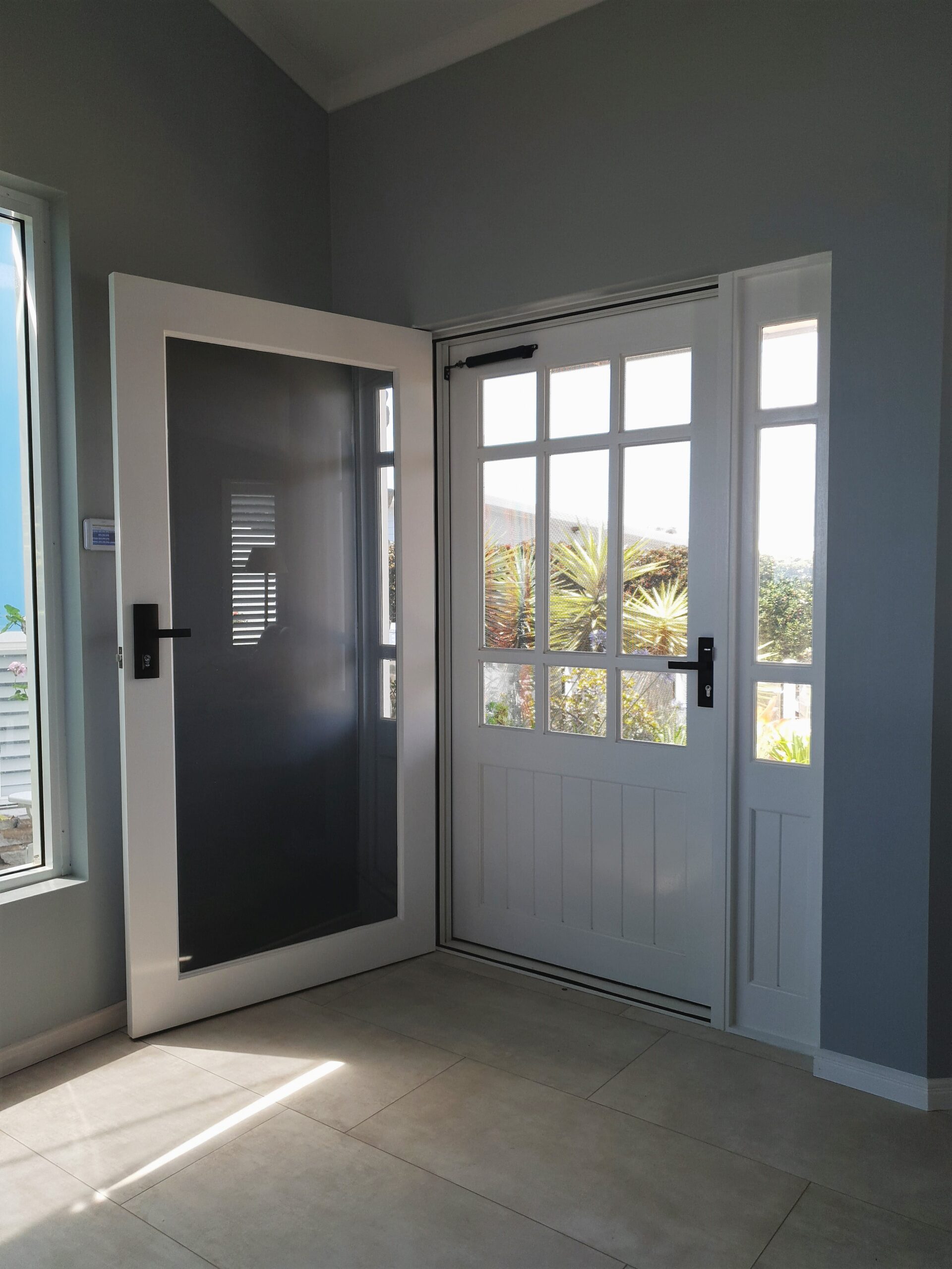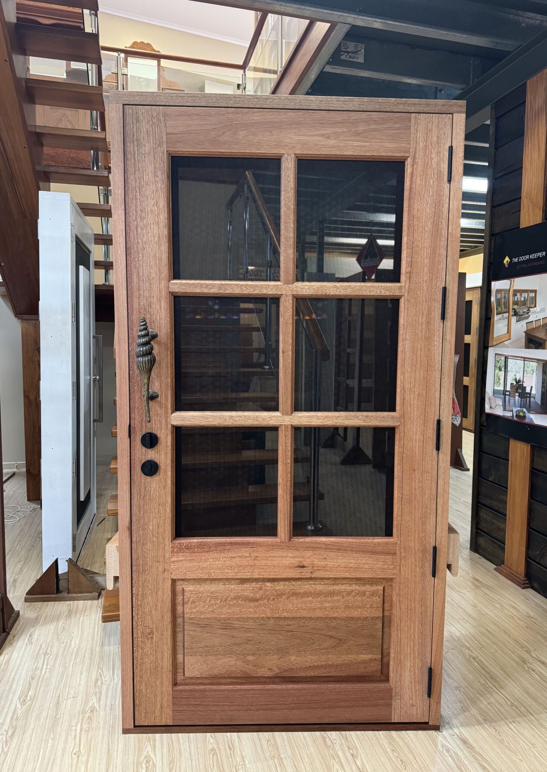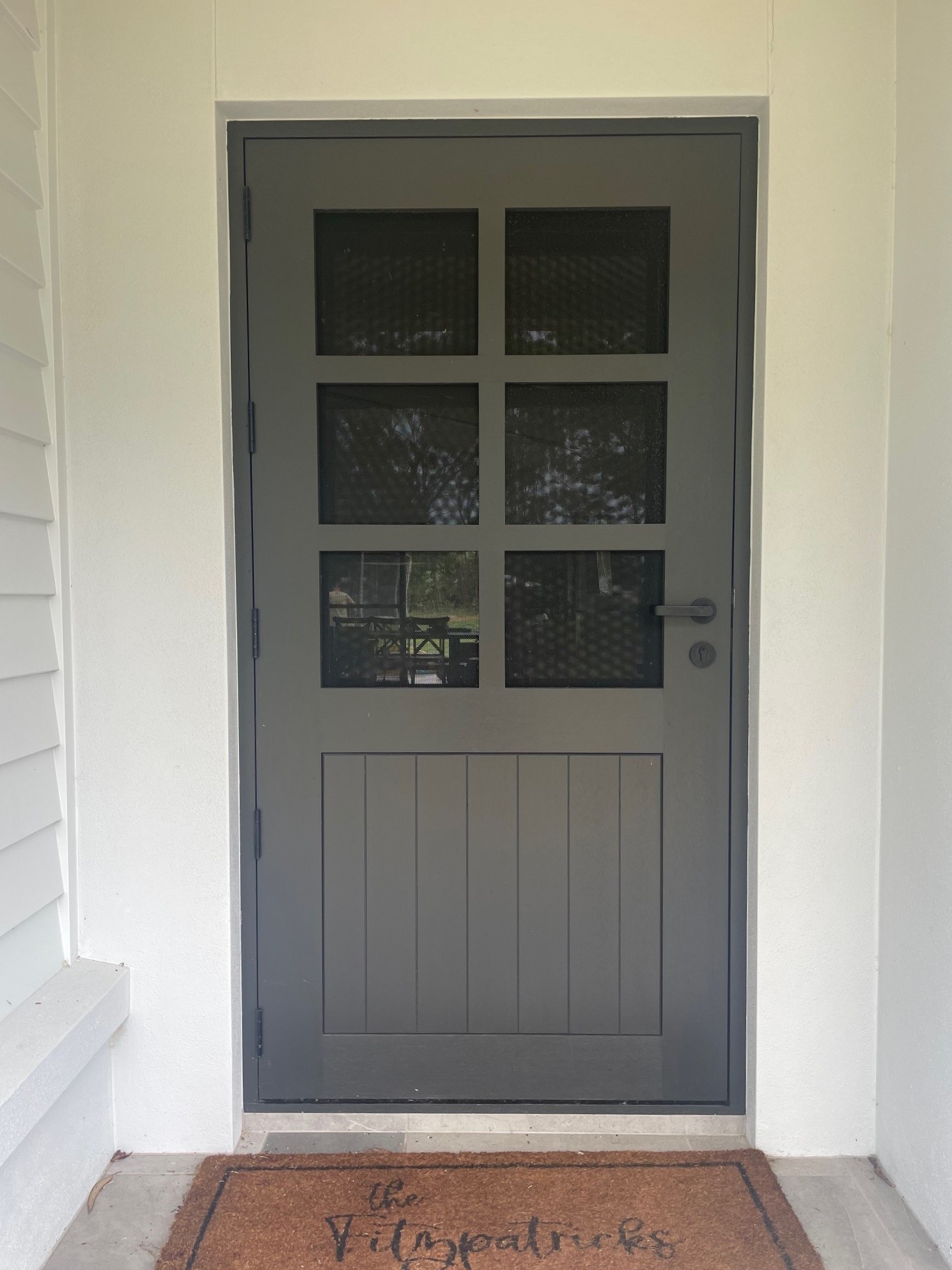 Delivering a light-filled entry with ample airflow the Mackenzie traditional feel via it’s top large barrier screen section and VJ solid timber bottom panel.