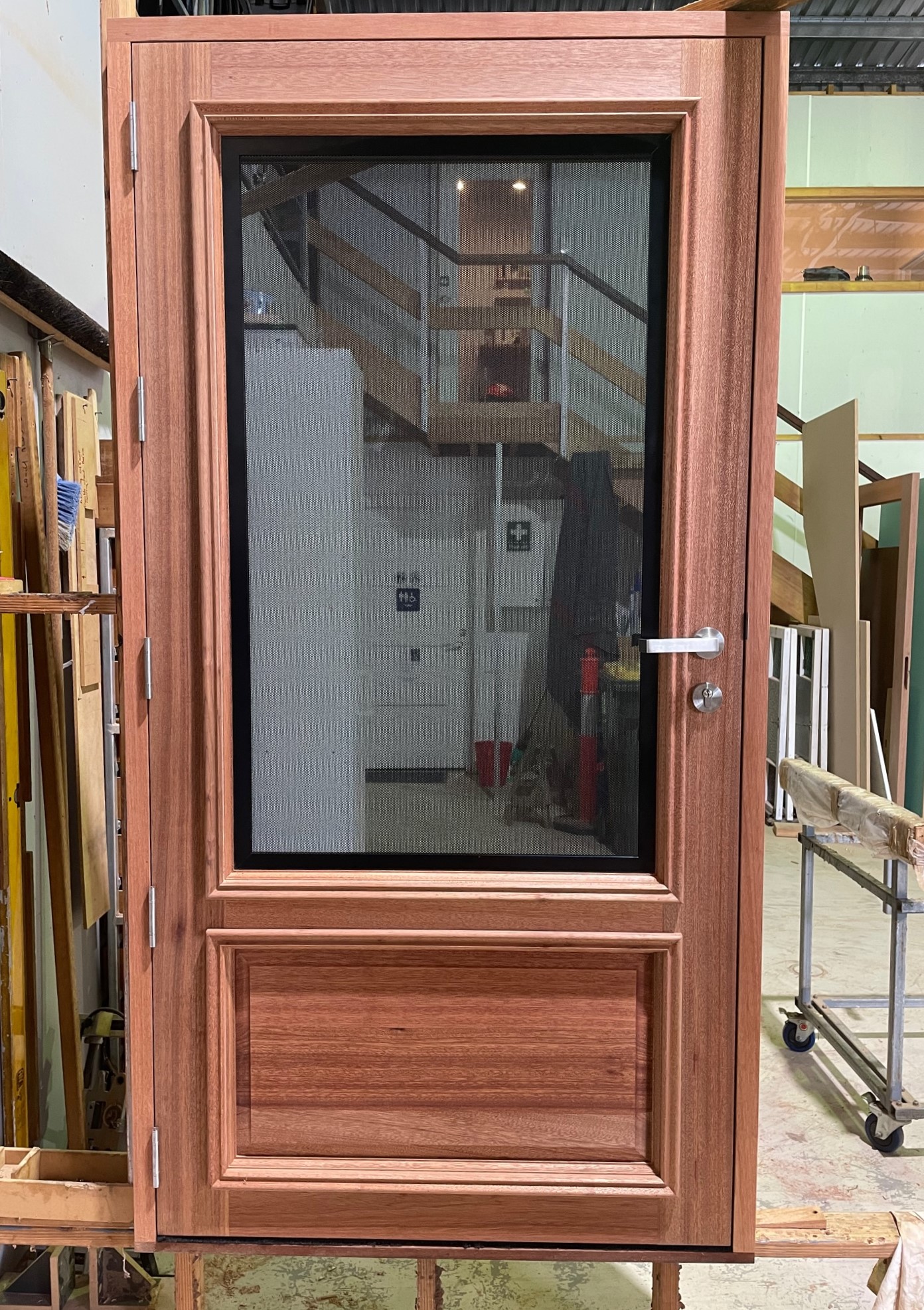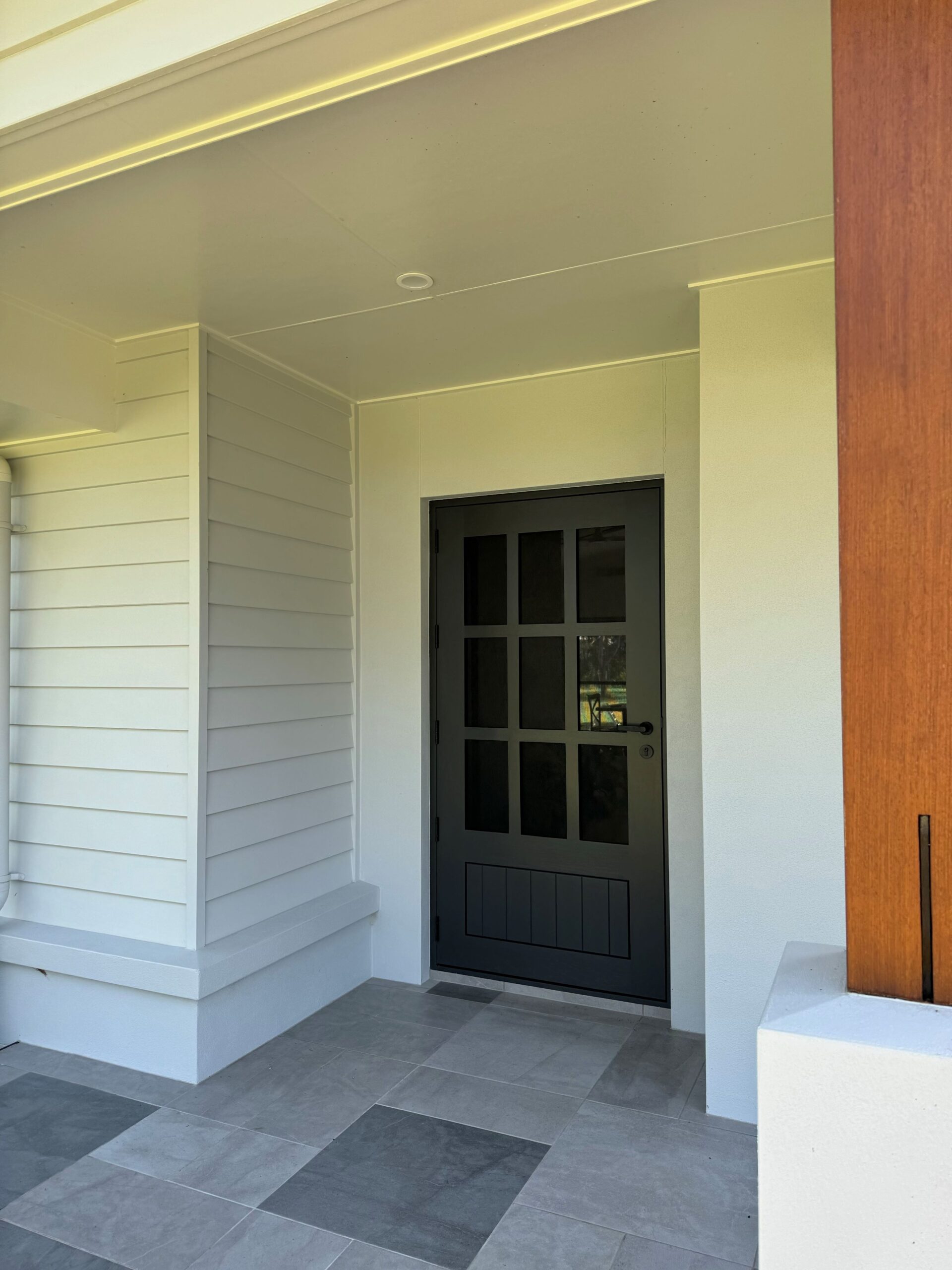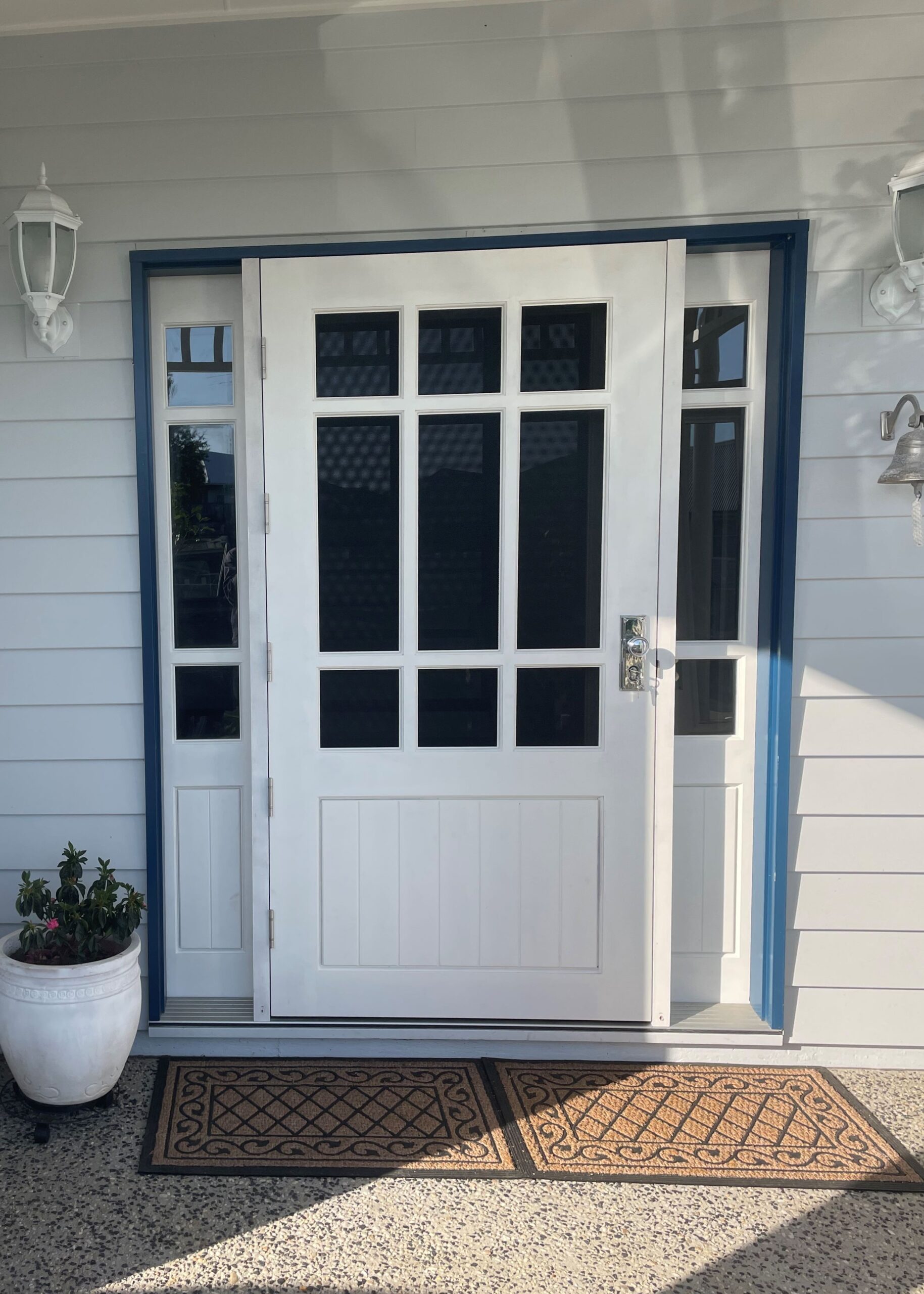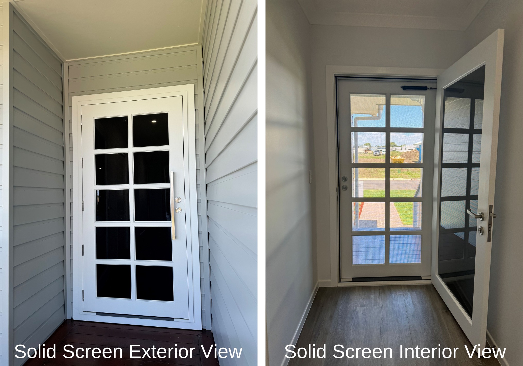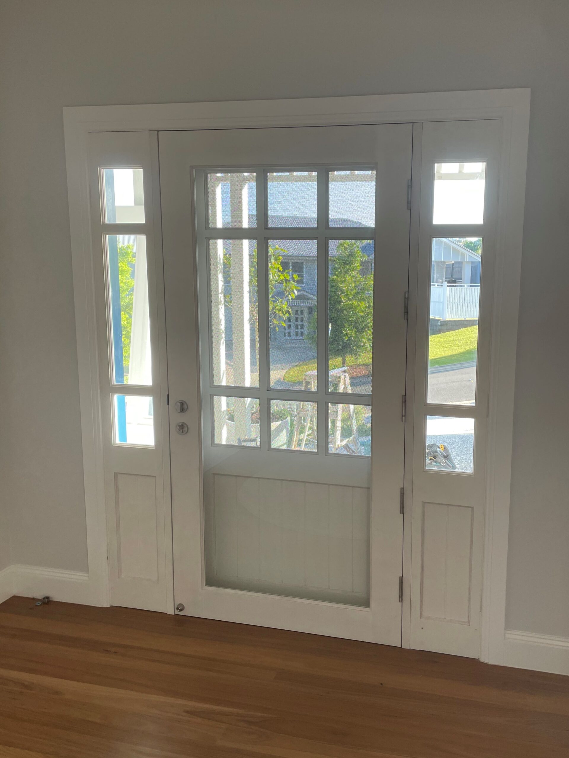 Delivering a light-filled entry with ample airflow the Mackenzie traditional feel via it’s top large barrier screen section and VJ solid timber bottom panel.