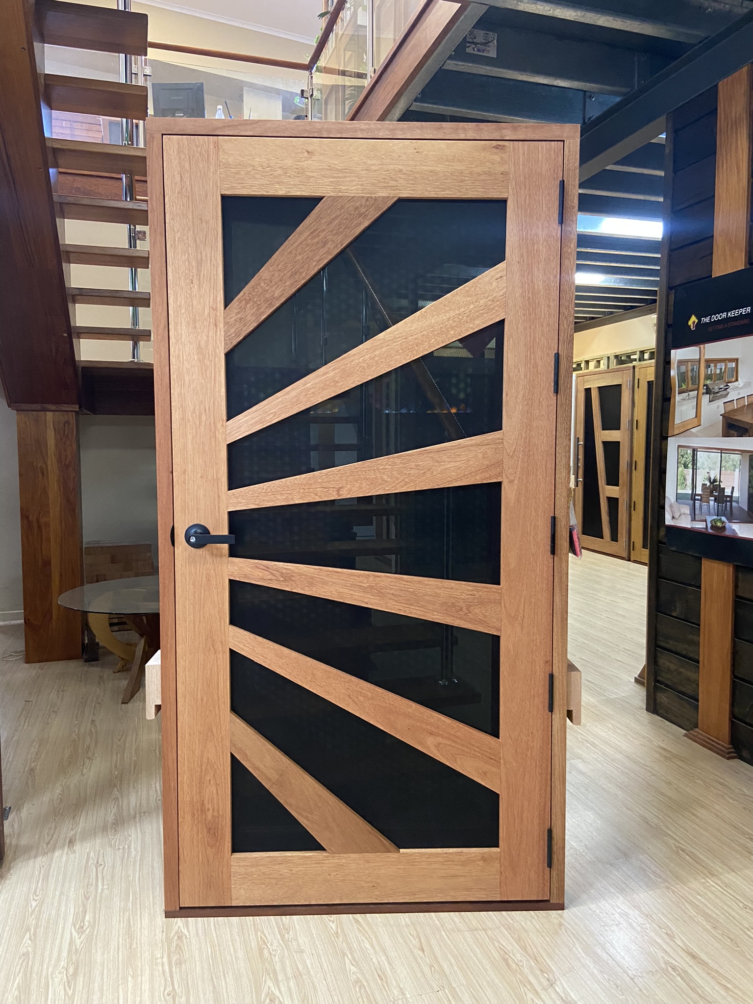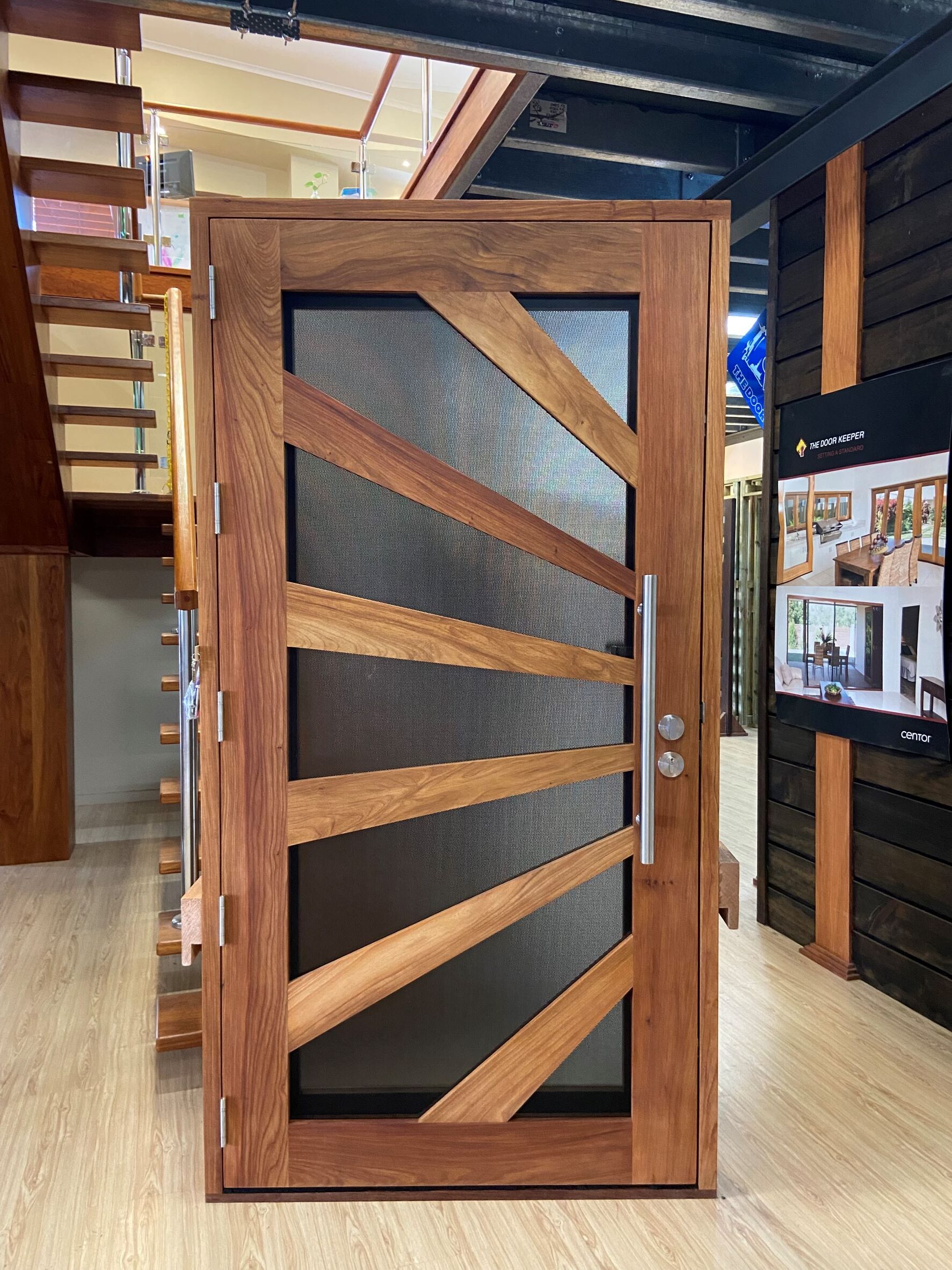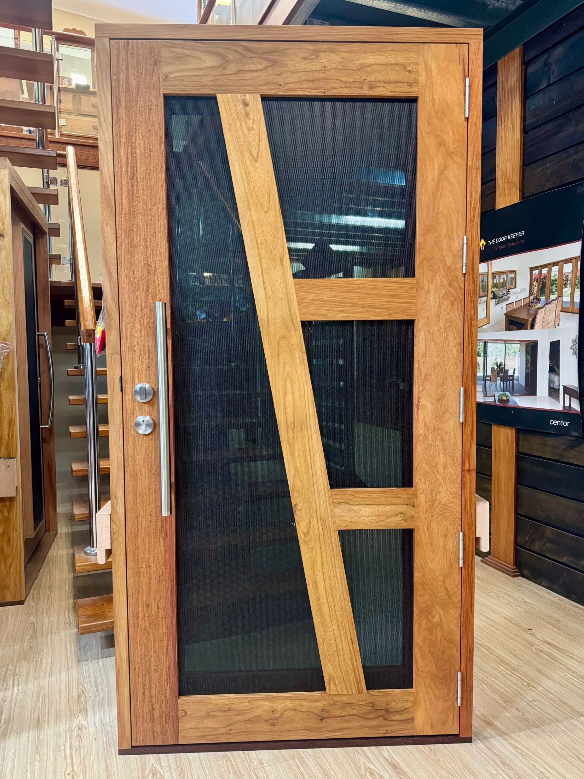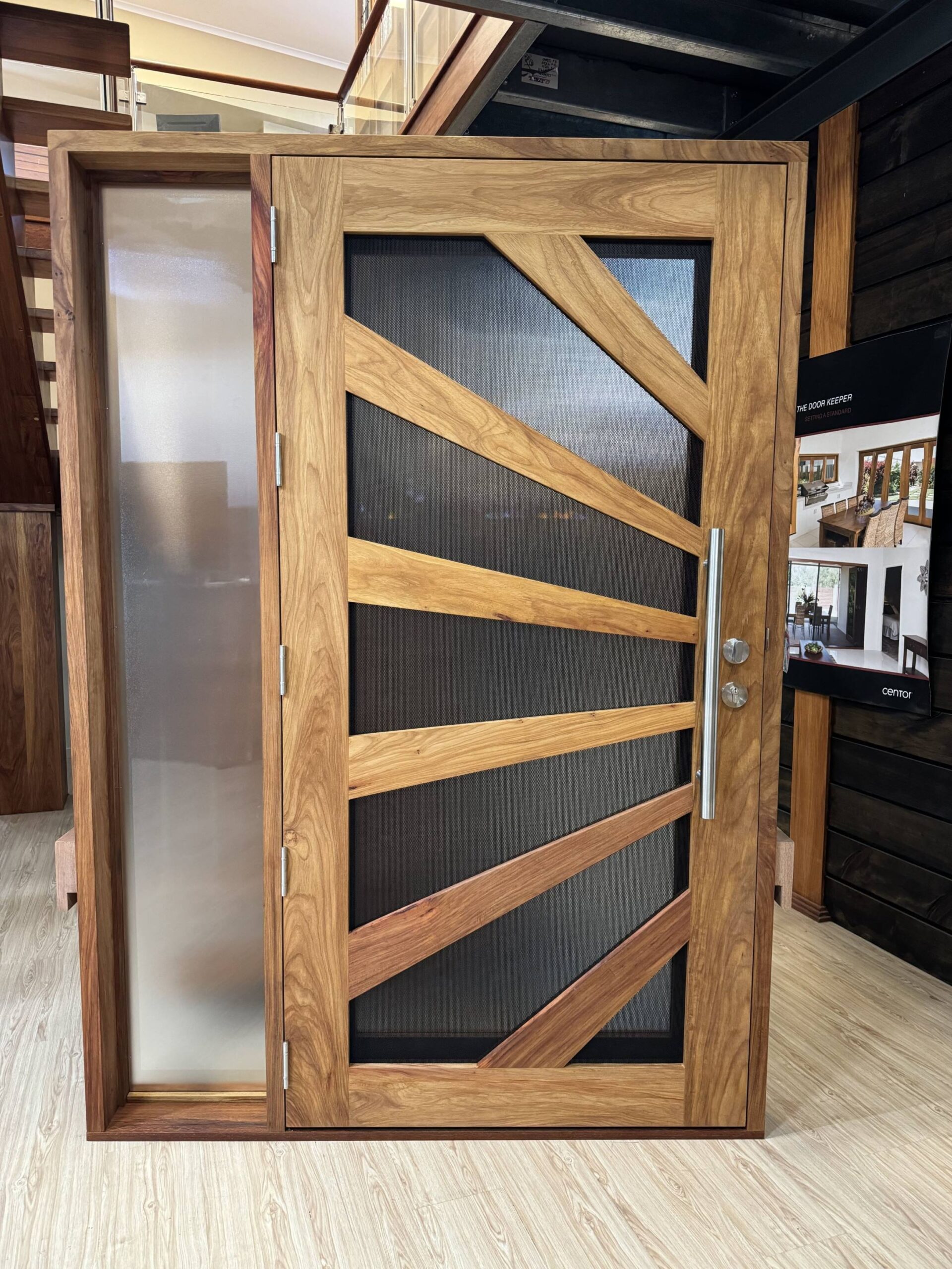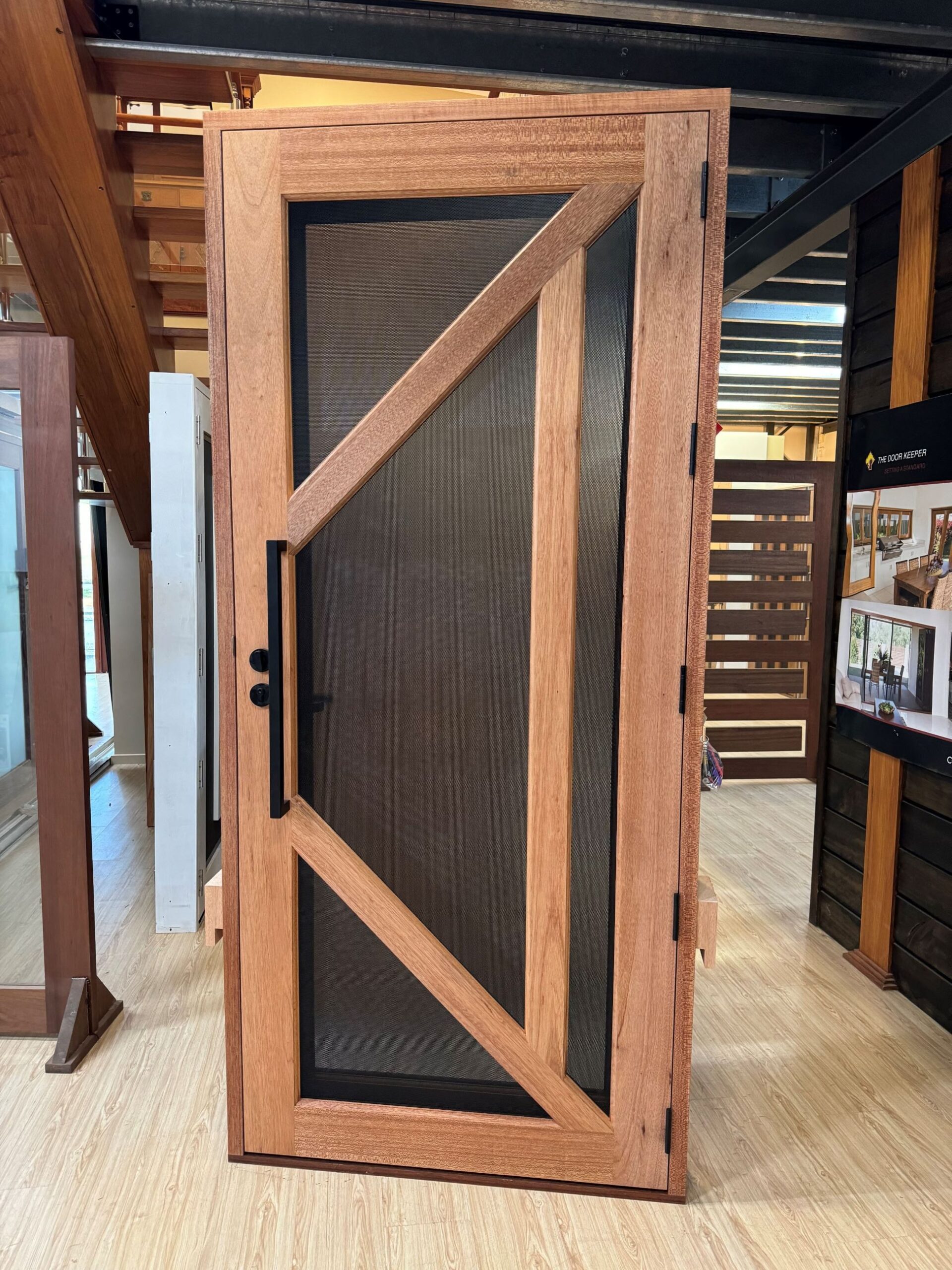 Another geometric configuration that combines strength and security. The design complements today’s contemporary homes and modern lifestyles, also available as a solid timber version in the Kalbarri.