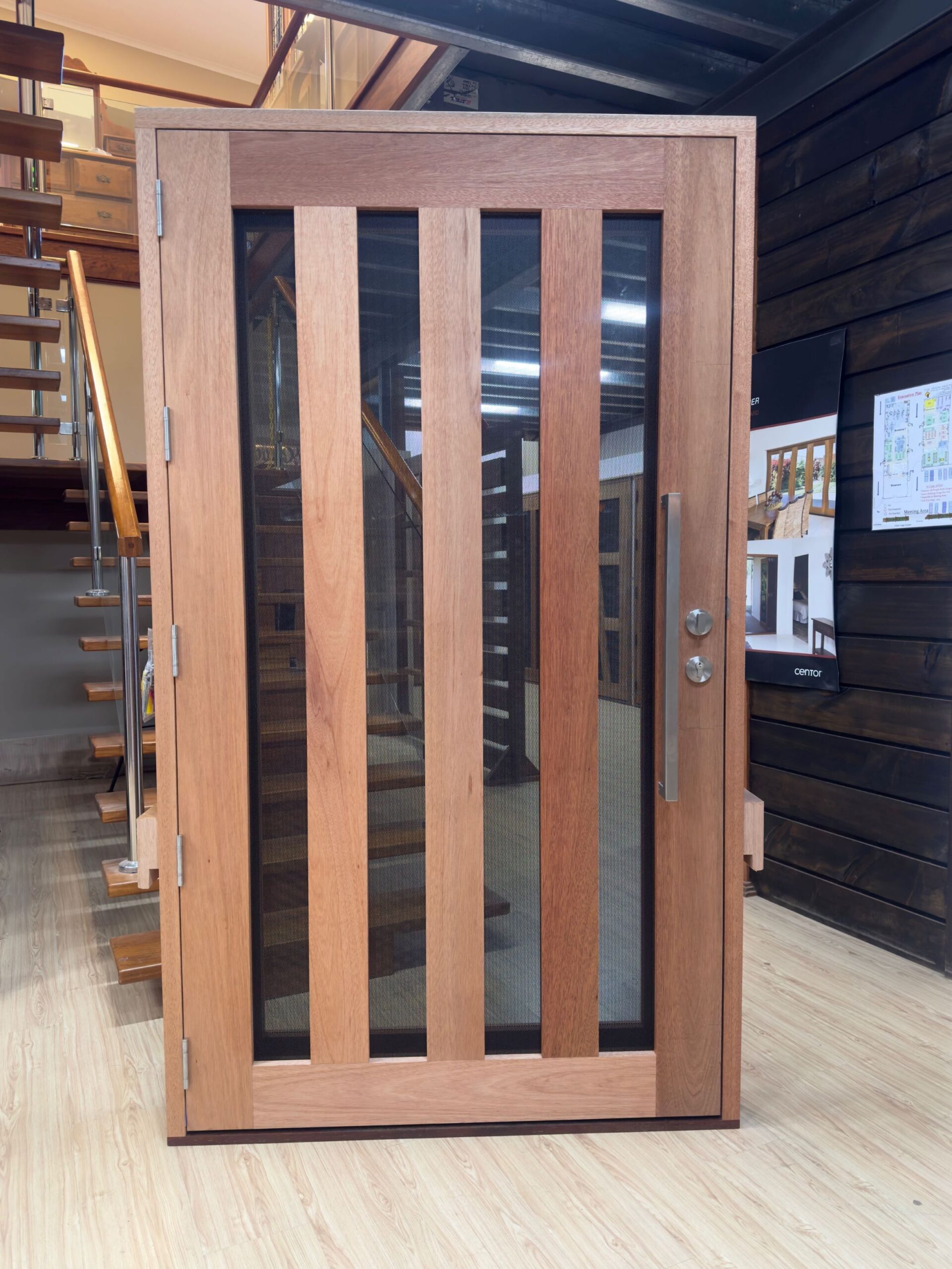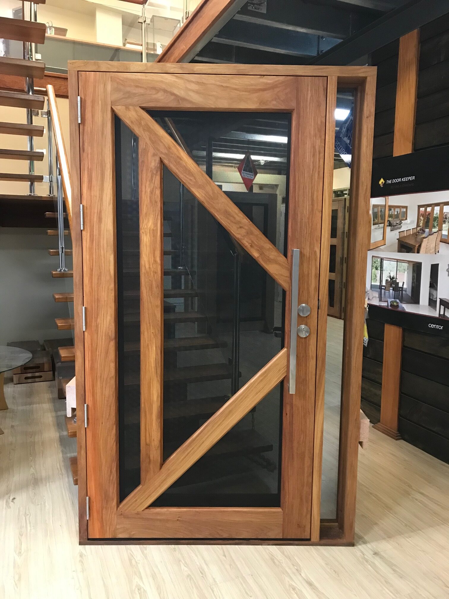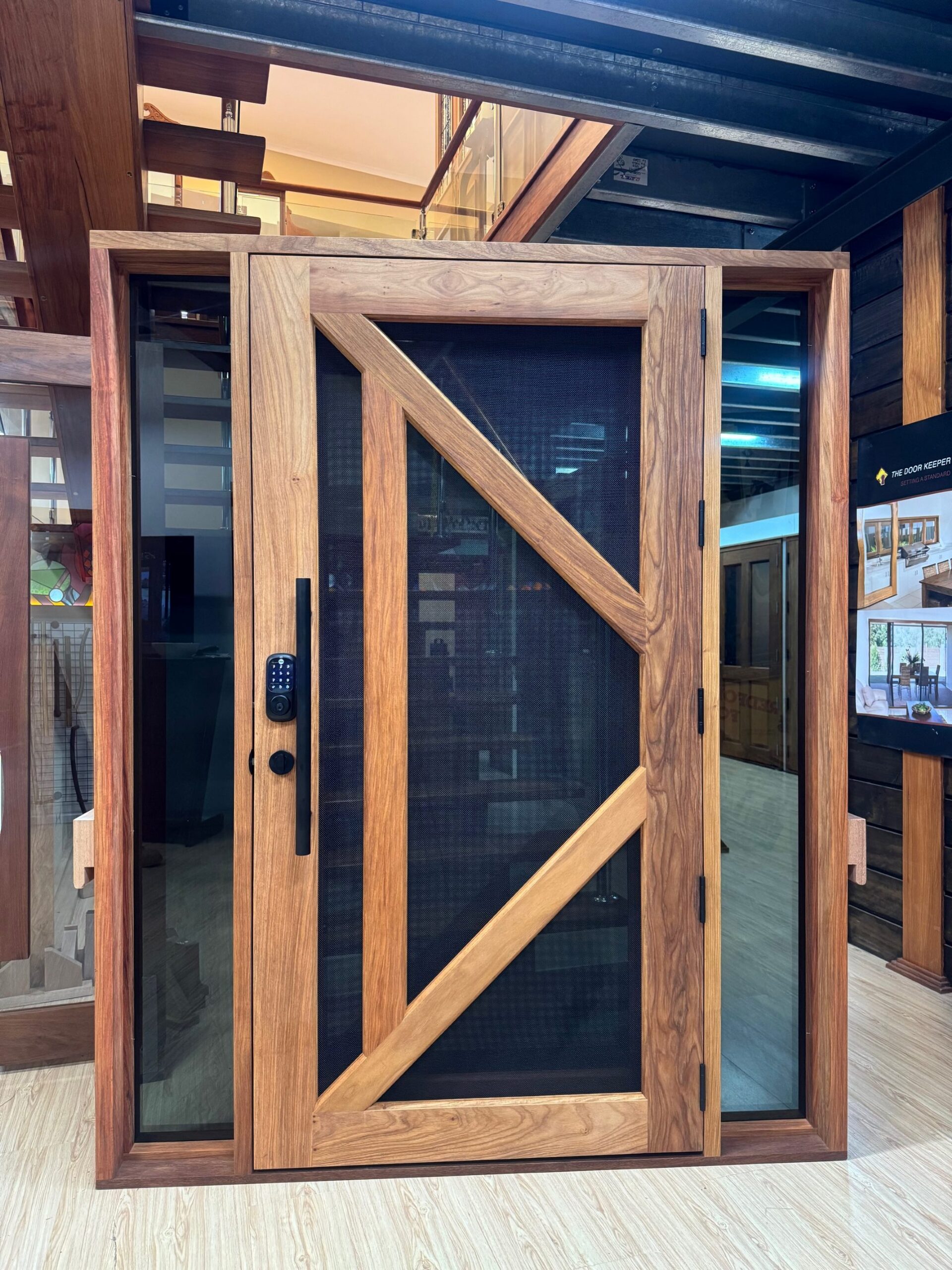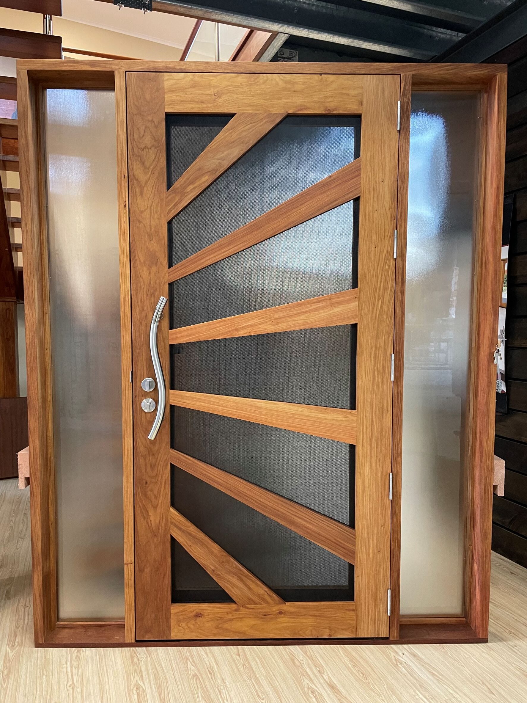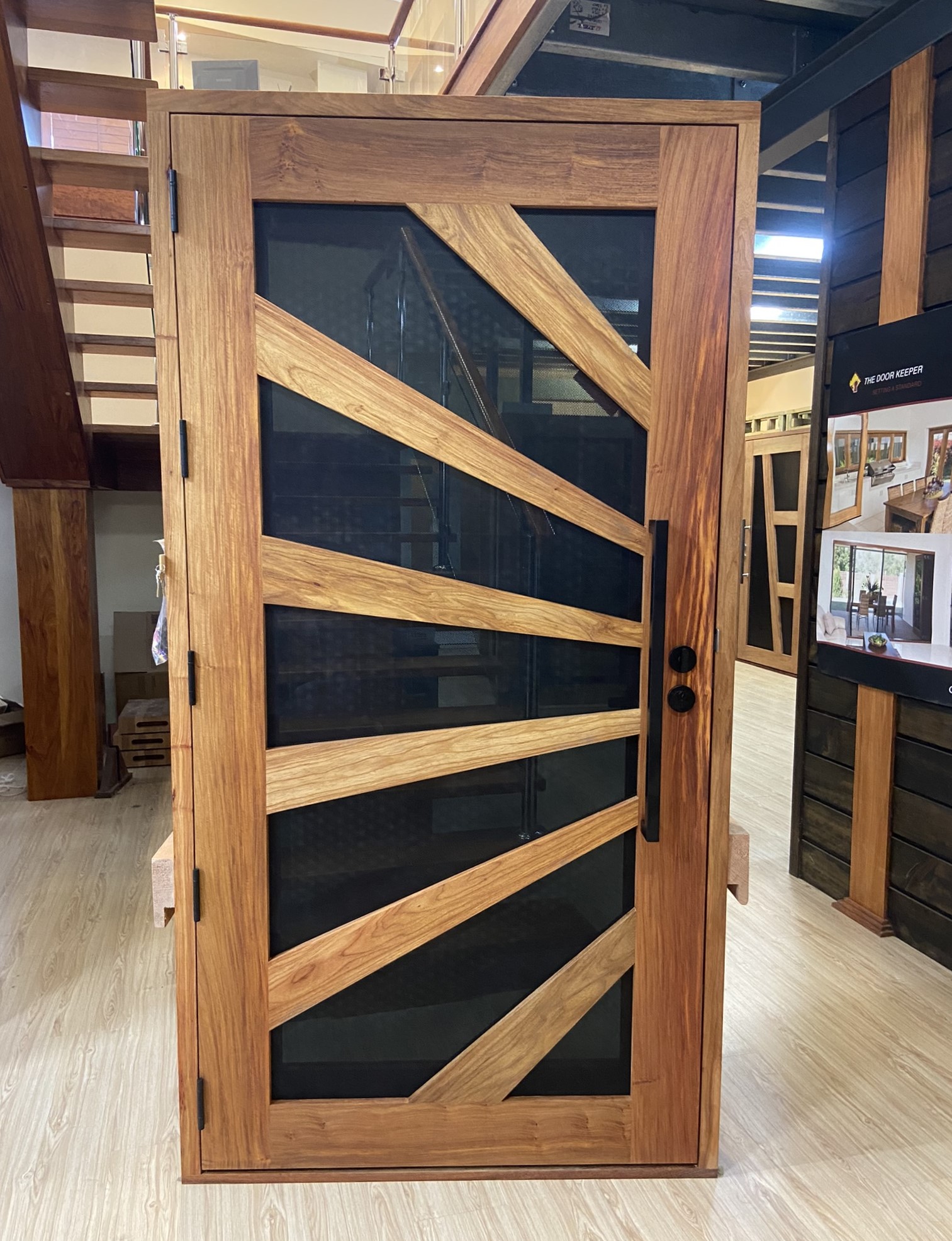 Another geometric configuration that combines strength and security. The design complements today’s contemporary homes and modern lifestyles, also available as a solid timber version in the Kalbarri.