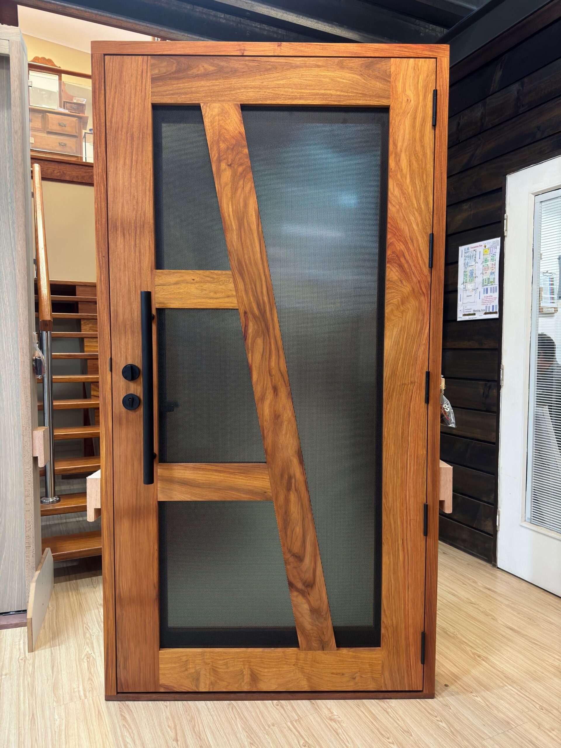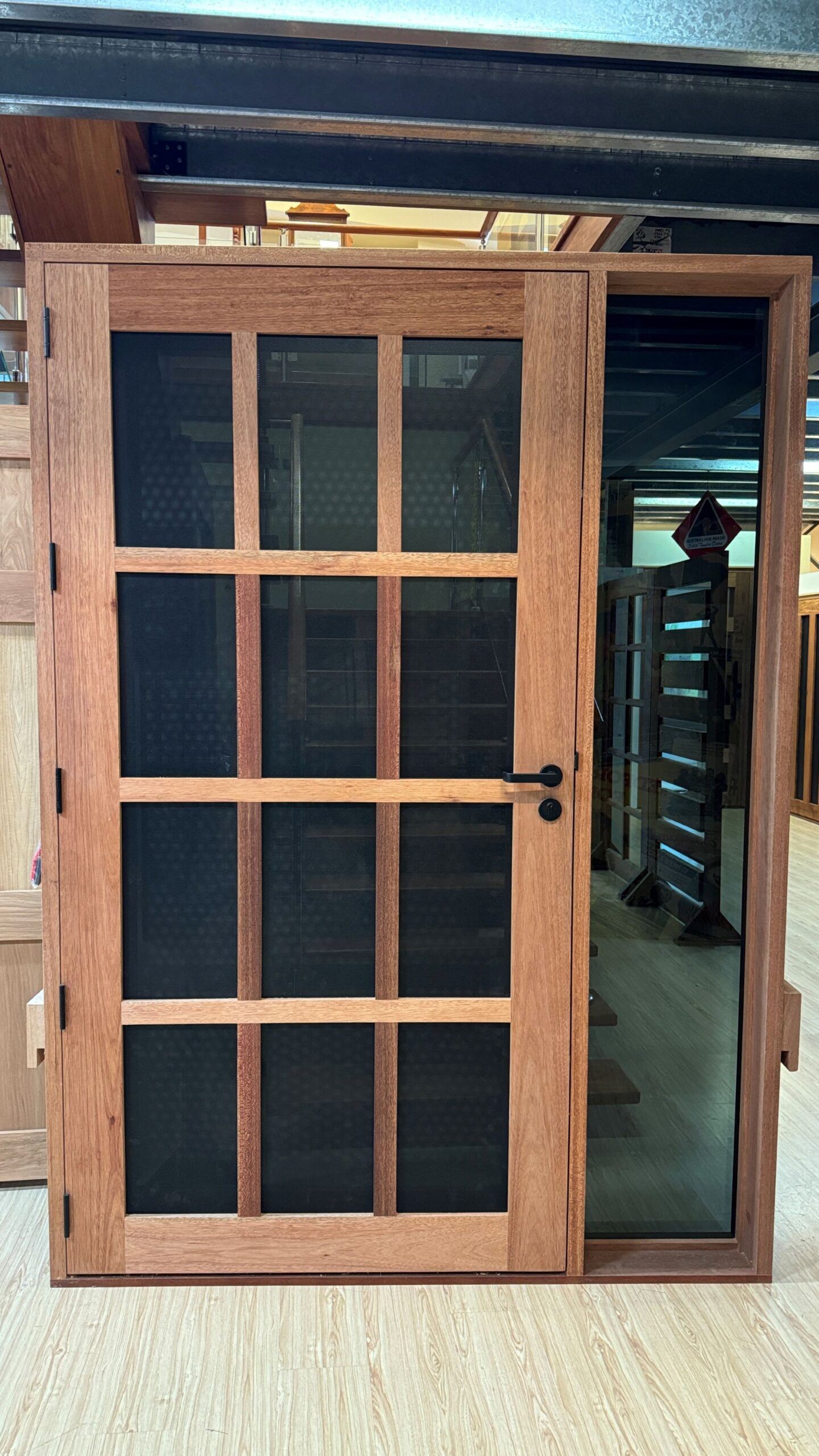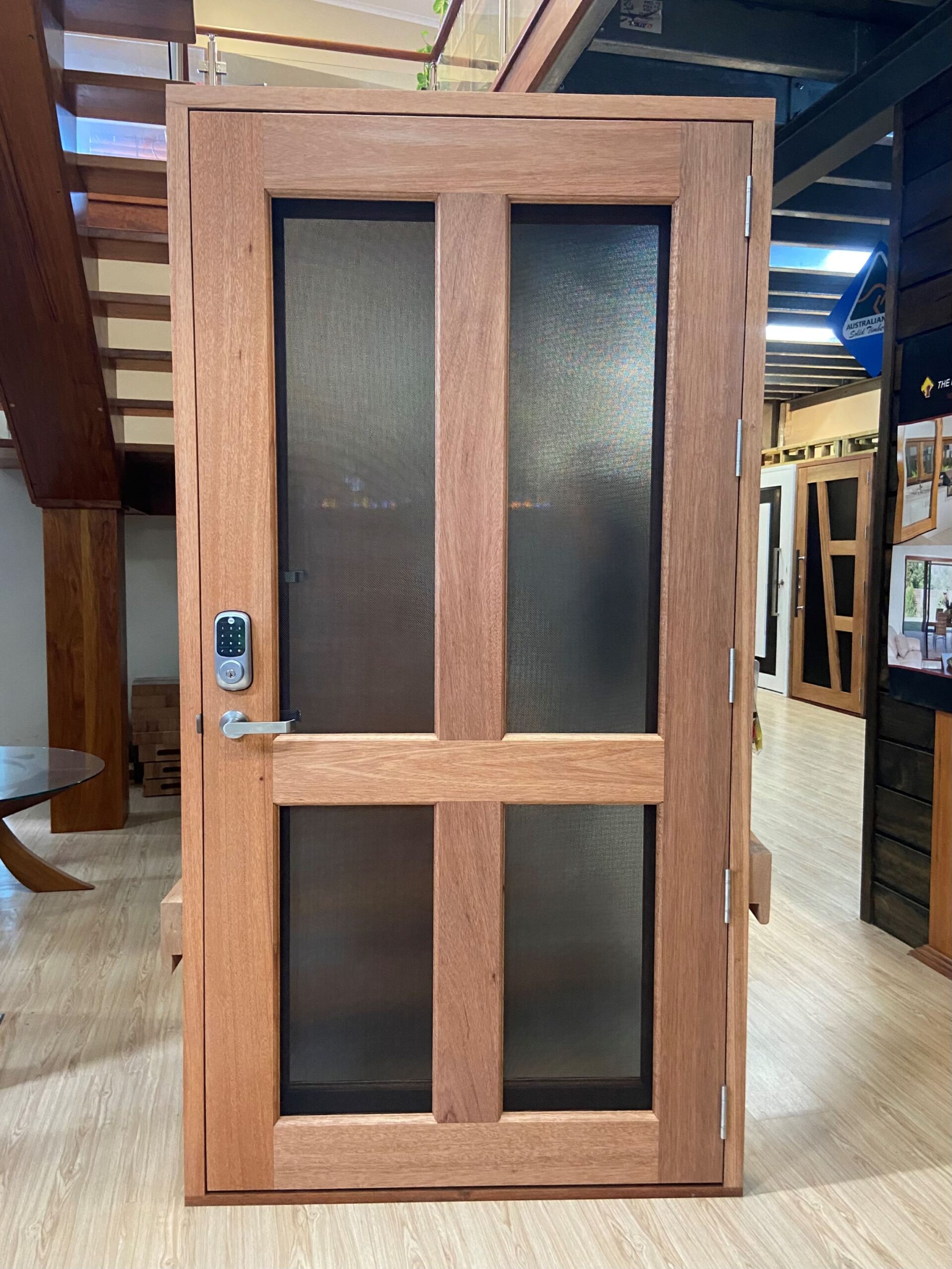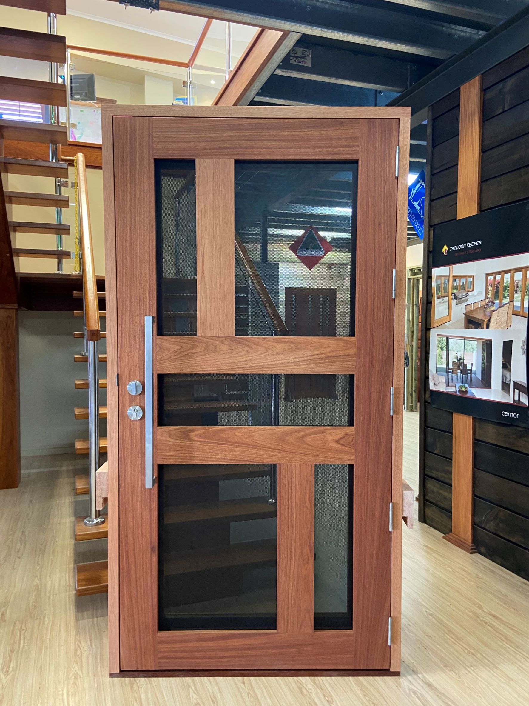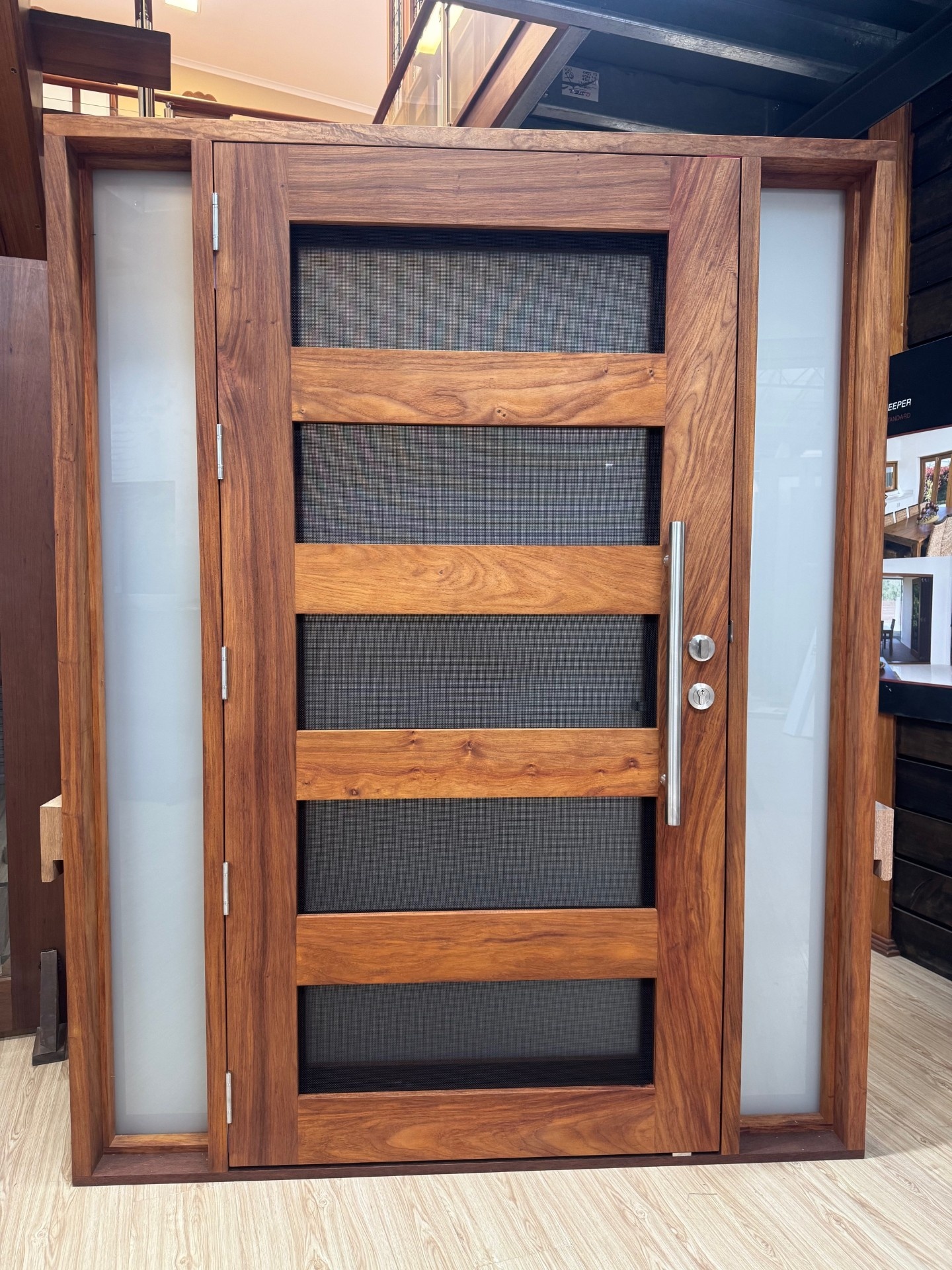 Another geometric configuration that combines strength and security. The design complements today’s contemporary homes and modern lifestyles, also available as a solid timber version in the Kalbarri.