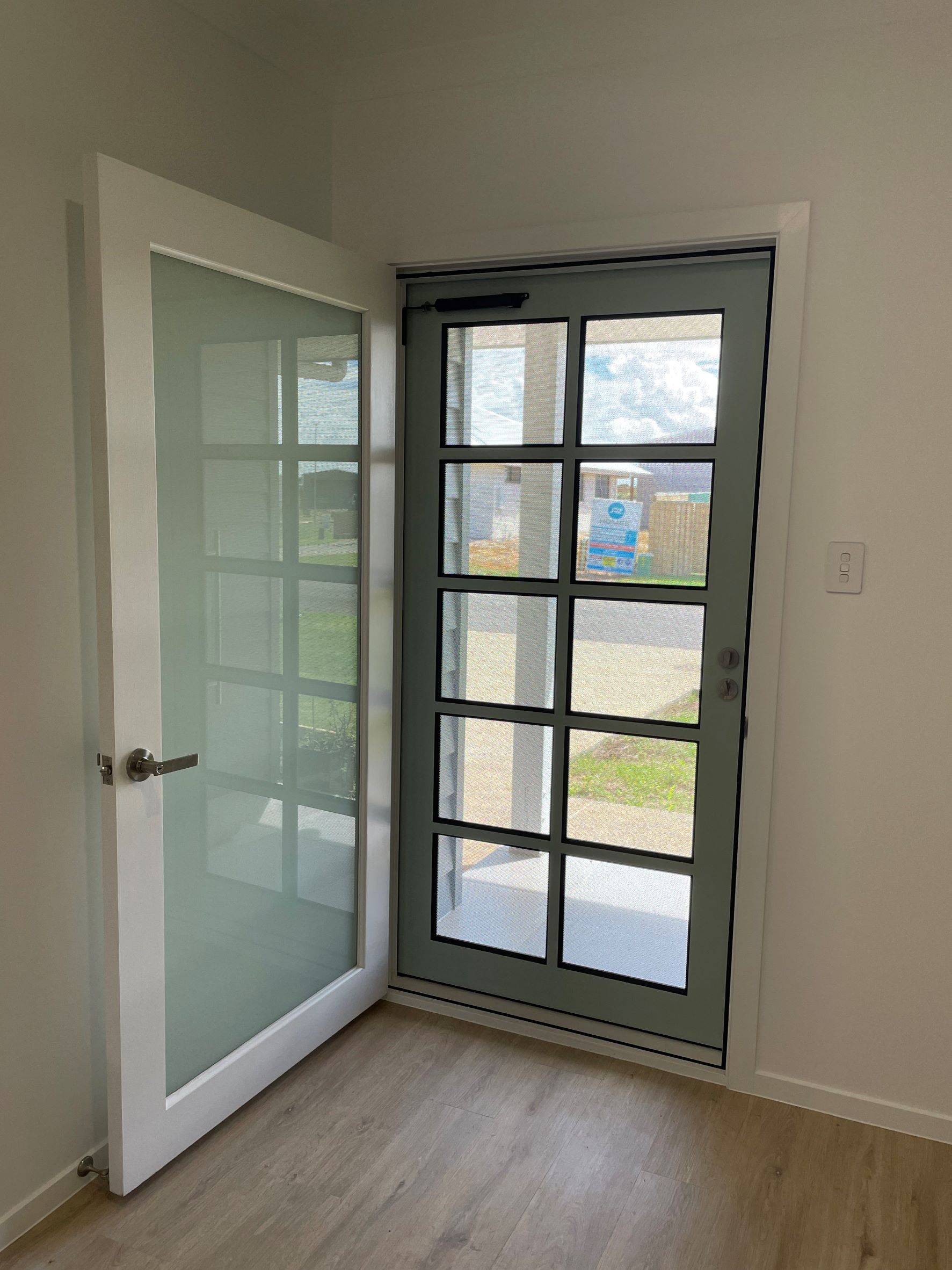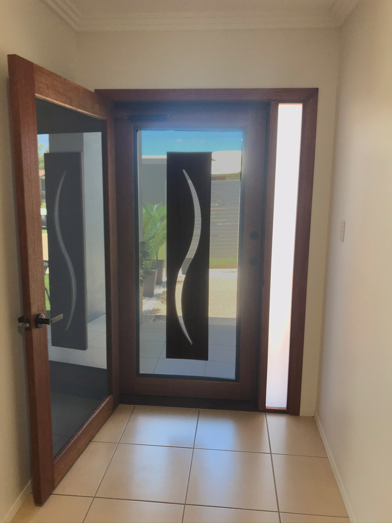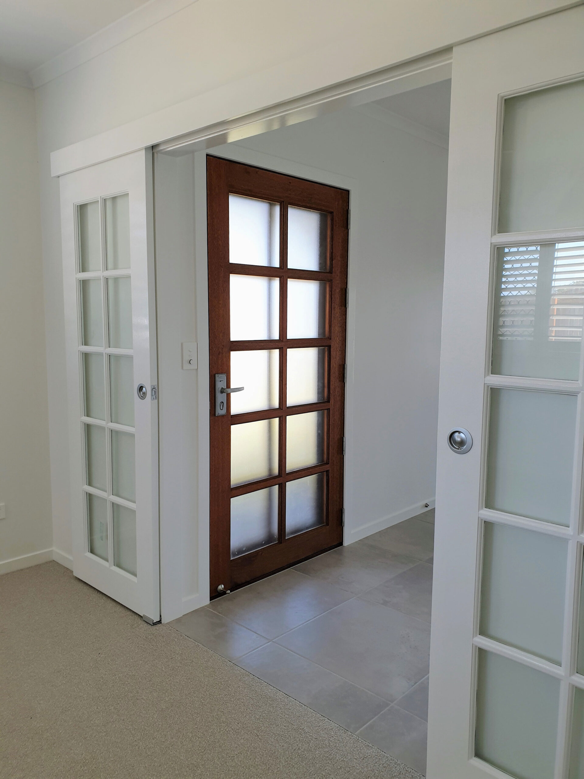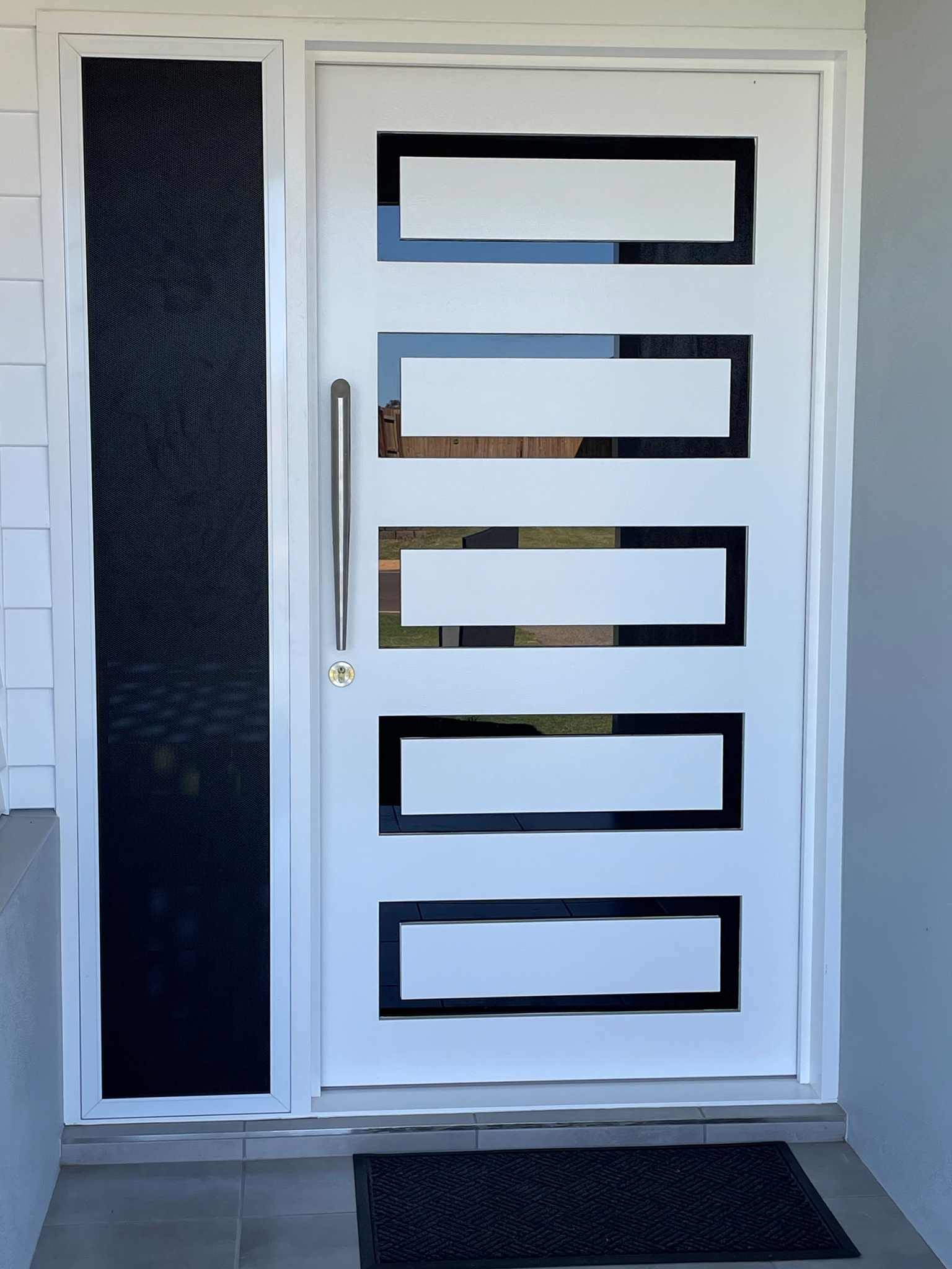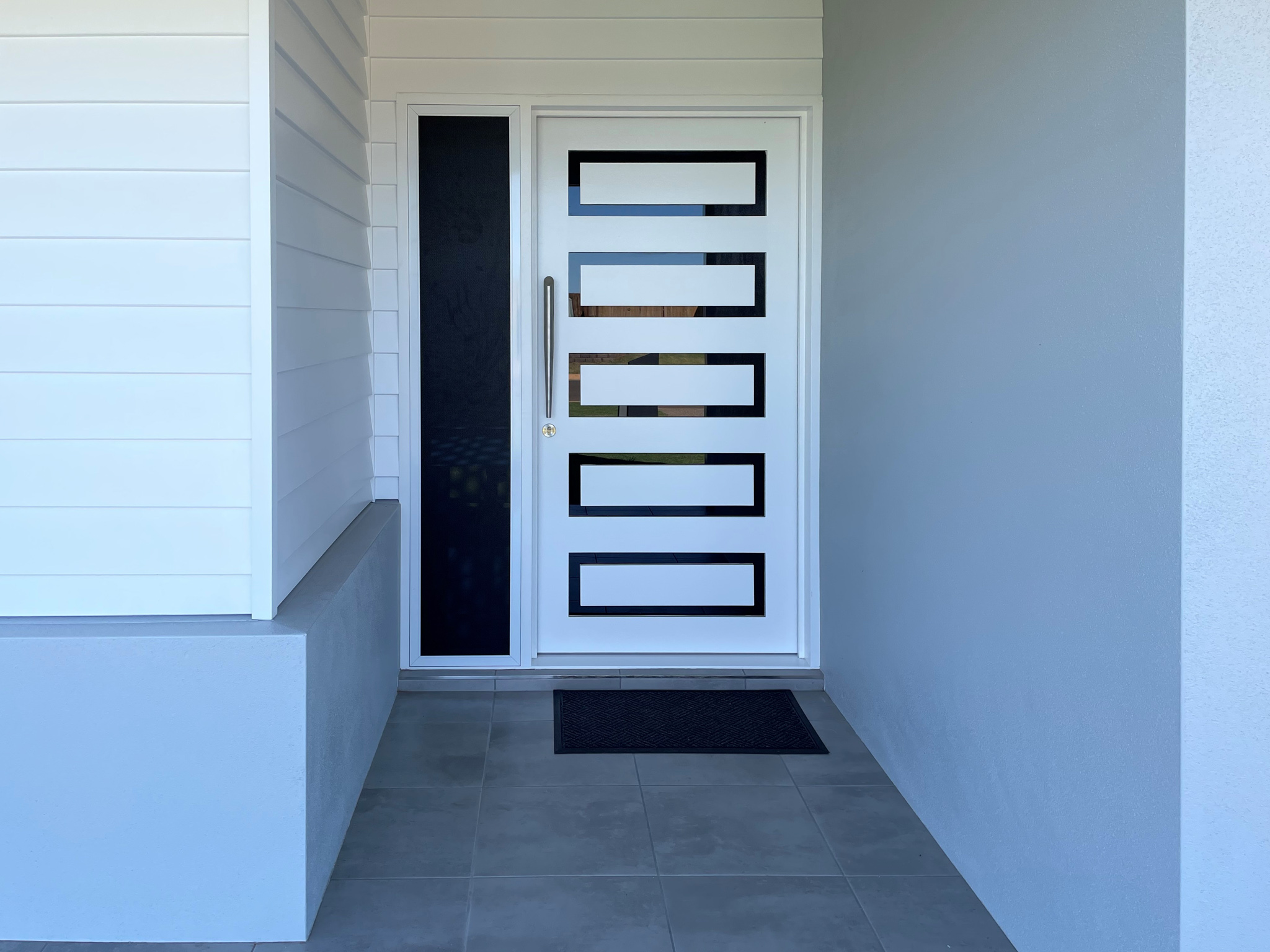 The Burdekin, one of our floating panel series, offers an elegant and practical entrance solution, with a balance between privacy and outward vision.