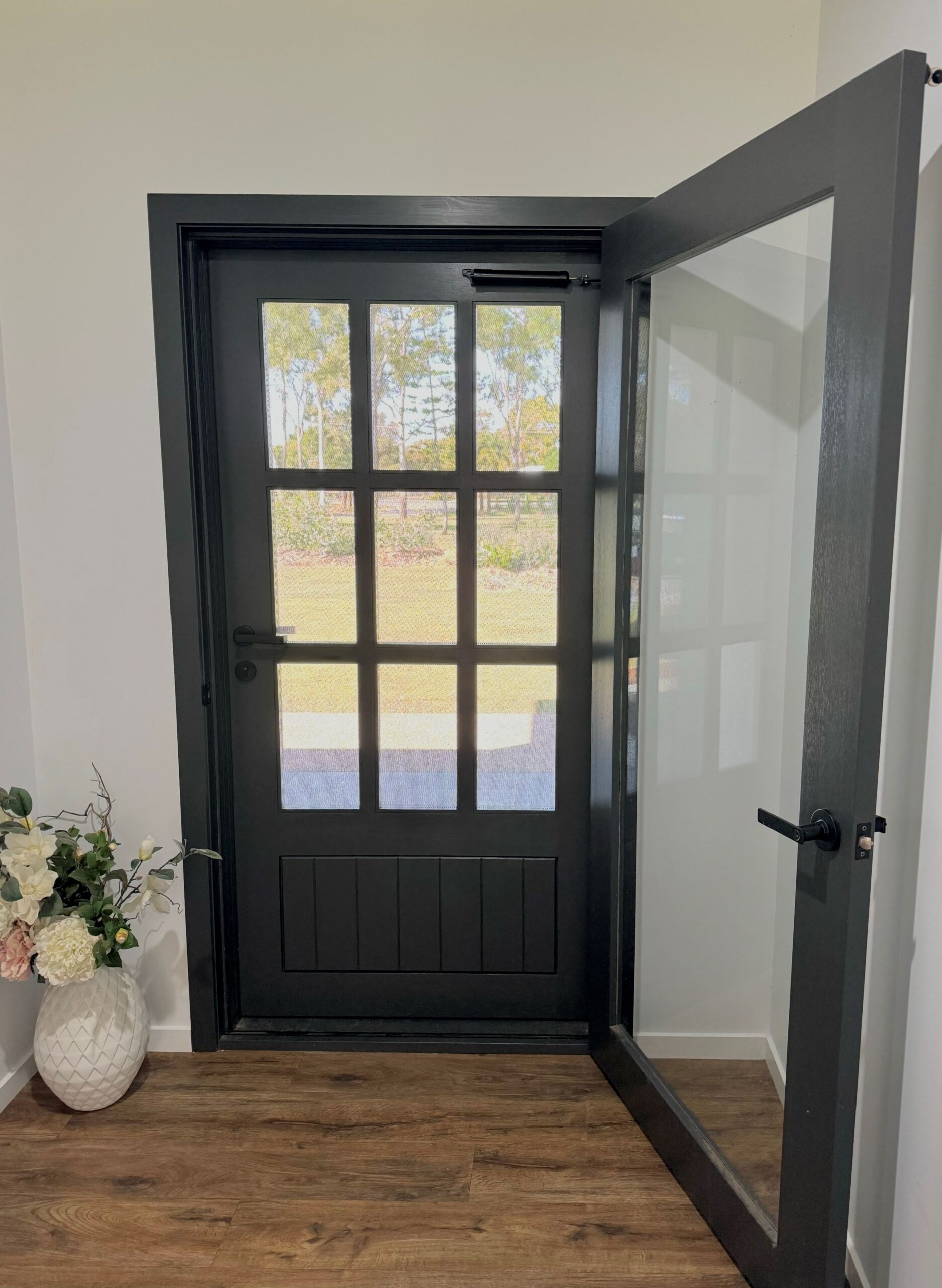 Mornington’s twin barrier screen sections deliver abundant airflow. Whilst, their alignment with the beautifully paneled timber bottom, creating the dream entrance door for those who appreciate time-honoured style.