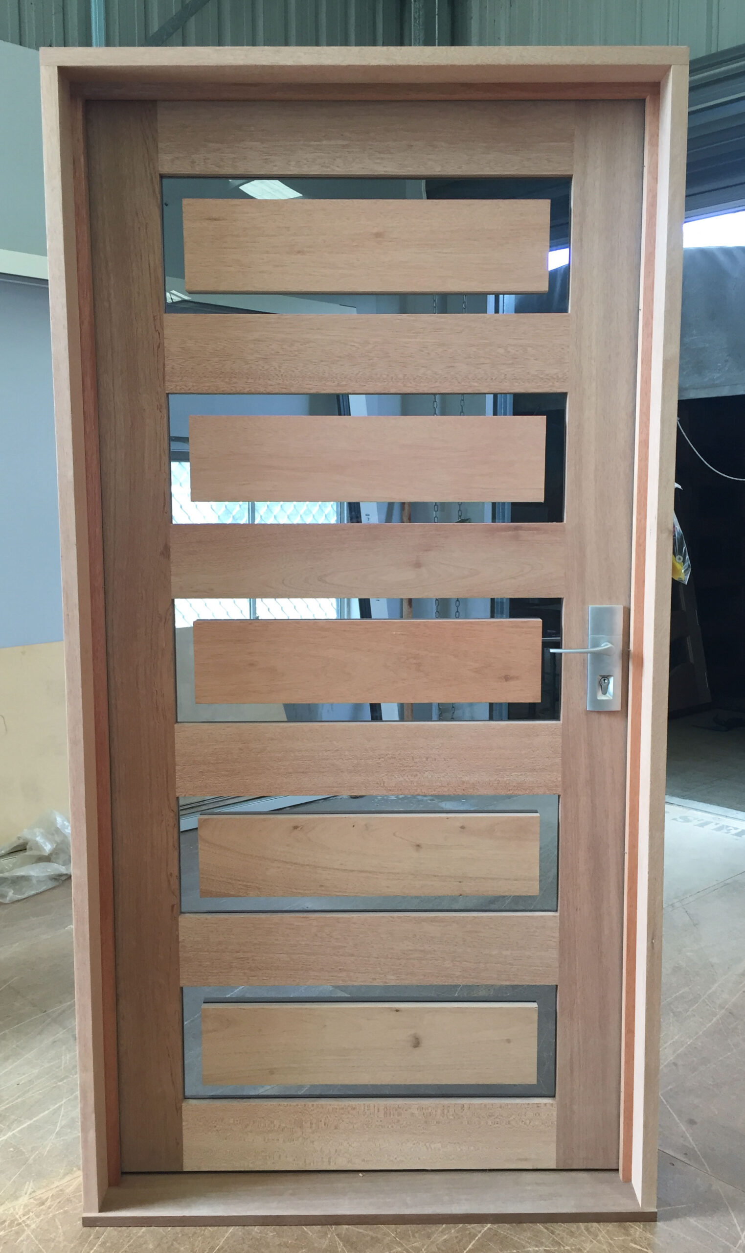 Combining both privacy and light with narrow glazed panels separating horizontal timber bars, Undara presents a simple, modern look in a stylish door.